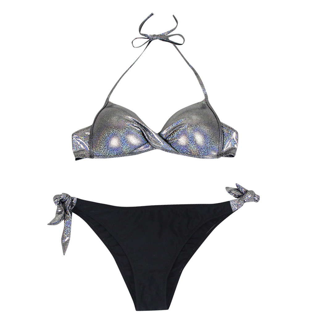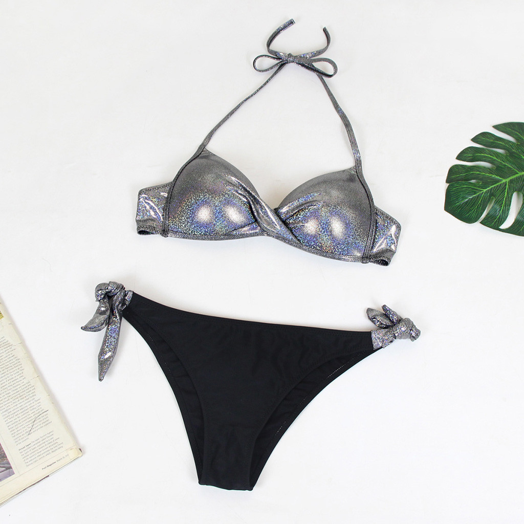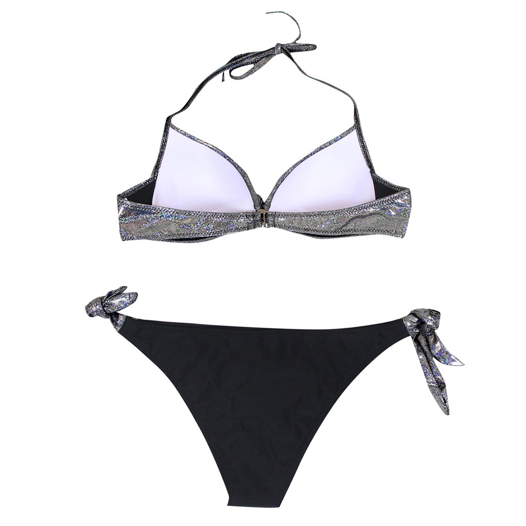 Женский расшитый блестками лоскутный купальник, пляжный комплект бикини с пуш-ап, бразильский купальник
