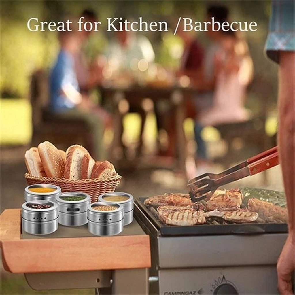 【 2 разрядных порта и крышка дизайн-этот магнитный Набор для специй имеет 2 типа разрядных портов, которые вращаются и дают вам полный контроль объема посыпания. Прозрачная крышка очень удобна для быстрого поиска нужных специй.