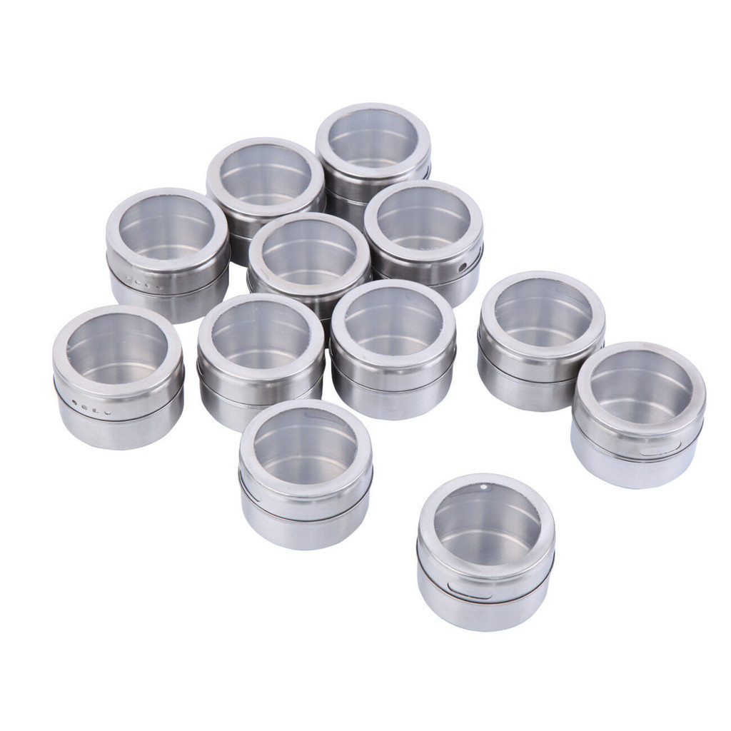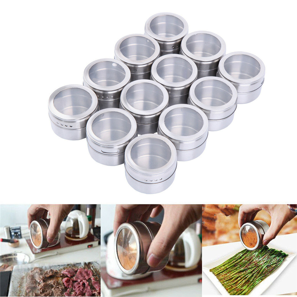 12 шт. Магнитные Банки для специй из нержавеющей стали контейнеры банки для хранения Прозрачная крышка