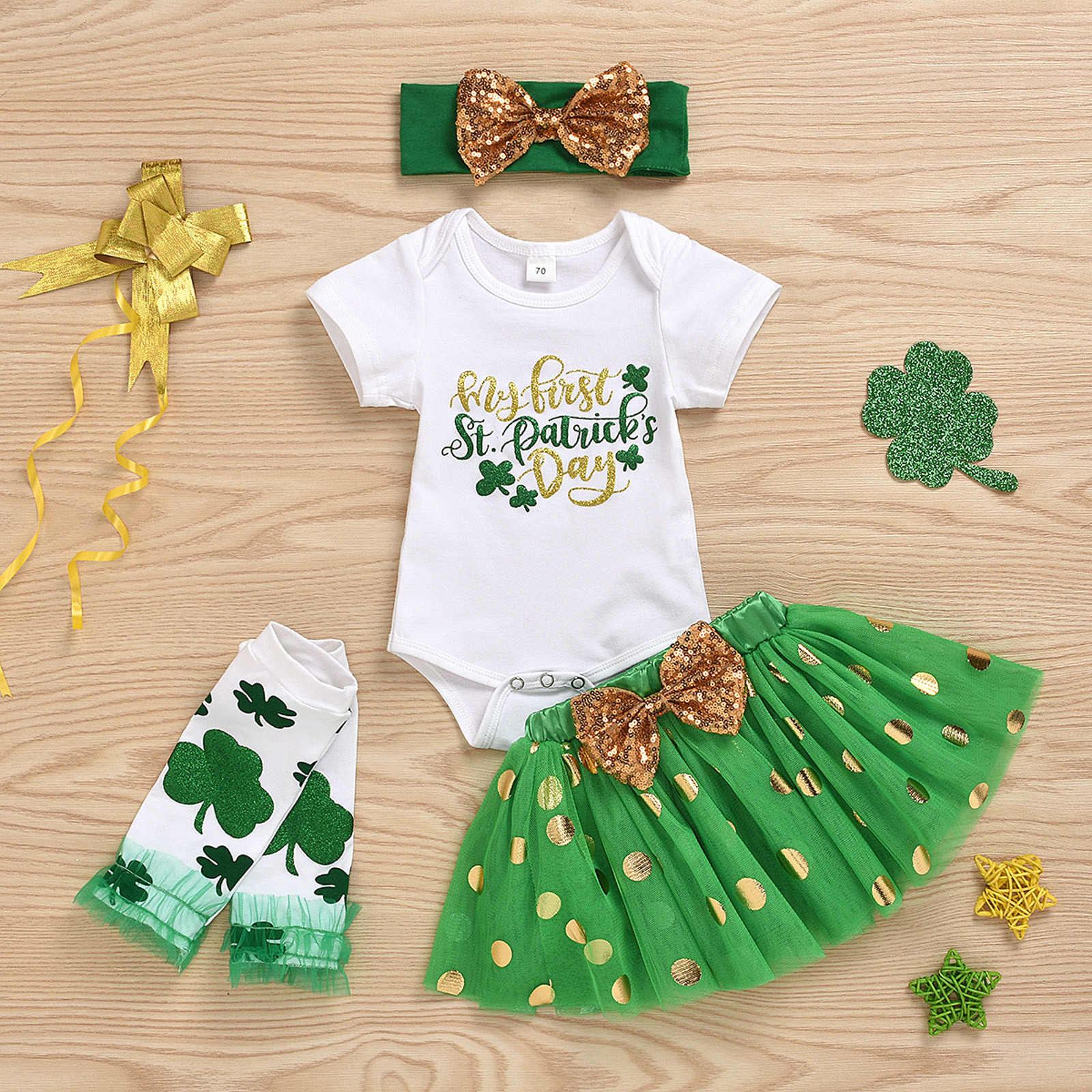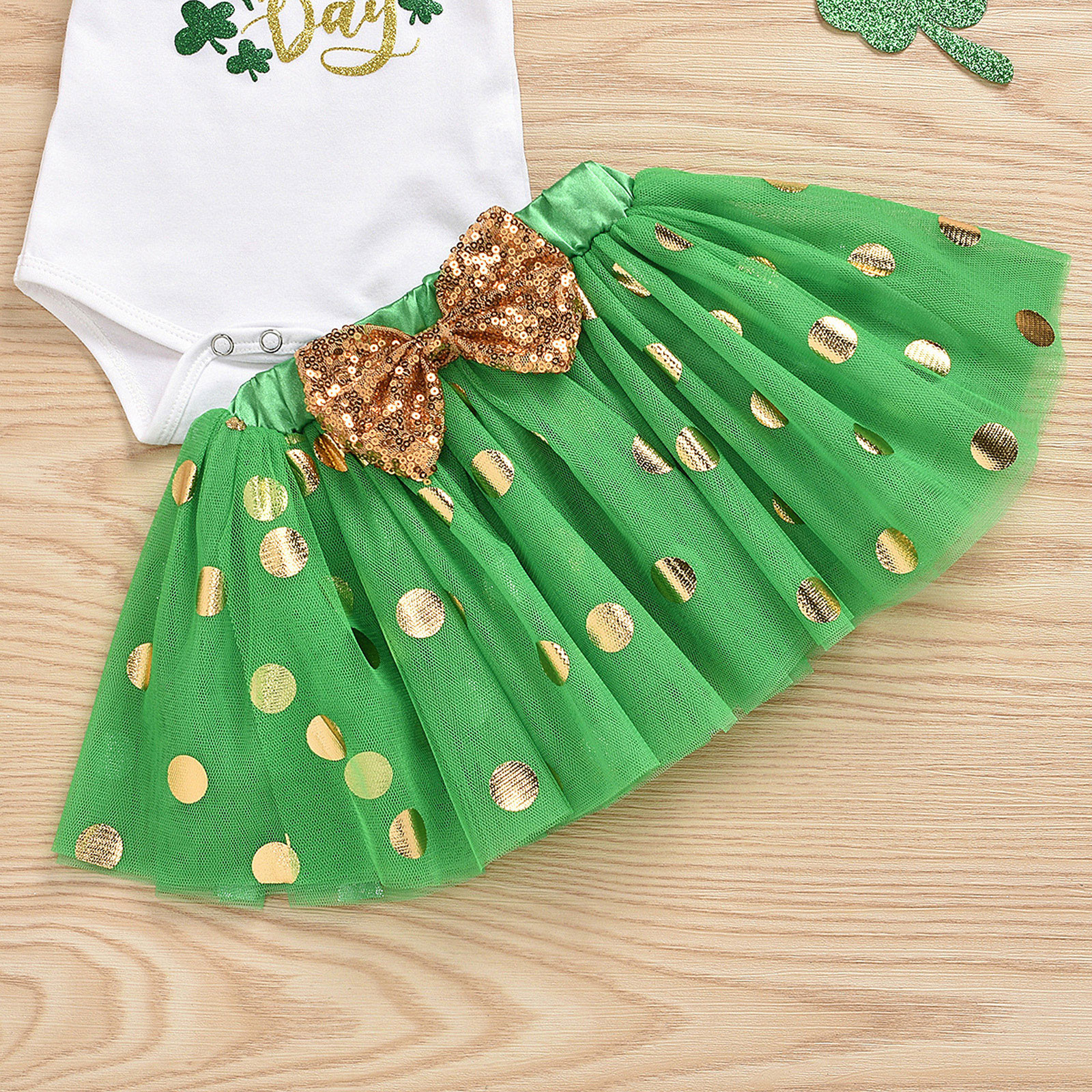 Детский комбинезон с надписью «День Святого Патрика» для маленьких девочек; Юбка-пачка; Комплект с гетрами