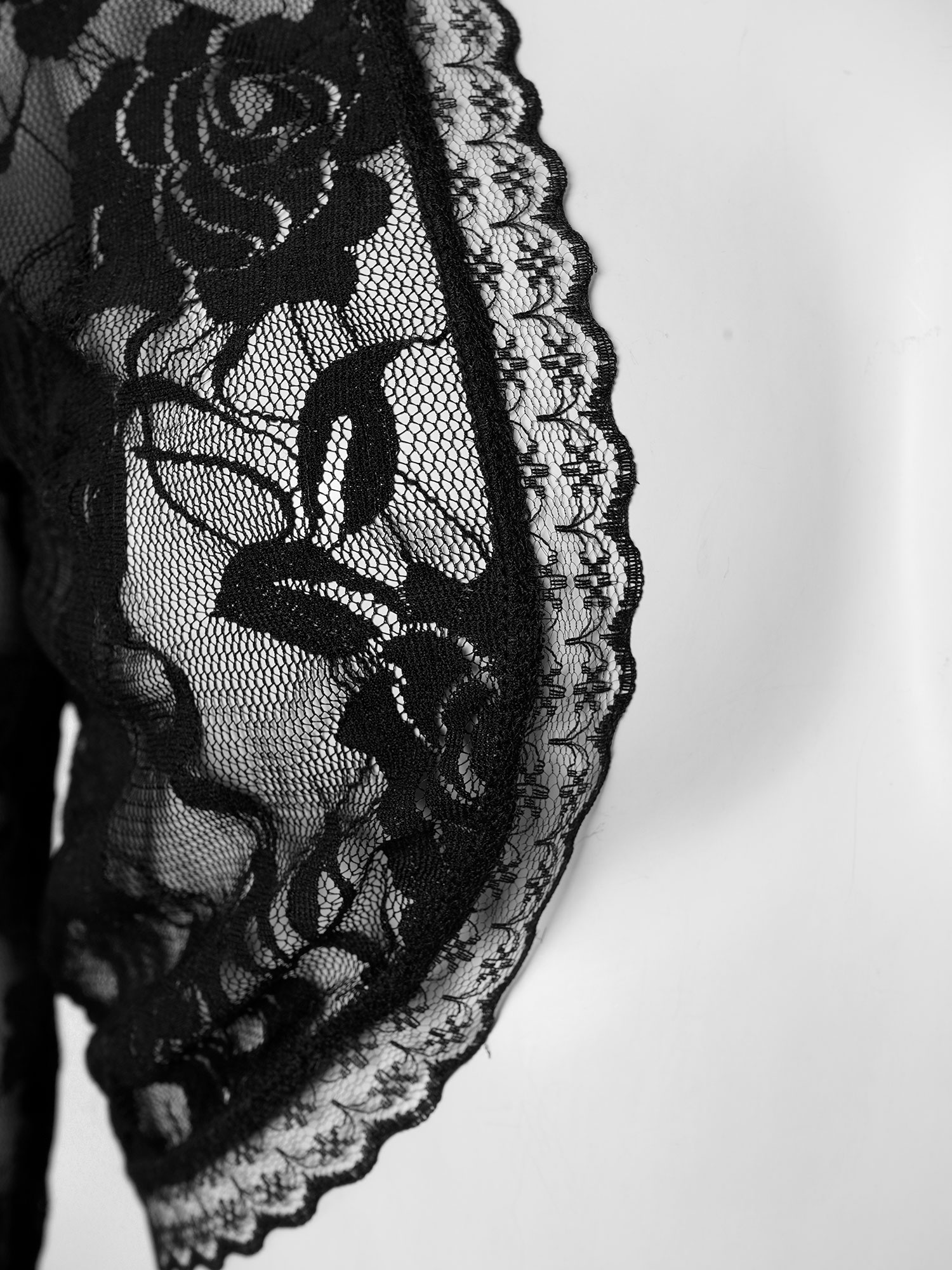 Изготовлен из легкой кружевной ткани, мягкий на ощупь и имеет небольшую эластичность, дарит вам комфортные ощущения.