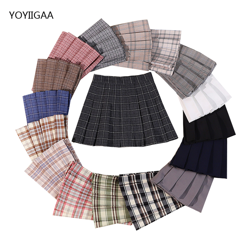 Летние женские юбки с высокой талией, Женская клетчатая мини-юбка в консервативном стиле, повседневные женские плиссированные юбки, милые танцевальные юбки для девочек