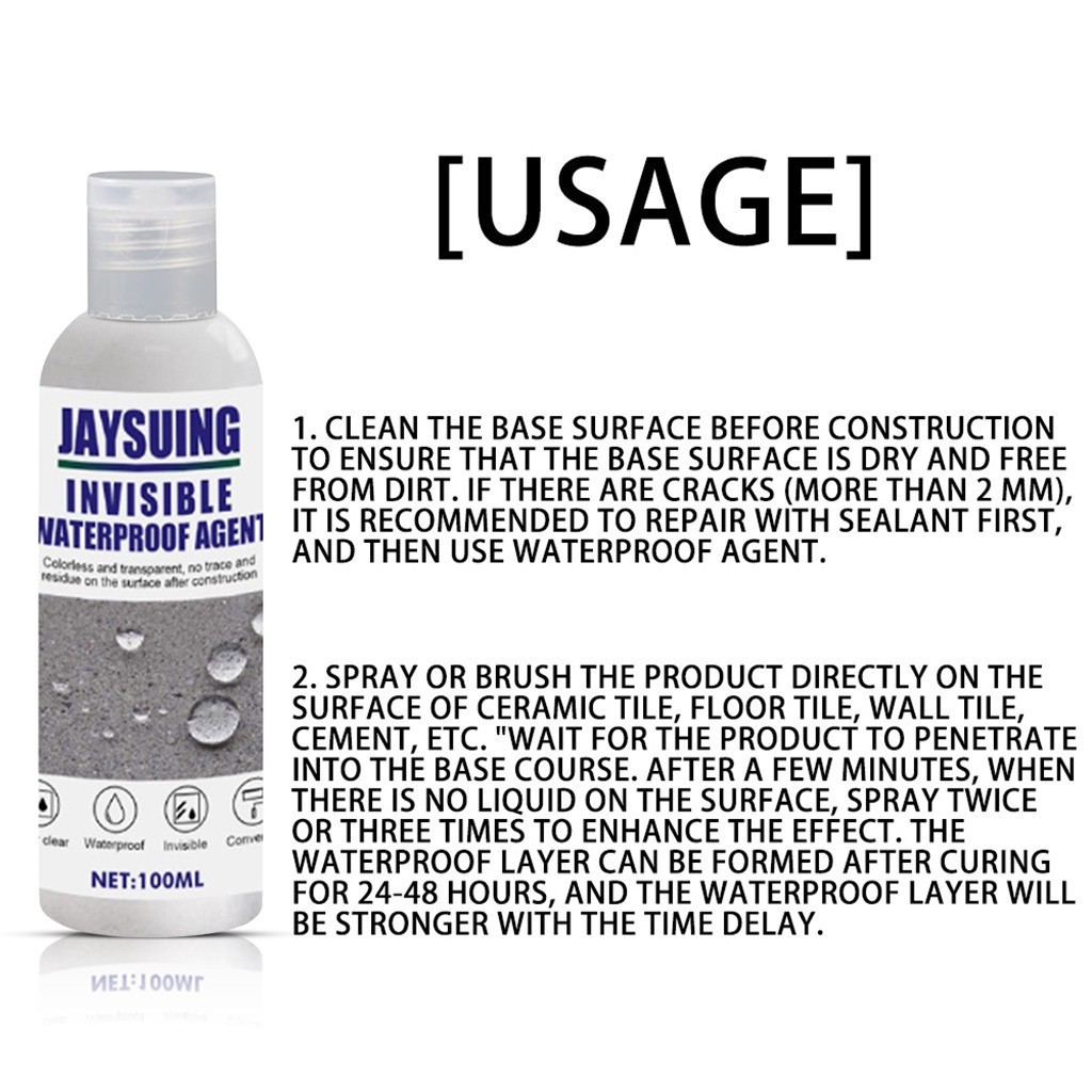 Название продукта: Невидимый Водонепроницаемый Агент Характеристики продукта: 30/100 мл (Нельзя добавлять воду) Принцип водонепроницаемости: проникает в пленку, прозрачный и водонепроницаемый Объем строительства: туалет/внешняя стена/душевая комната/балкон/бассейн/ванна/Солнечная комната и т. д. поверхность плитки Водонепроницаемая герметичная. 1. Очистите поверхность фундамента перед постройкой, чтобы убедиться, что поверхность фундамента сухая и сухая. Если есть трещина (больше 2 мм), рекомендуется отремонтировать ее герметиком перед использованием гидроизоляционного агента 2. Распылите или почистите изделие непосредственно на поверхности керамической плитки, напольной плитки, настенной плитки и т. Д. Ожидая проникновения продукта основными курсами. Через несколько минут на поверхности нет жидкости, пожалуйста, распылите дважды или три раза, чтобы усилить эффект. Водонепроницаемый слой может быть образован в течение 24-48 часов, и водонепроницаемый слой станет со временемПосылка: