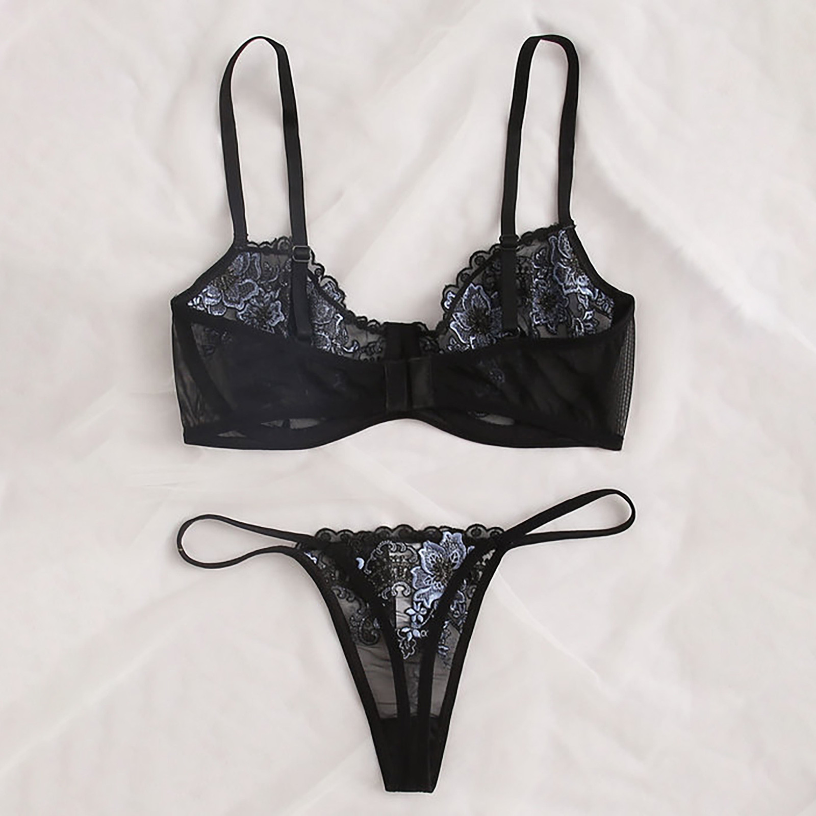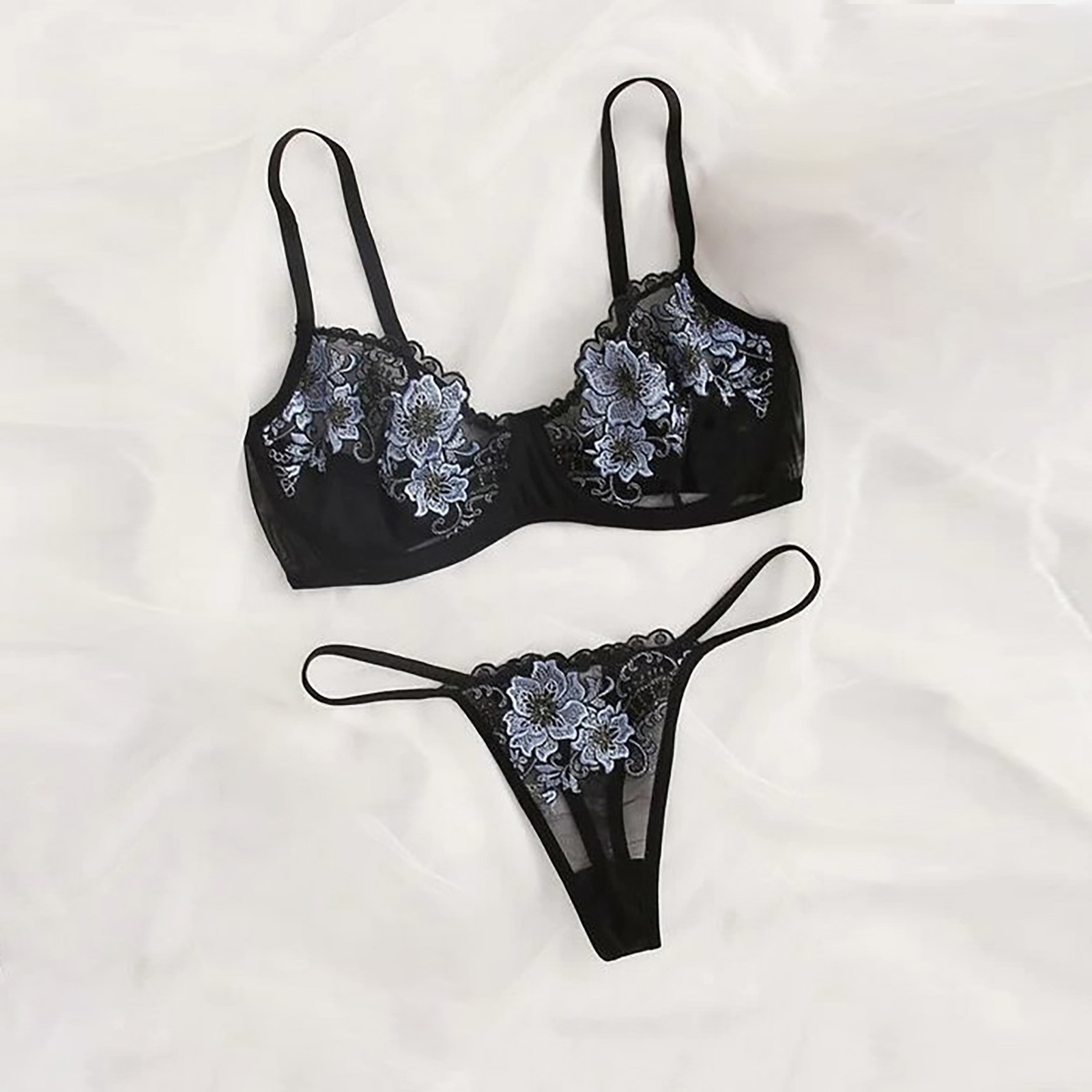 Женское кружевное белье с вышивкой, бюстгальтер, трусики, эротическое сексуальное нижнее белье, комплект S-XL