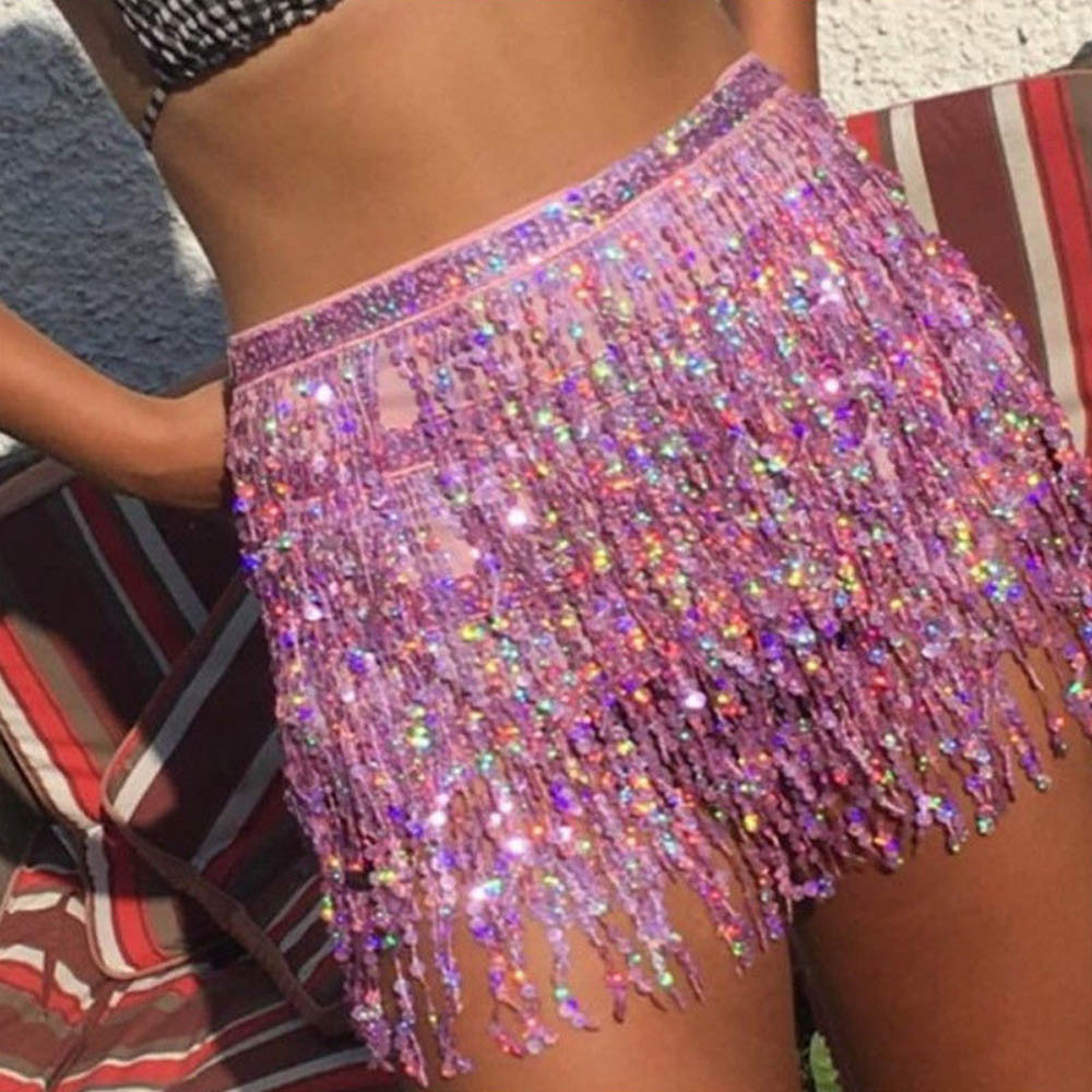 Женский костюм для танца живота с блестками, юбка с кисточками, Клубная мини-юбка