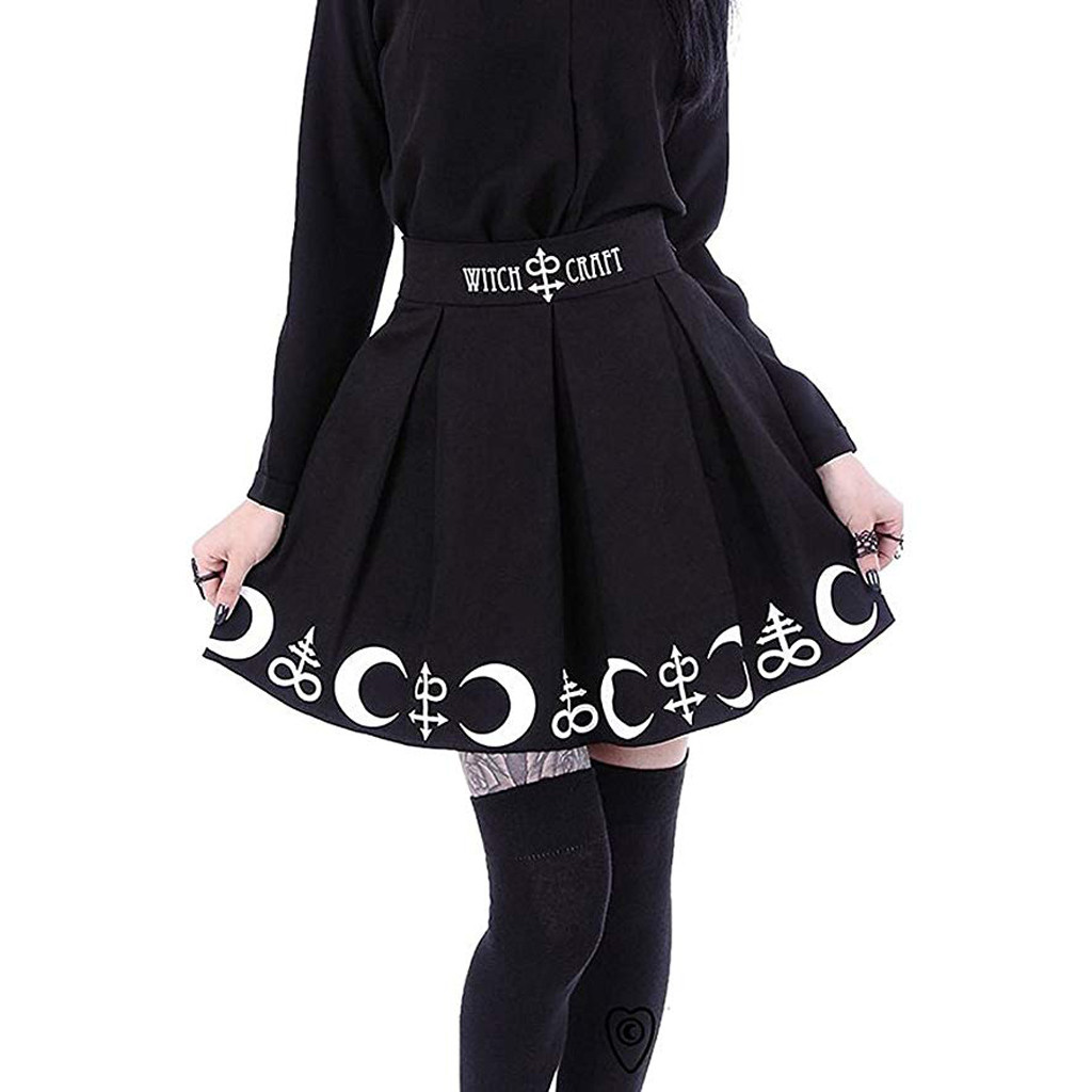 Для женщин; Готическая обувь в стиле «панк»; Love You To Луна магической символы плиссированные мини-юбка