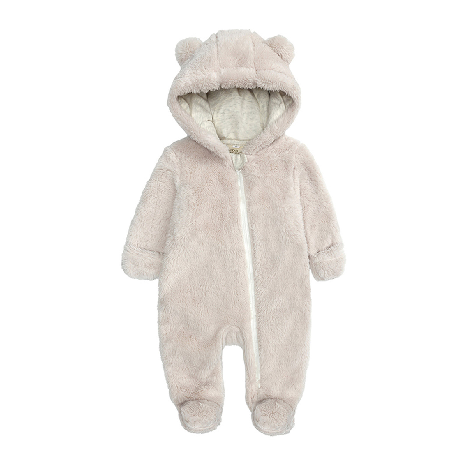 Зимний флисовый комбинезон для новорожденных мальчиков, однотонный комбинезон с капюшоном, пальто на молнии, верхняя одежда