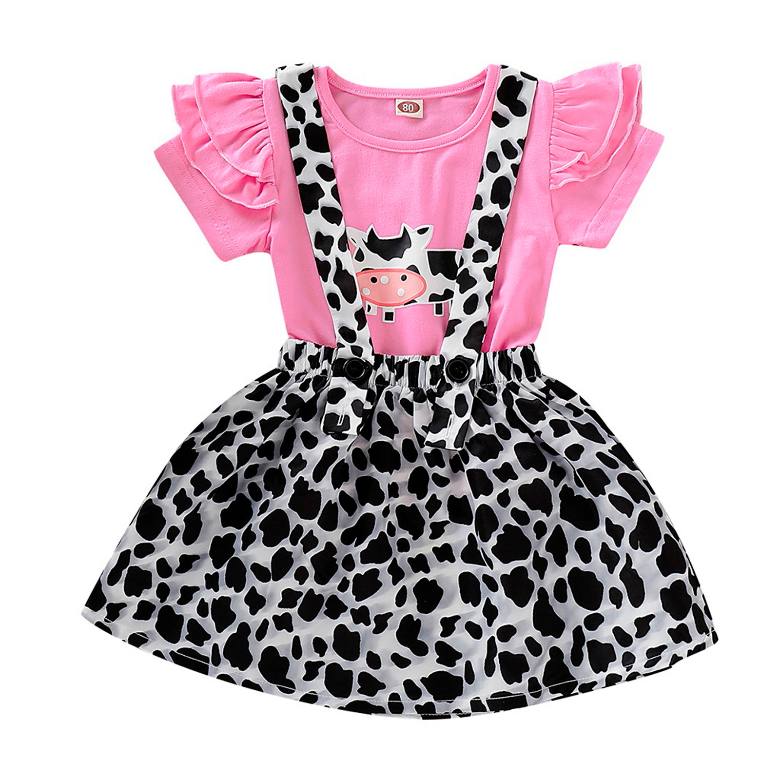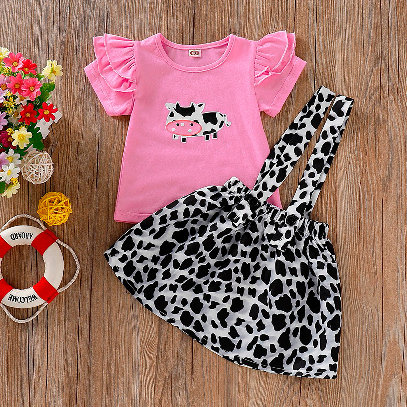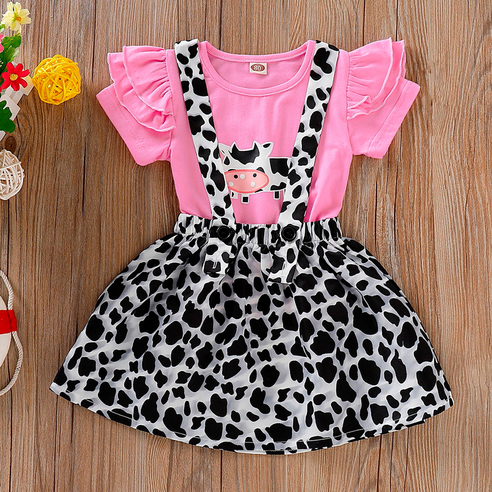 Футболка с изображением животного для маленьких девочек + юбка в горошек с принтом коровы