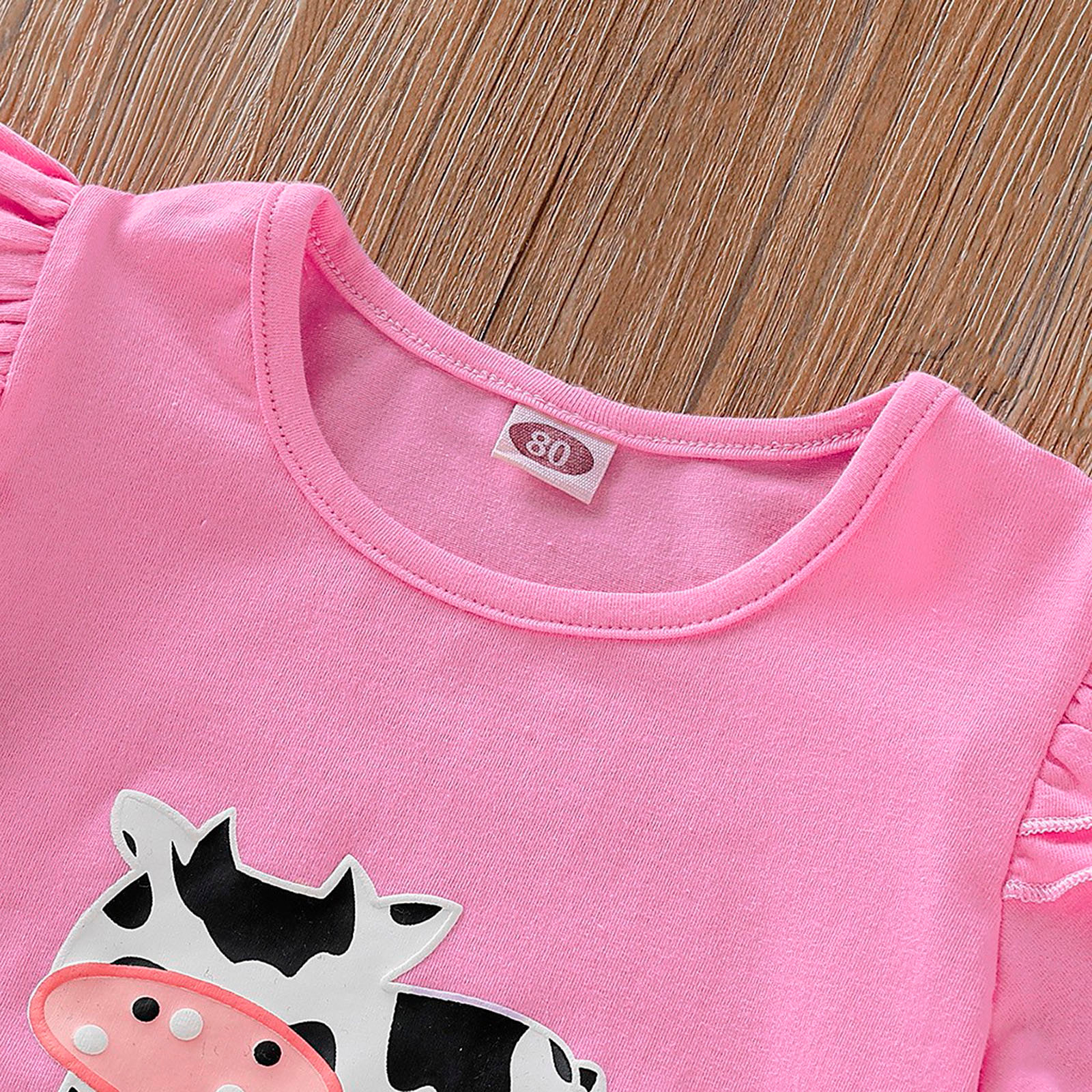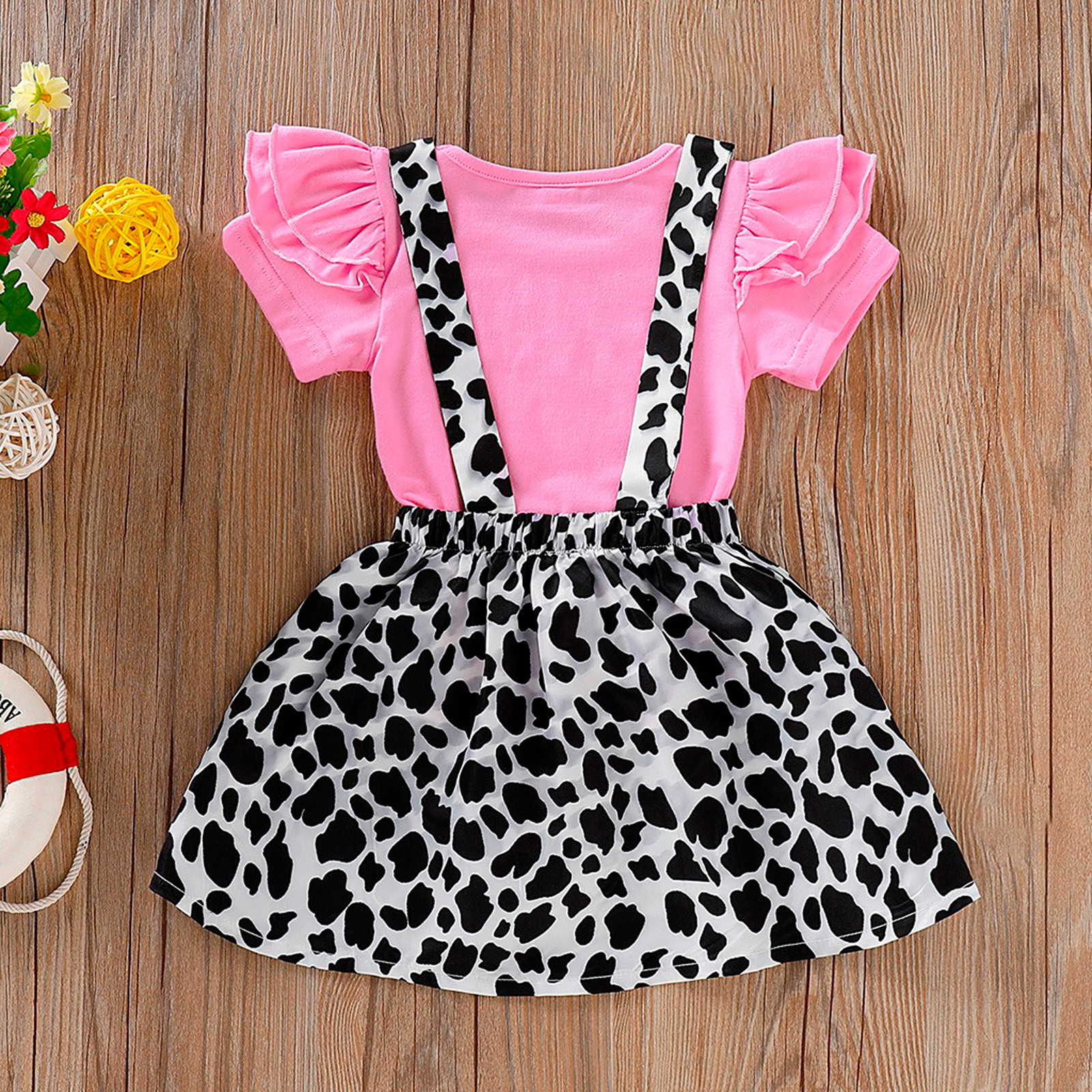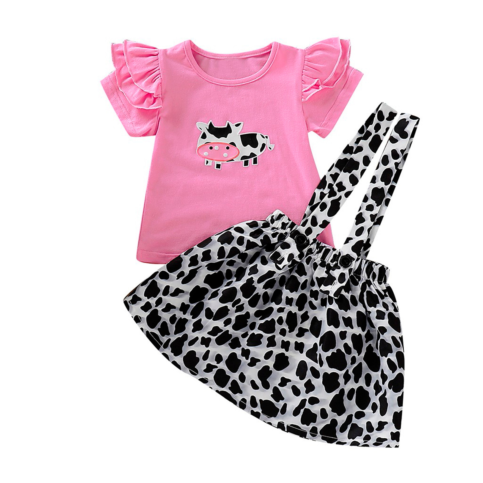 Футболка с изображением животного для маленьких девочек + юбка в горошек с принтом коровы