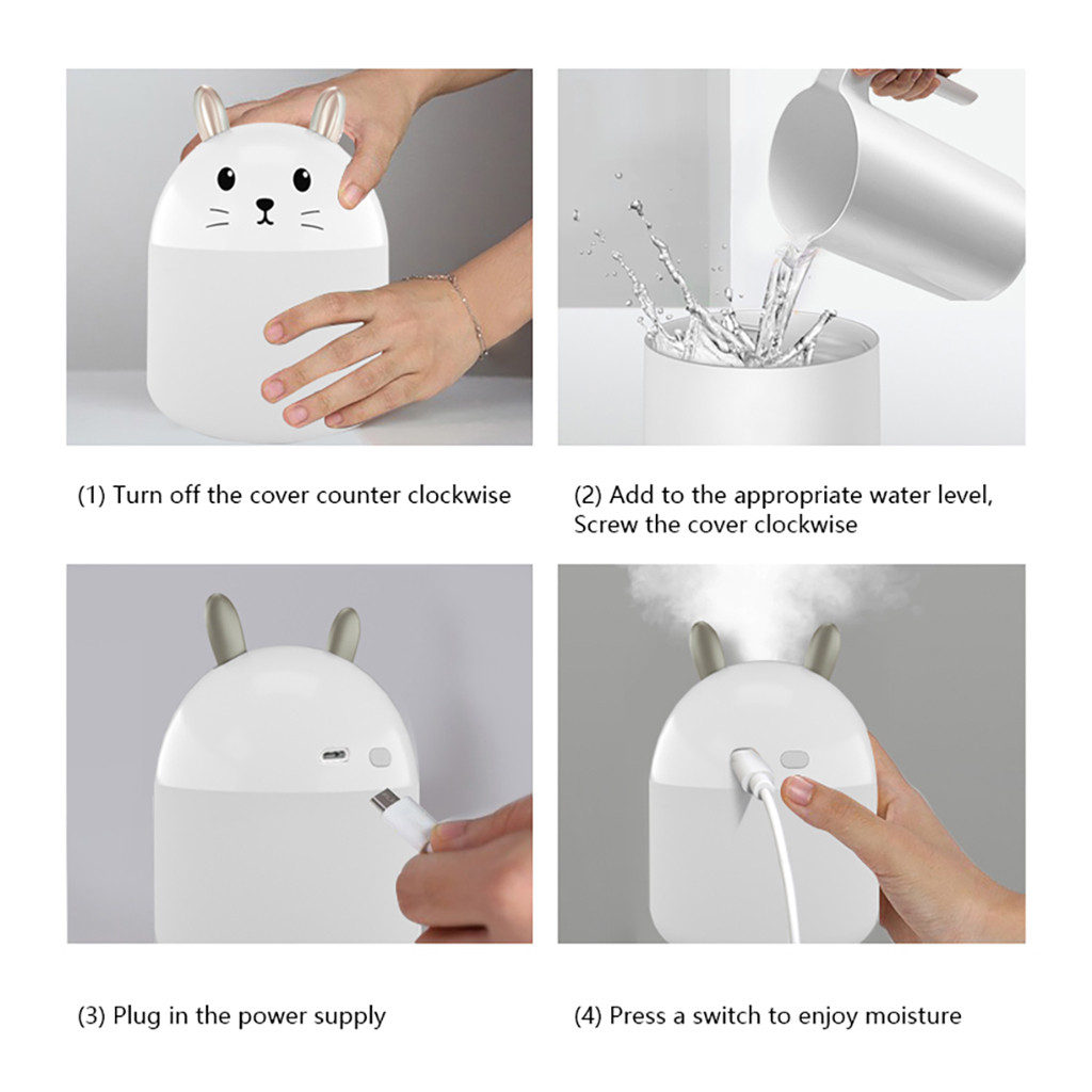 Портативный Мини-увлажнитель: портативный и маленький дизайн очень легко брать с собой В любом месте и супер идеально подходит для путешествий, спальни, офиса, что эффективно Увлажняет сухую кожу и уменьшает шелушение кожи. До Включите питание, убедитесь, что в баке достаточно воды, этот продукт не может Включается в чехол без воды Добавить воду Не должна превышать водную линию, чтобы не переливаться, должны гарантировать, что В резервуаре для воды достаточно воды Замените Резервуар для воды в день, чтобы обеспечить использование помещений свежим воздухом Красота: Освежает кожу и может быть взят как уход за кожей, сохраняет кожу здоровой и влажной Украшение: Выберите светильник, который вам нравится, чтобы сделать романтичным и счастливым, приятно пахнет Увлажнение: Увлажняет воздух летом и зимой, освежает качество Воздуха, которым мы дышим Напряжение: 5V/1A; 1,5-2 Вт Емкость/Емкость бака: 250 мл Размер: 8.3x11.2cm Функция функции: увлажнениеПосылка включает в себя:
