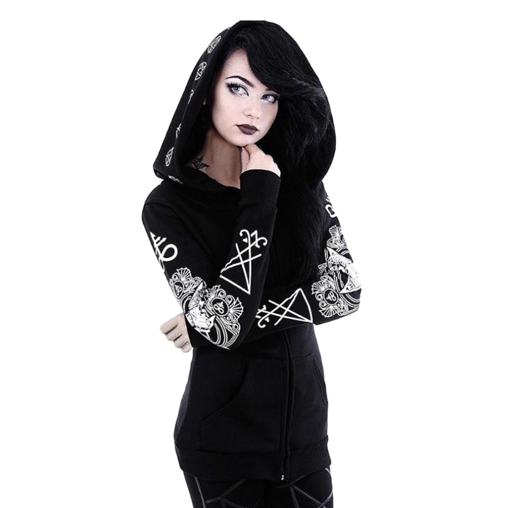 Женский черный кардиган с капюшоном и длинным рукавом в готическом стиле, пальто размера плюс