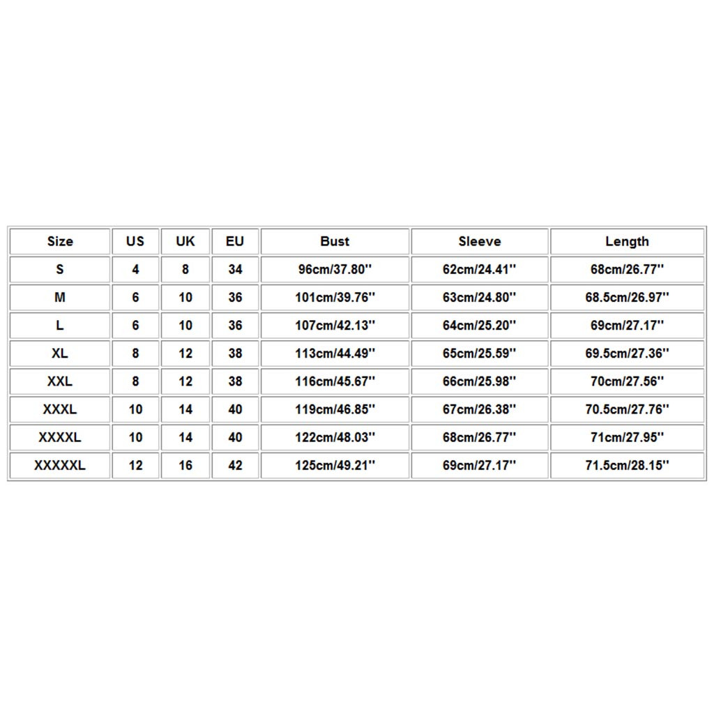 Размер США Великобритания ЕС Бюст Рукав Длина S 4. 8 34 96 см/37,80'' 62 см/24,41'' 68 см/26,77'' М 6 10 36 101 см/39,76'' 63 см/24,80'' 68,5 см/26,97'' L 6 10 36 107 см/42,13'' 64 см/25,20'' 69 см/27,17'' XL 8 12 38 113 см/44,49'' 65 см/25,59'' 69,5 см/27,36'' XXL 8 12 38 116 см/45,67'' 66 см/25,98'' 70 см/27,56'' XХХL 10 14 40 119 см/46,85'' 67 см/26,38'' 70,5 см/27,76'' XXXXL 10 14 40 122 см/48,03'' 68 см/26,77'' 71 см/27,95'' XXXXXL 12 16 42 125 см/49,21'' 69 см/27,17'' 71,5 см/28,15''