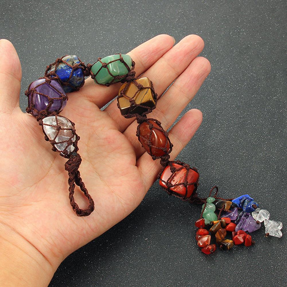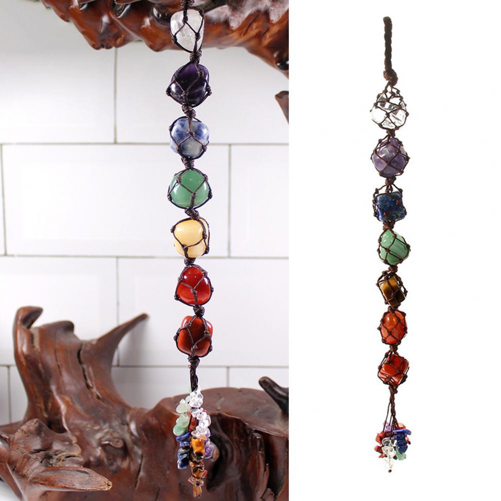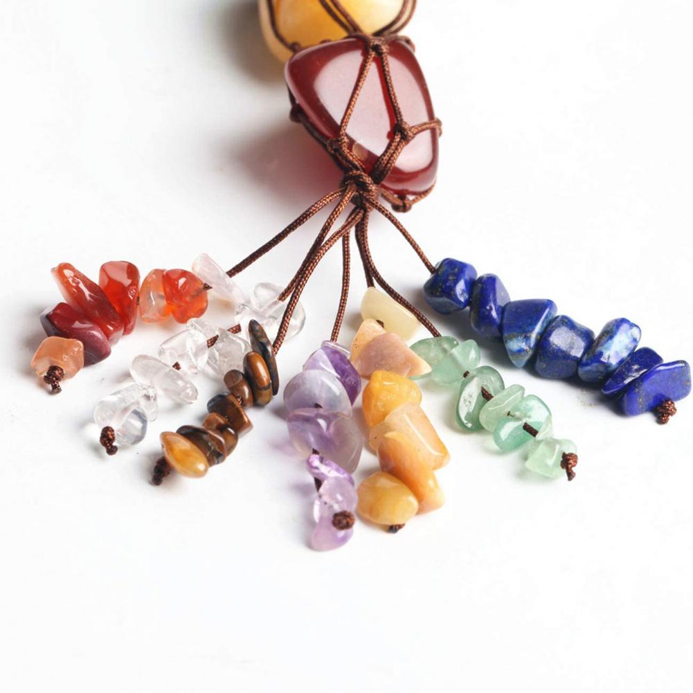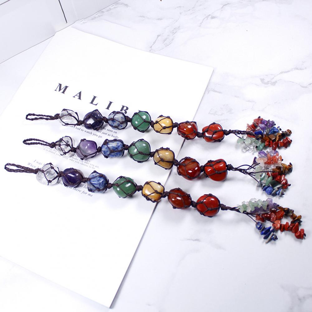 Семицветная чакра, натуральный камень, автомобильный подвесной орнамент, ручная работа, подвеска с кисточками, домашний декор