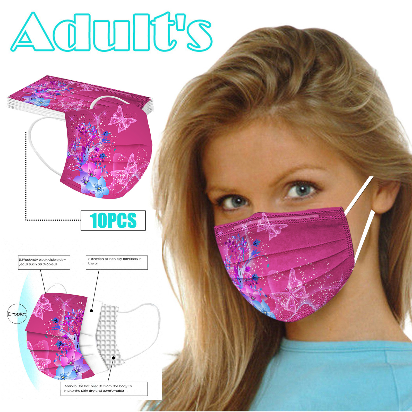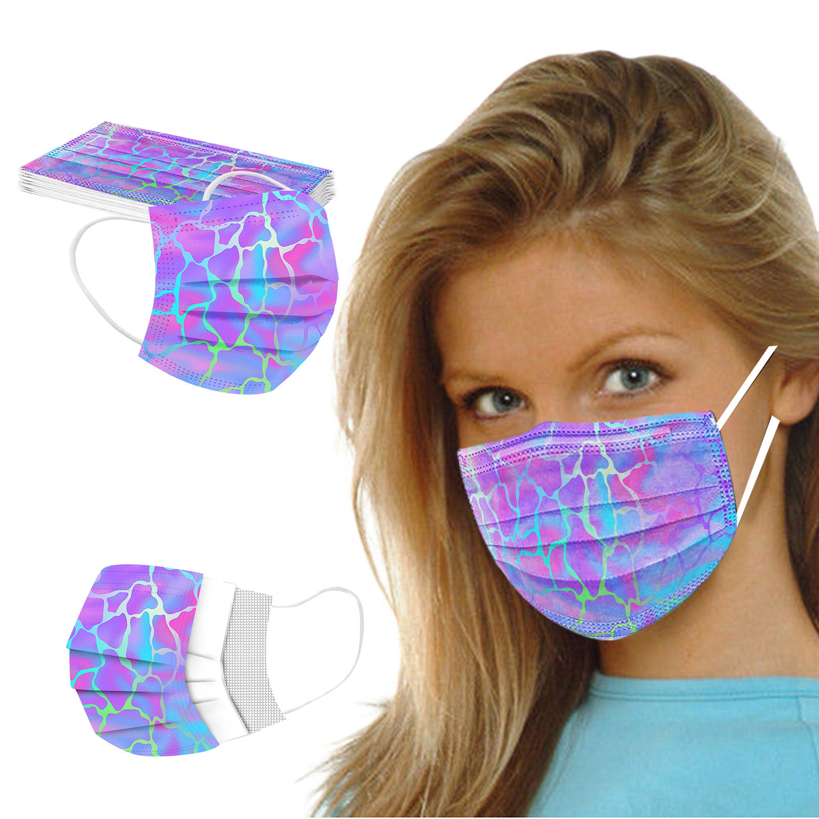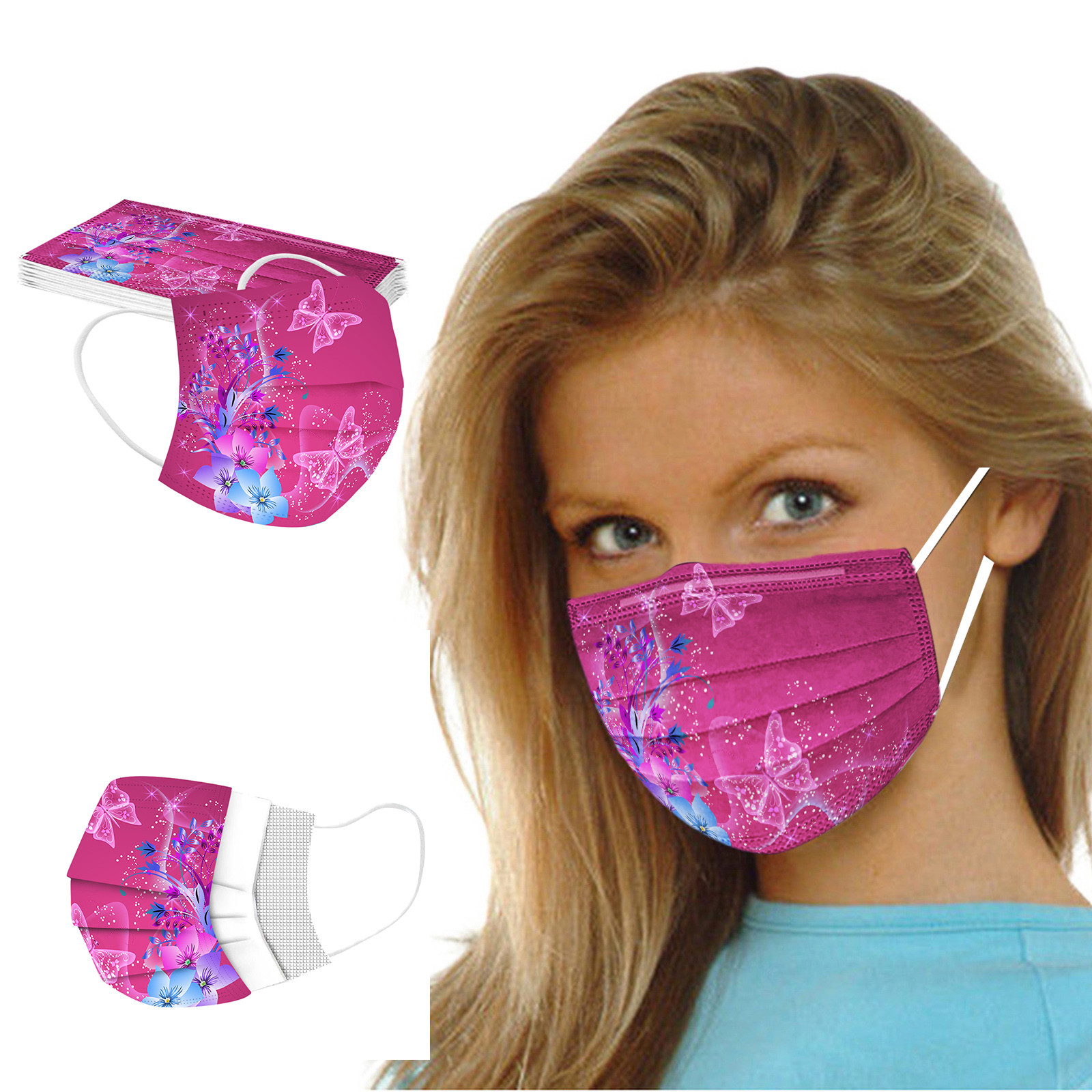 В 3 слоя Нетканая одноразовая маска изготовлена из 3 слоев нетканого материала, Безопасен и безопасен для использования. Дышащий материал и милый Узоры, которые делают его полезным и модным. Специальный 3 слоя из нетканого материала Дизайн, обеспечивает некоторую защиту от пыли, автомобильных выхлопных газов, Пыльца и т. д. эластичная Ушная петля, легко носить и не давит на уши. Маникюрный салон или любые другие области, где может потребоваться защита