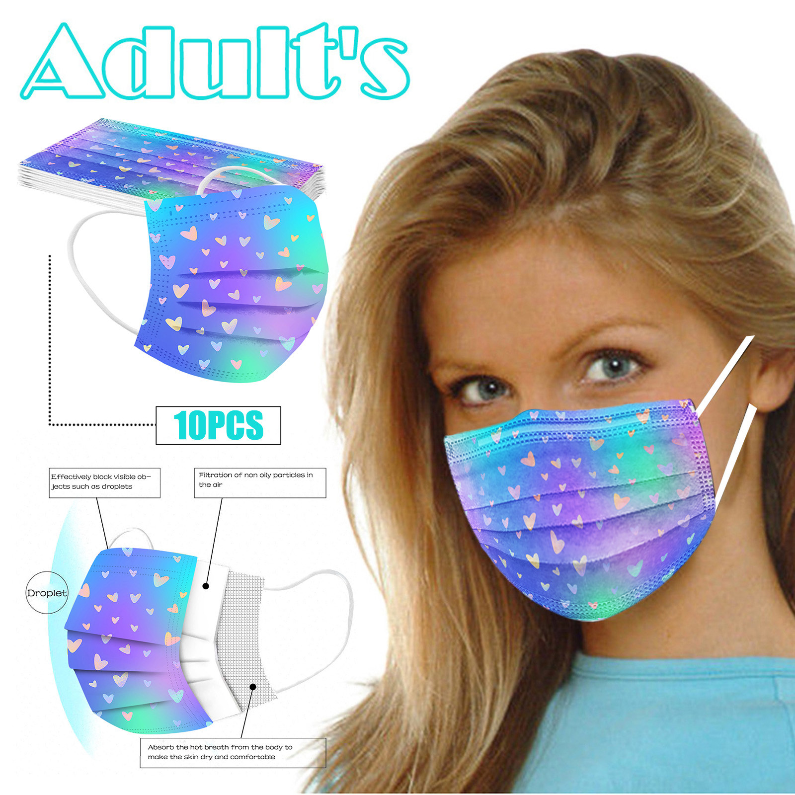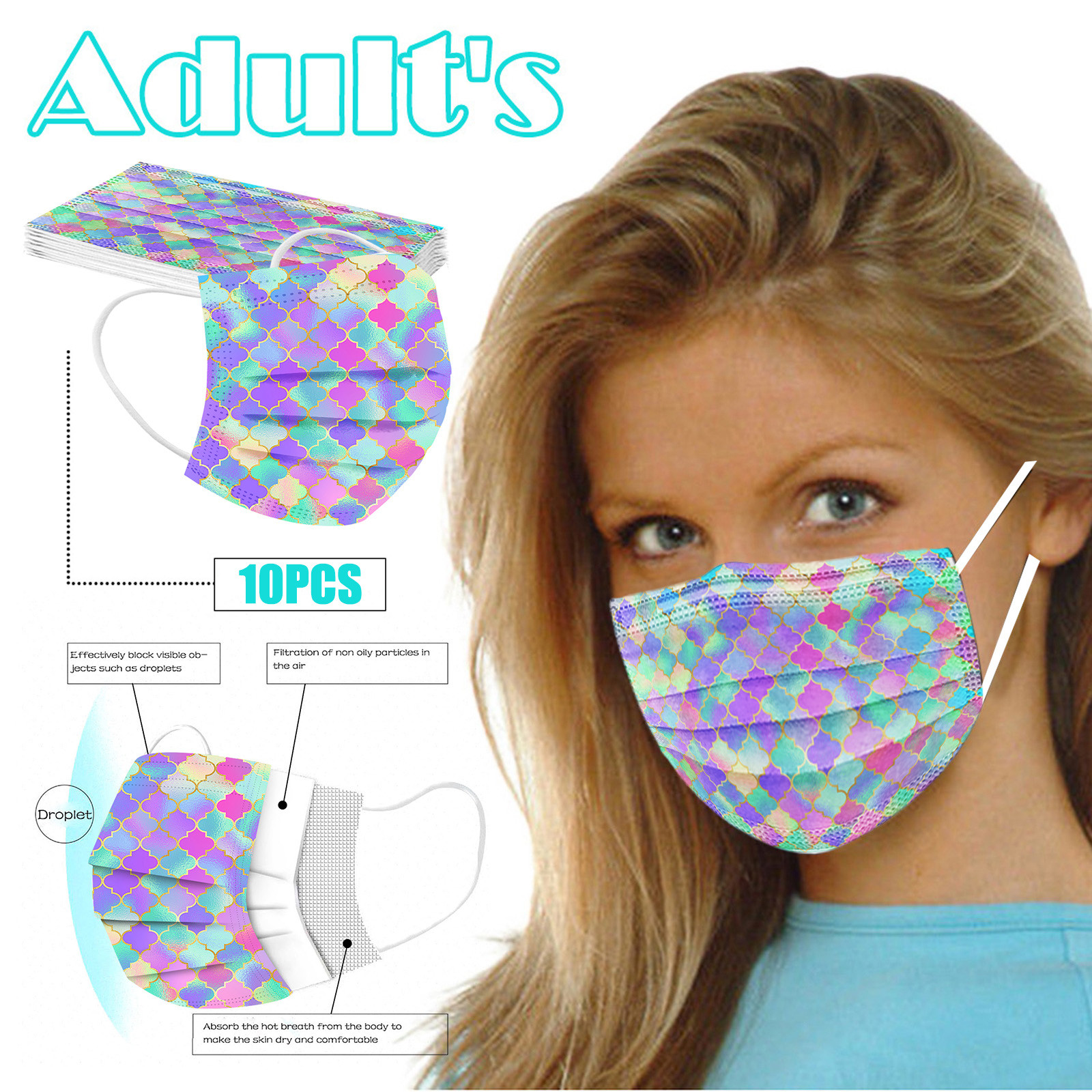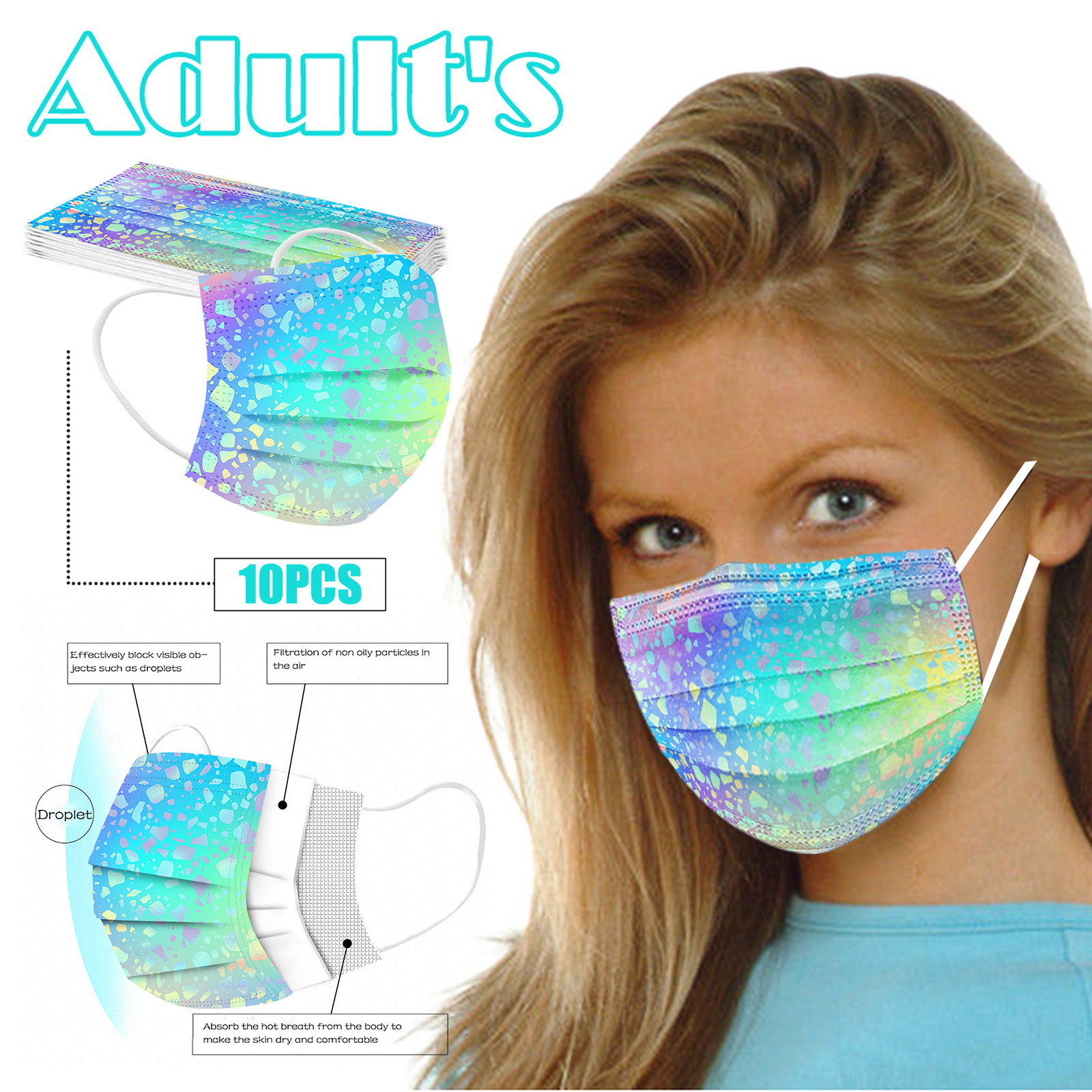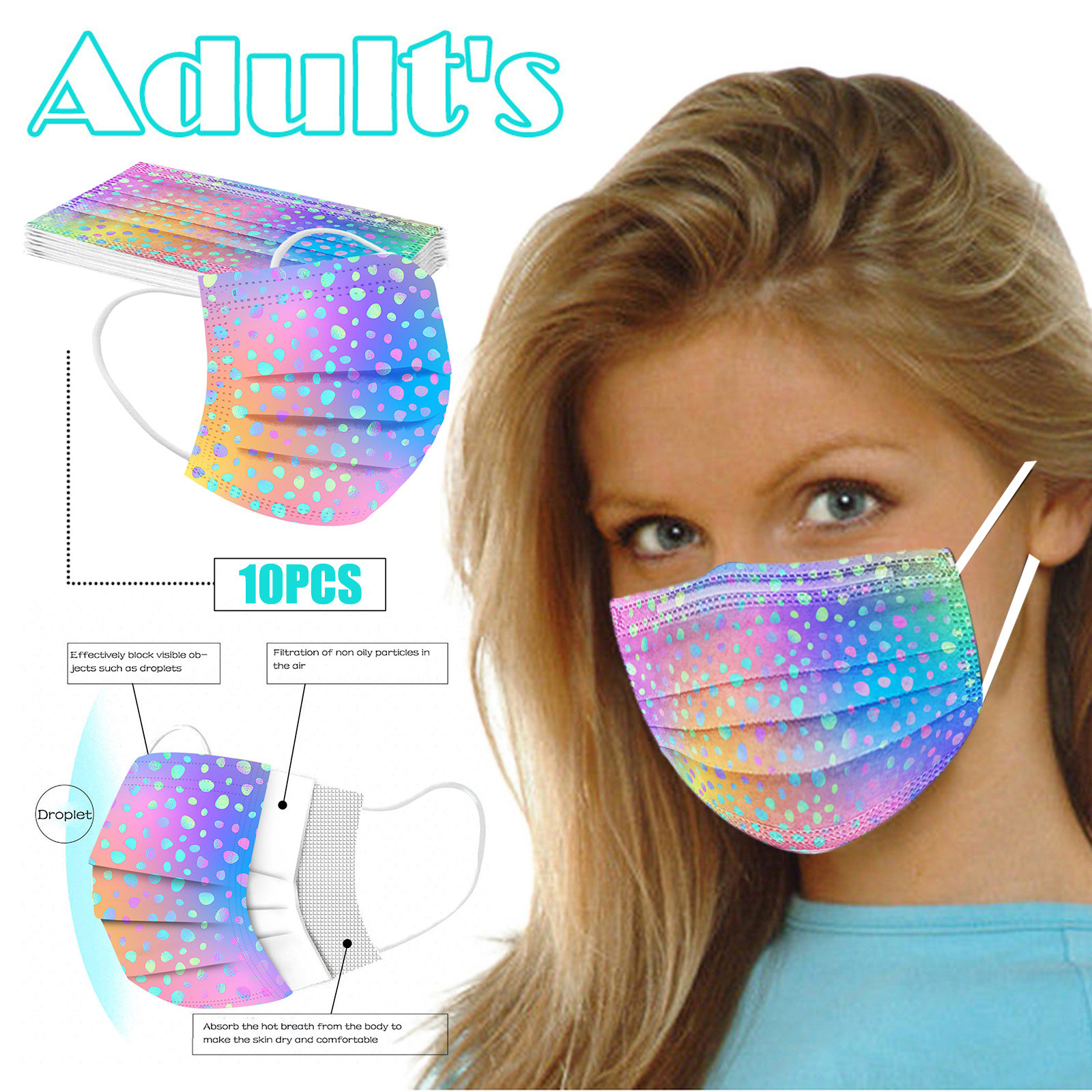 В 3 слоя Нетканая одноразовая маска изготовлена из 3 слоев нетканого материала, Безопасен и безопасен для использования. Дышащий материал и милый Узоры, которые делают его полезным и модным. Специальный 3 слоя из нетканого материала Дизайн, обеспечивает некоторую защиту от пыли, автомобильных выхлопных газов, Пыльца и т. д. эластичная Ушная петля, легко носить и не давит на уши. Маникюрный салон или любые другие области, где может потребоваться защита