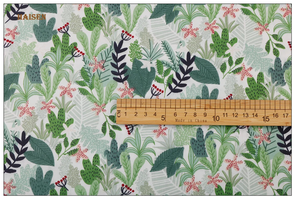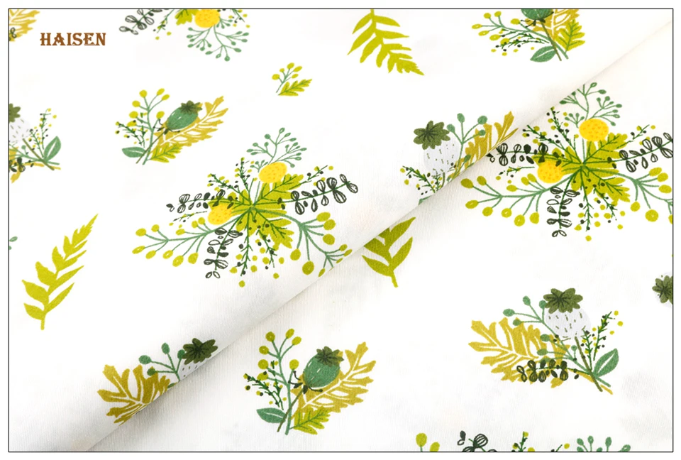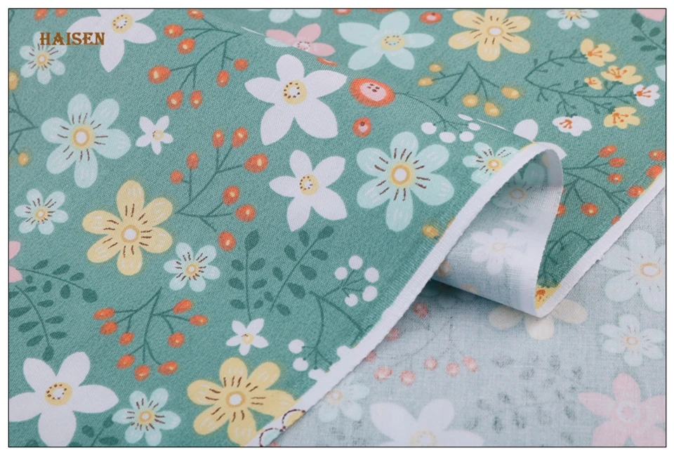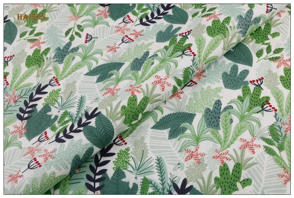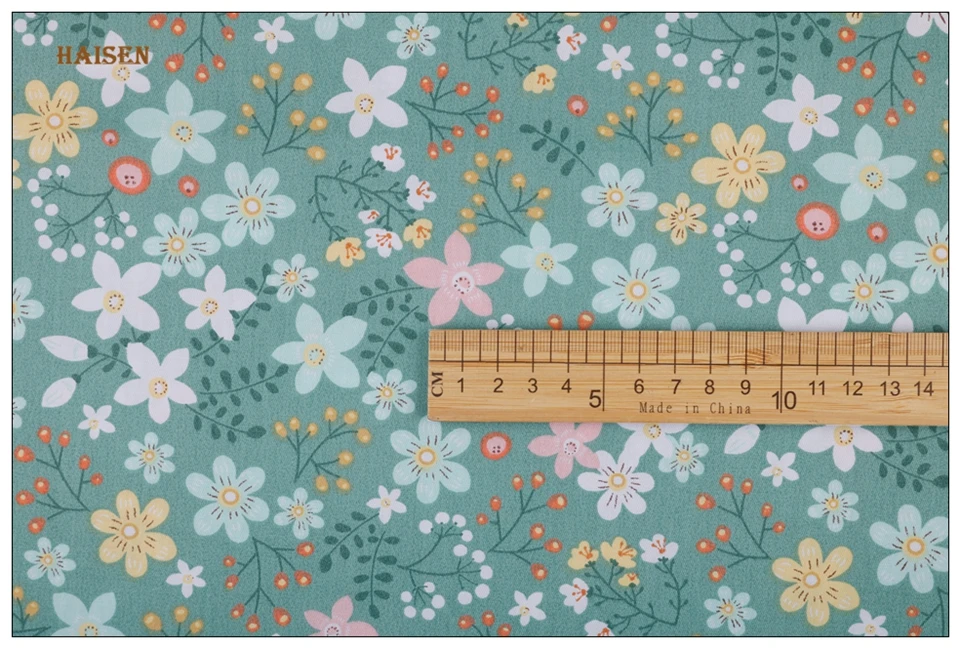 Зеленая Цветочная саржевая ткань из ситцевое с принтом хлопка для самостоятельного шитья детских и детских постельных принадлежностей стеганое платье текстильный материал на метр