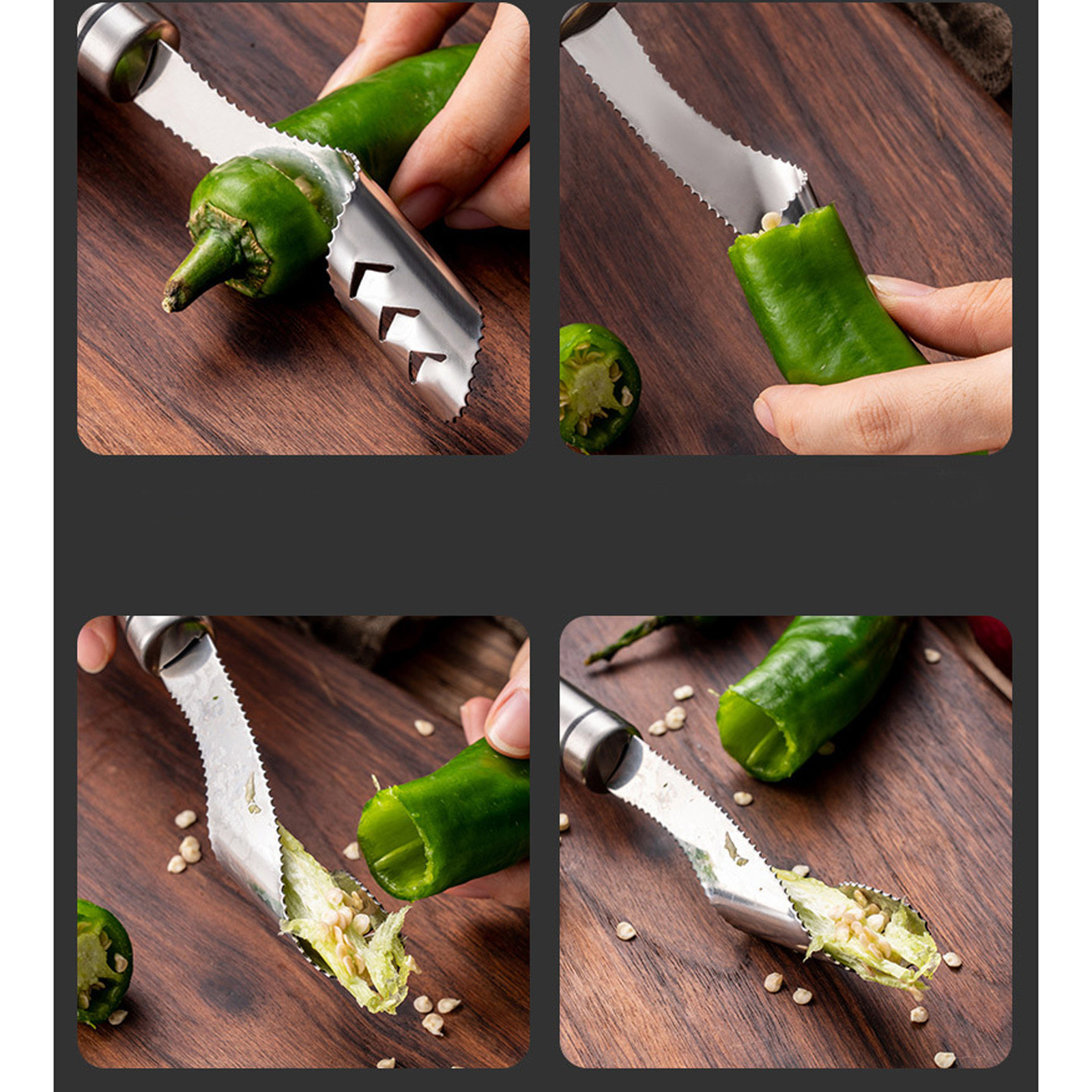 Легко закрепить и удалить семена, это поможет вам быстро подготовить свой ресторан и сэкономить время. Это отличный инструмент для резки перцев, jalapenos и зеленого перца.