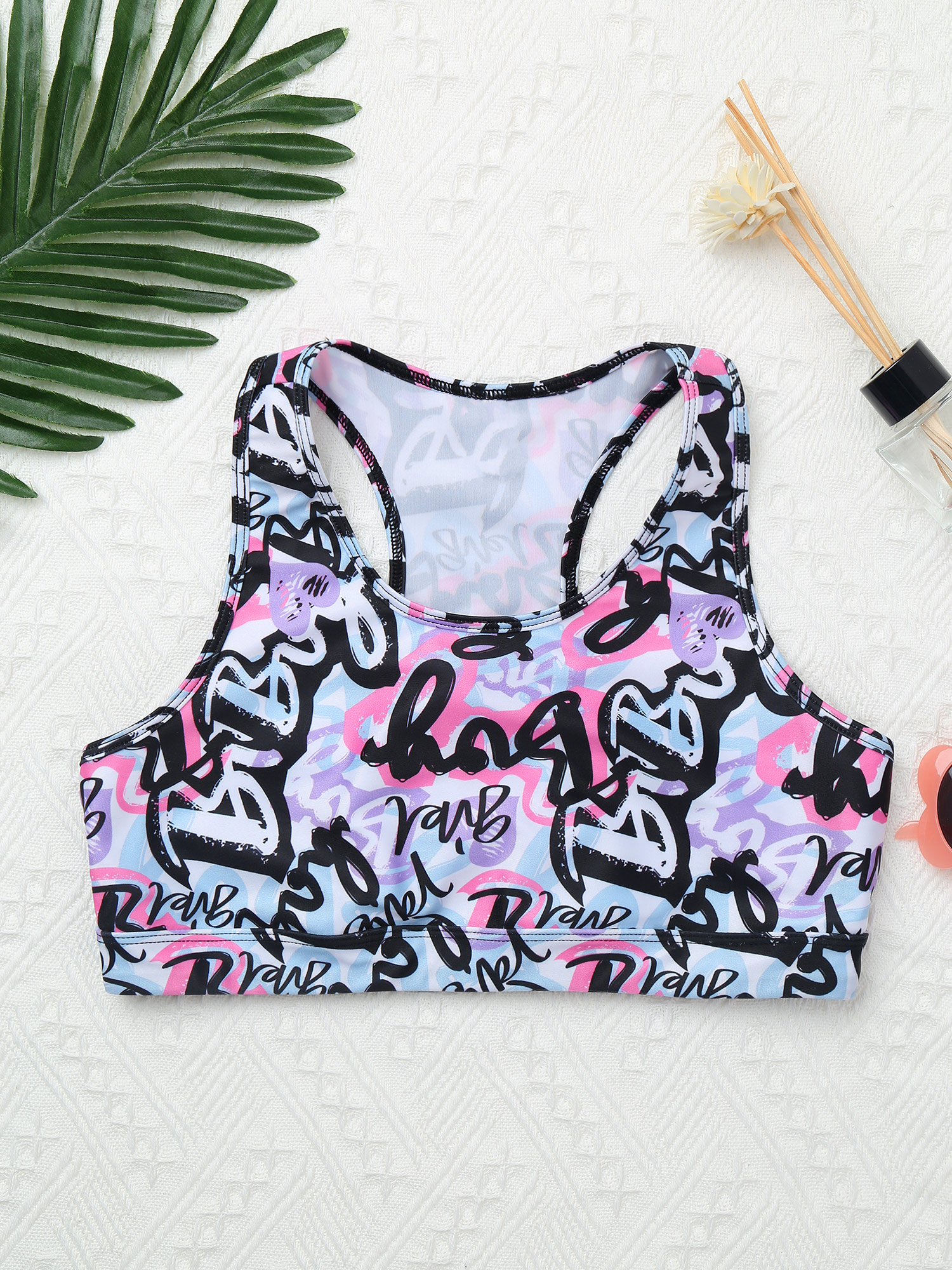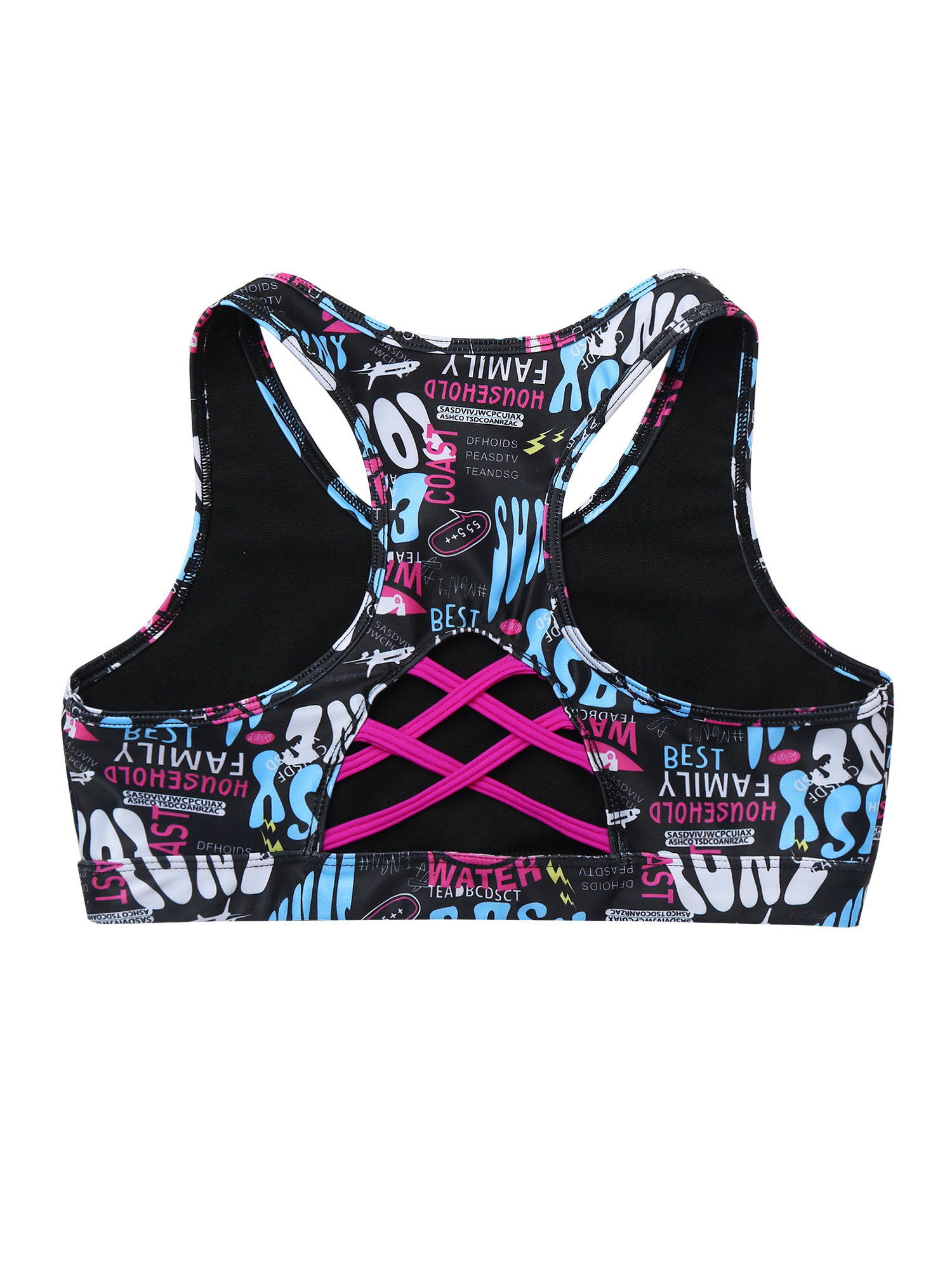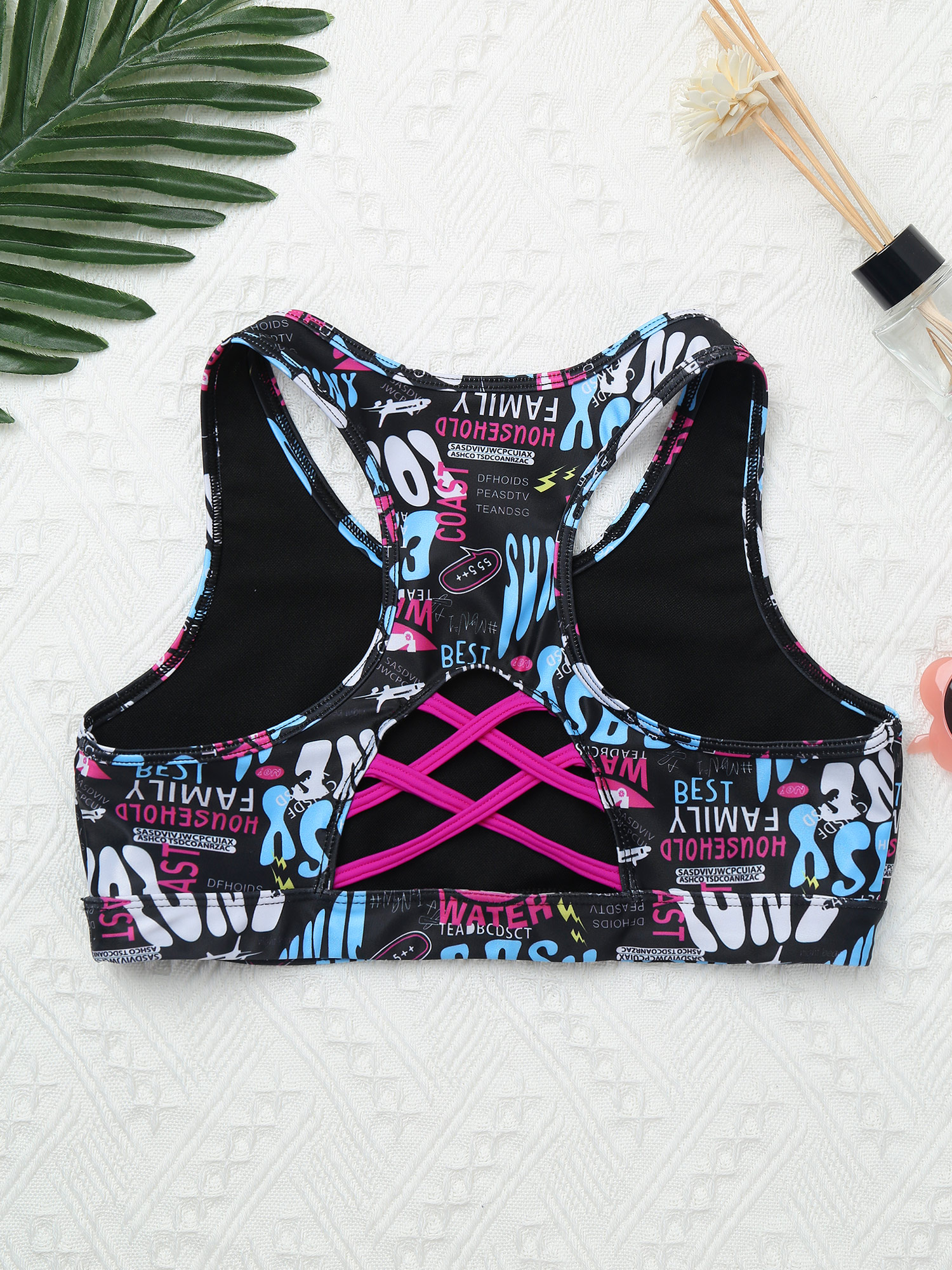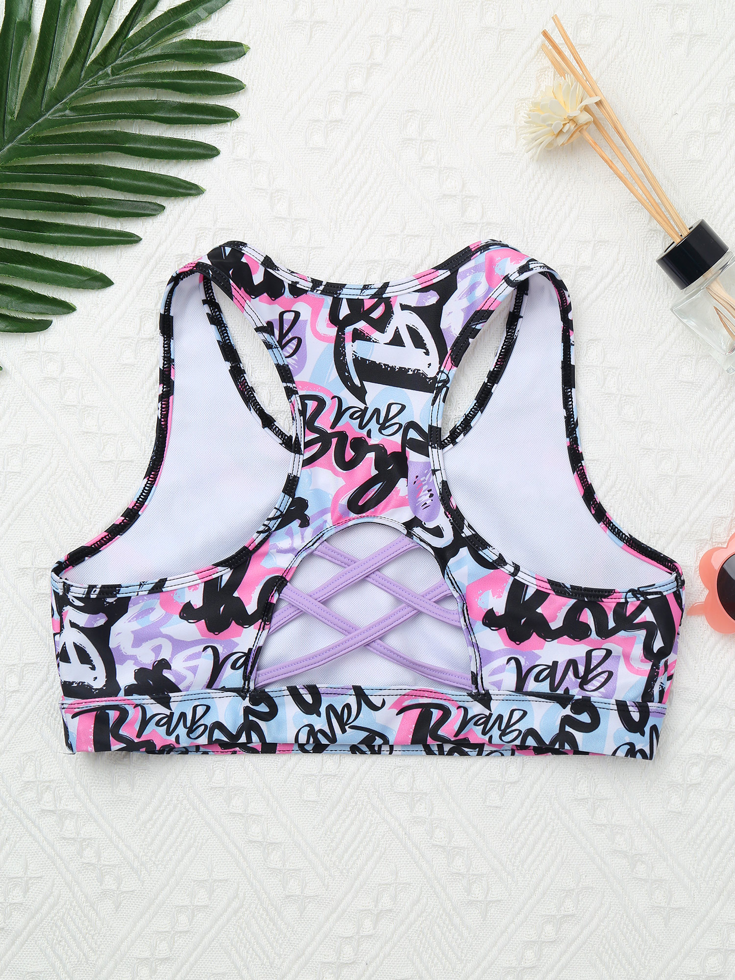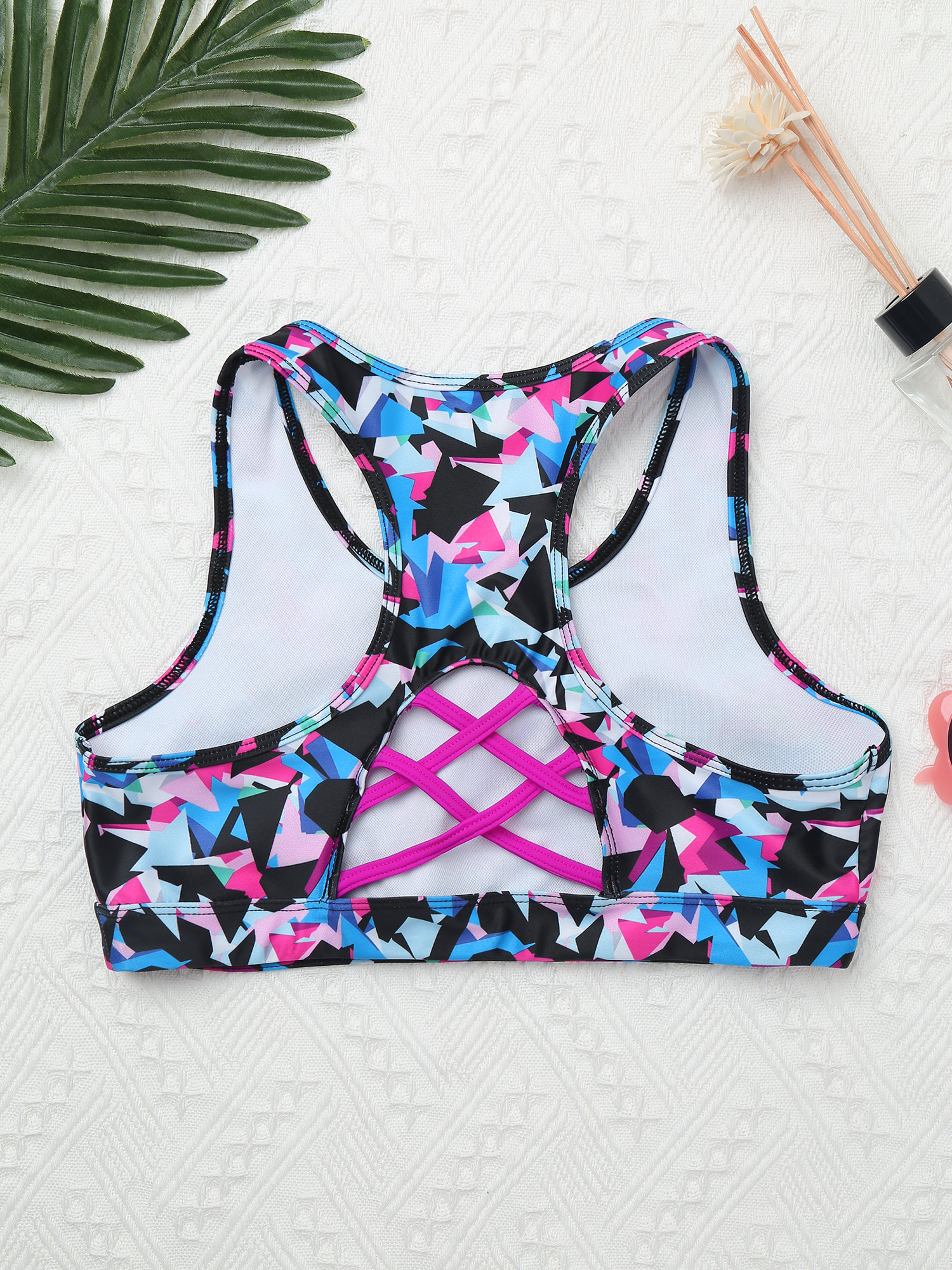 Цельнокроеный топ для девочек без рукавов с принтом; Спортивный топ-майка с перекрещивающимися полосками сзади.