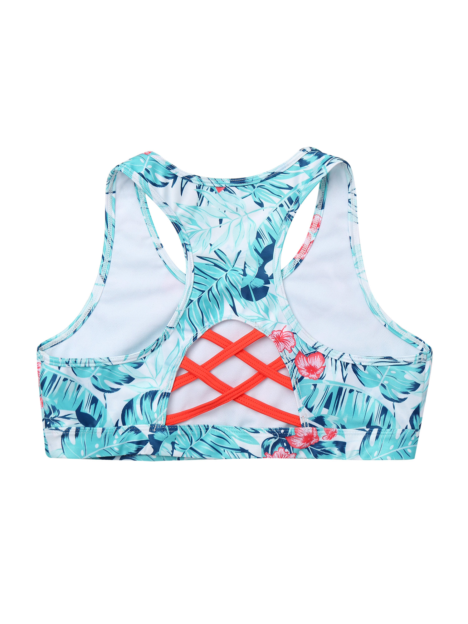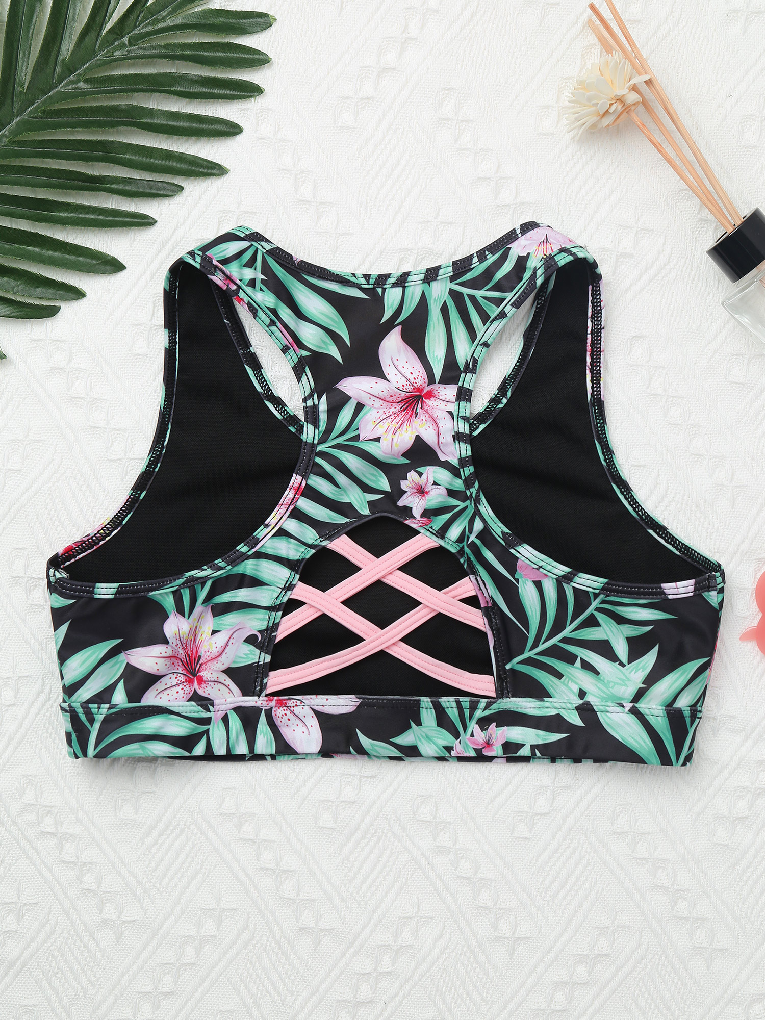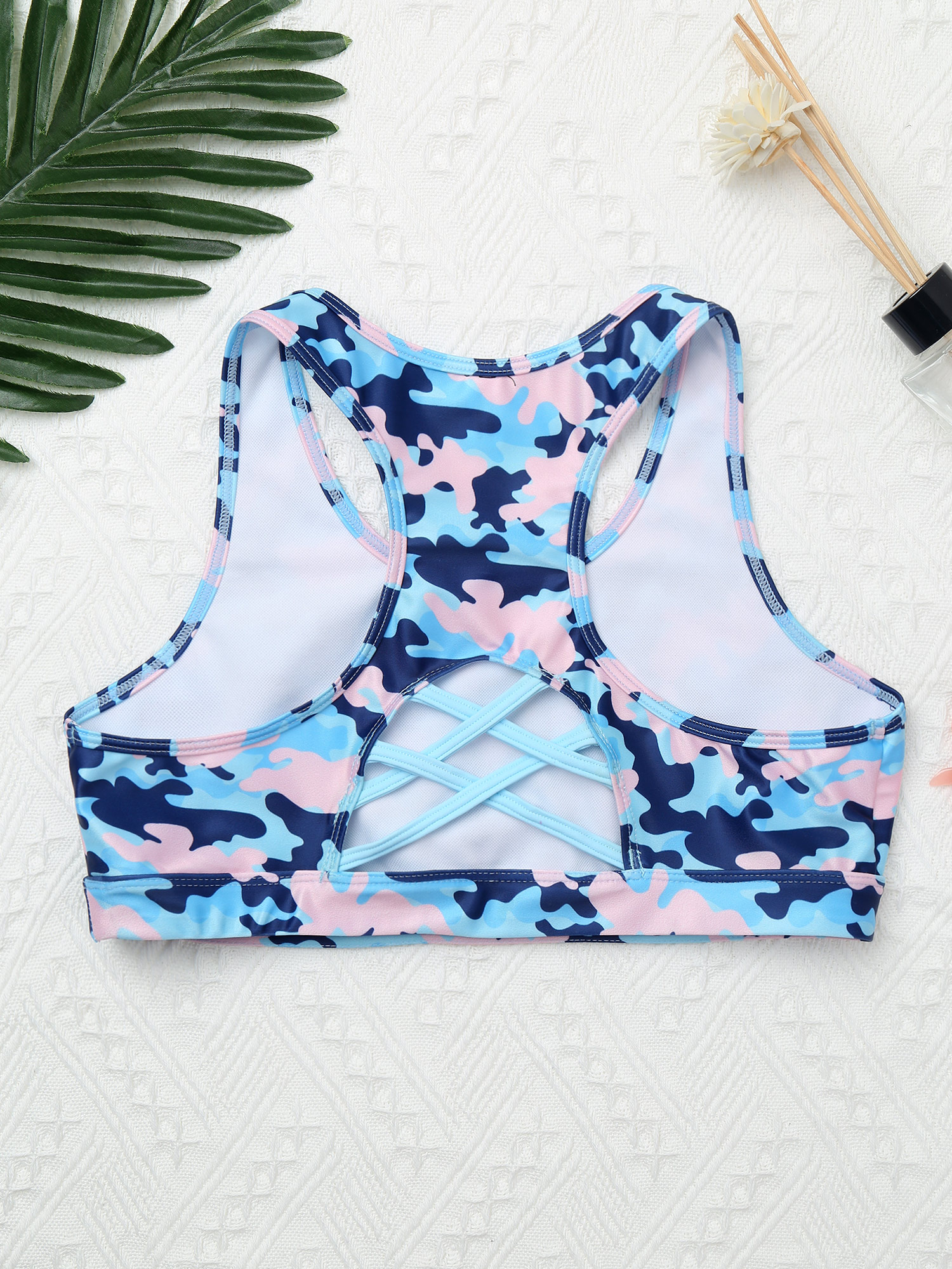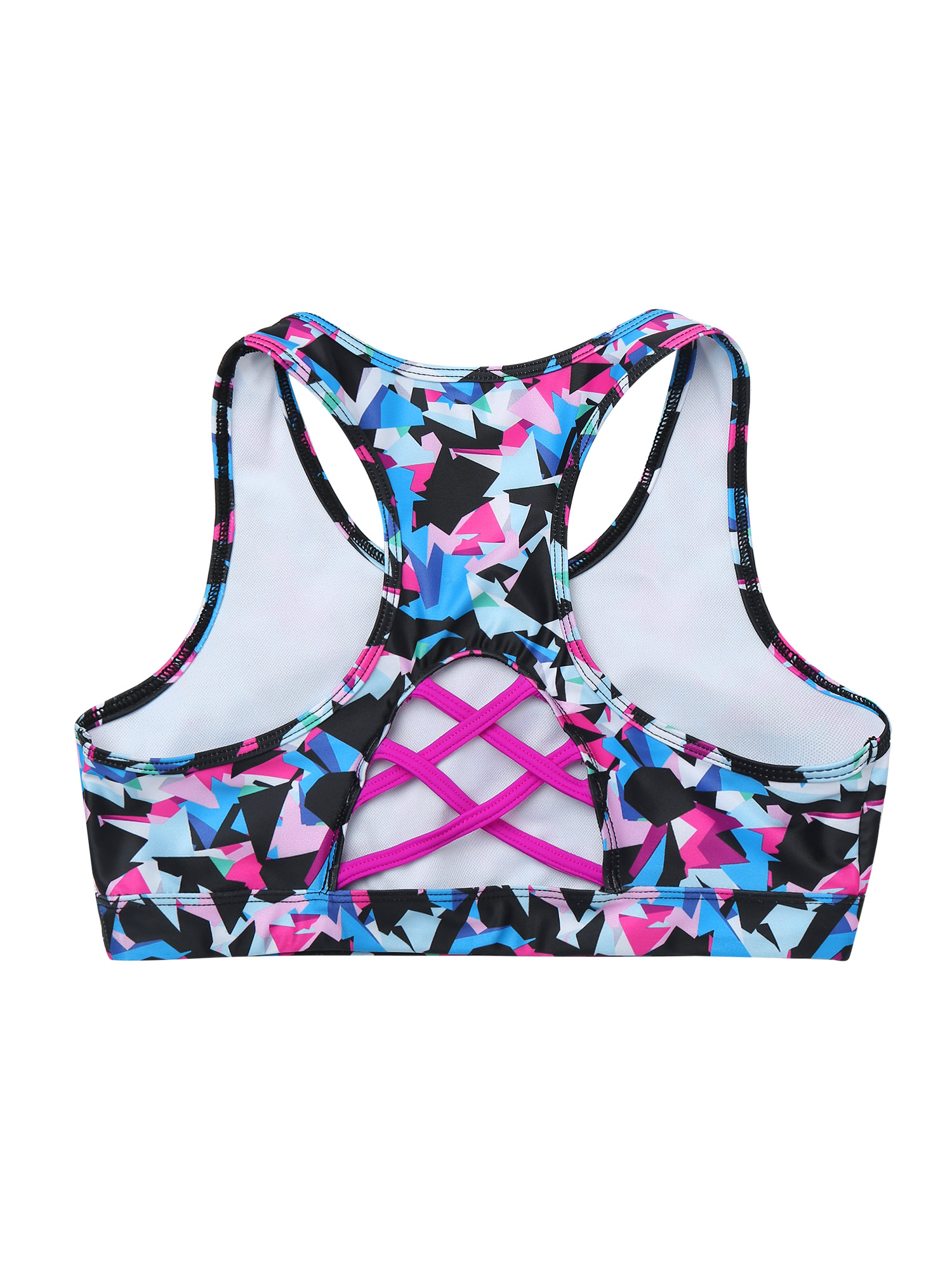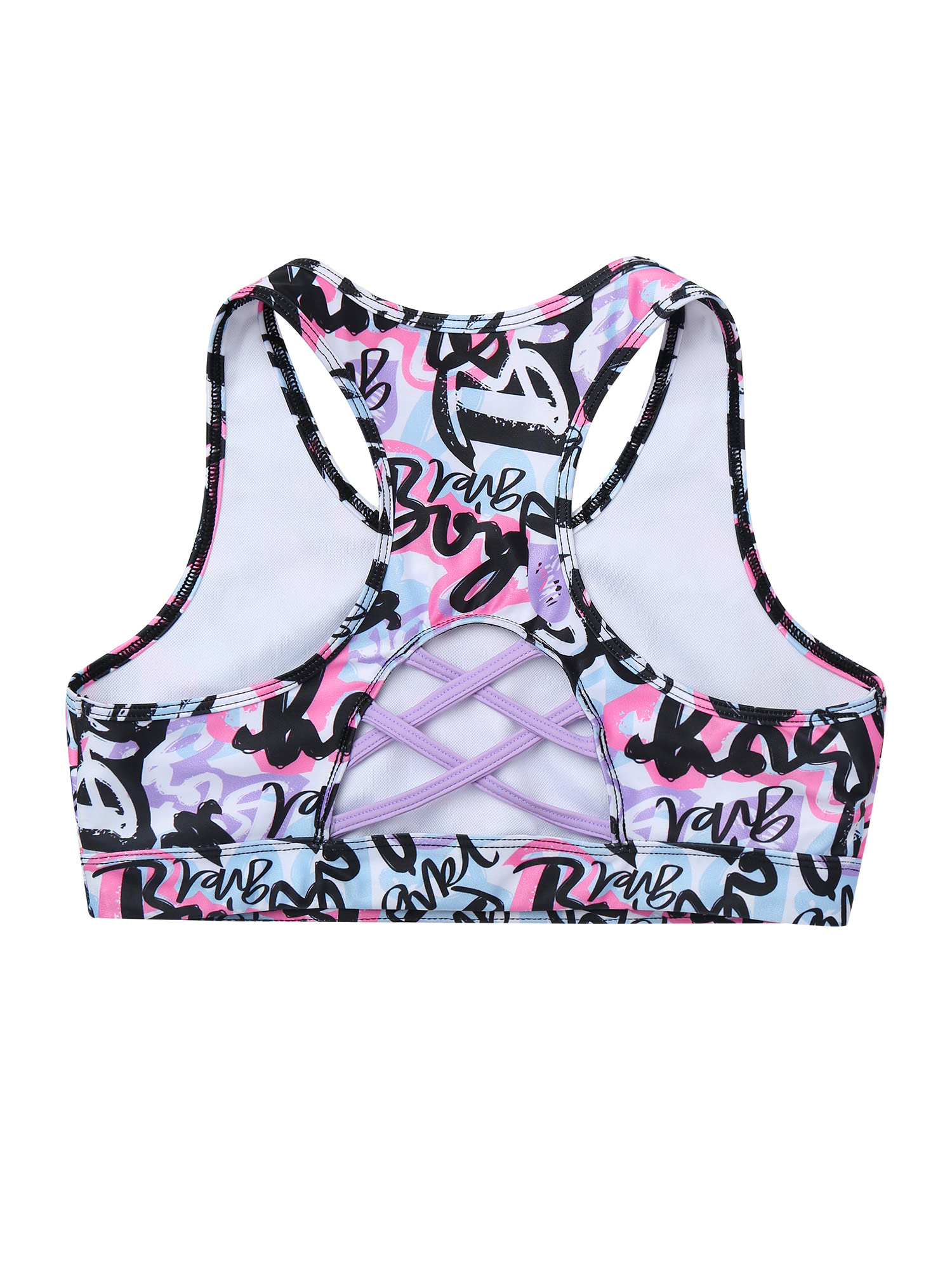 Цельнокроеный топ для девочек без рукавов с принтом; Спортивный топ-майка с перекрещивающимися полосками сзади.