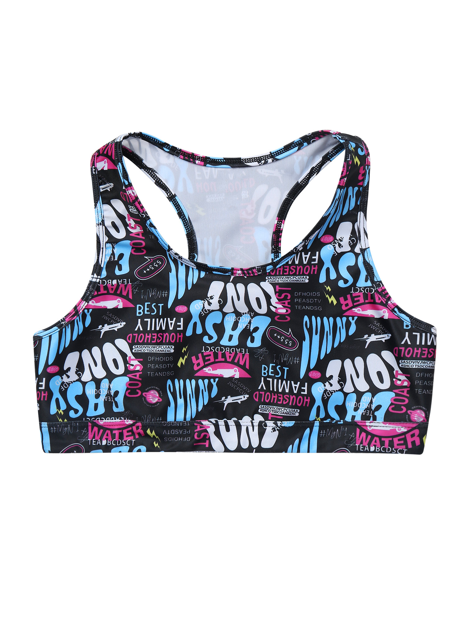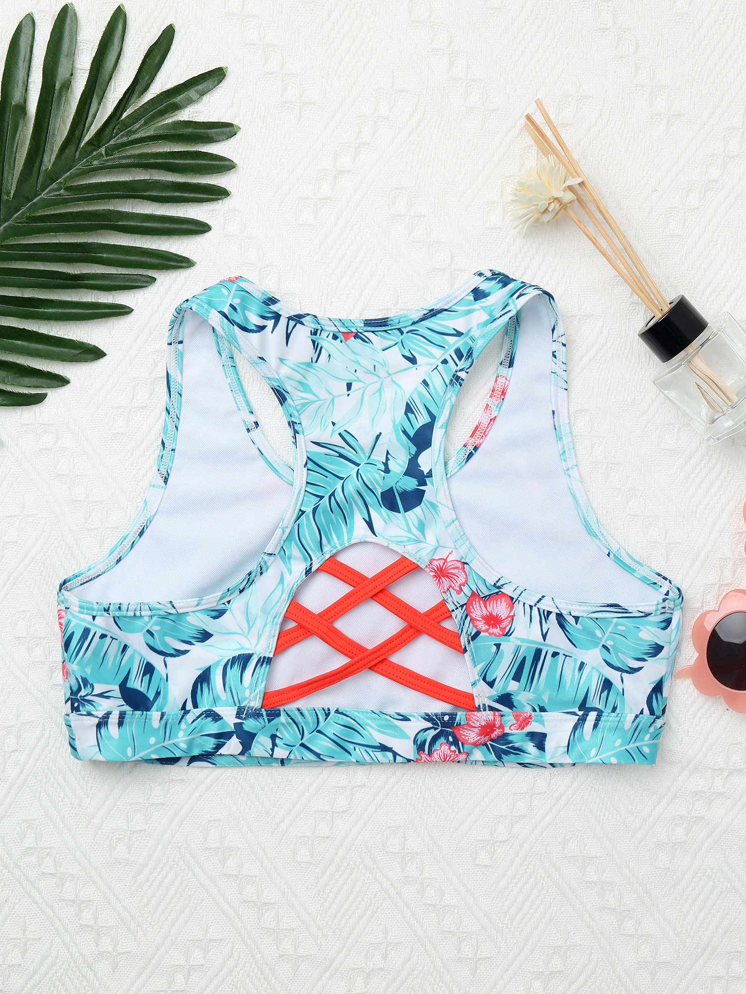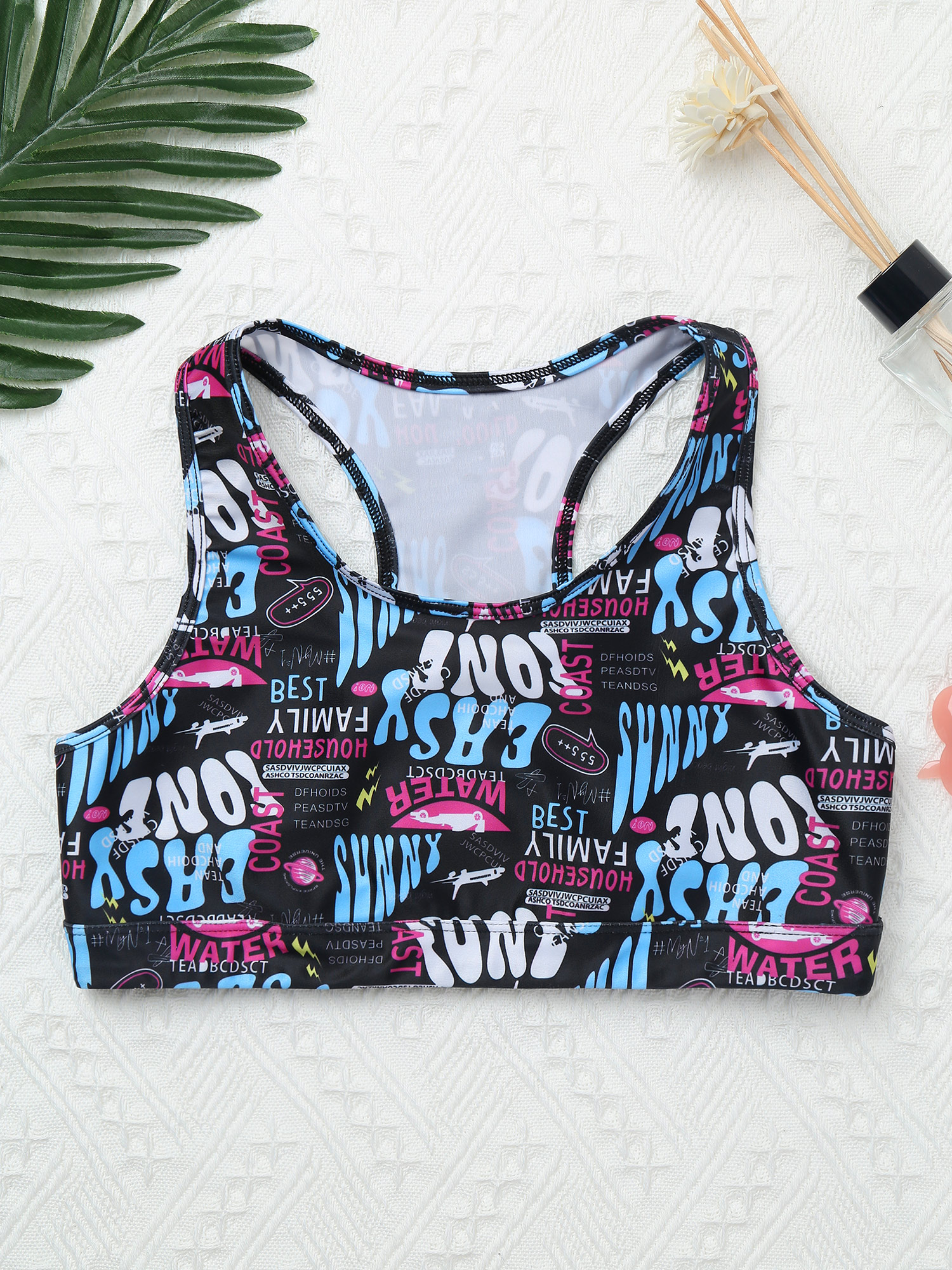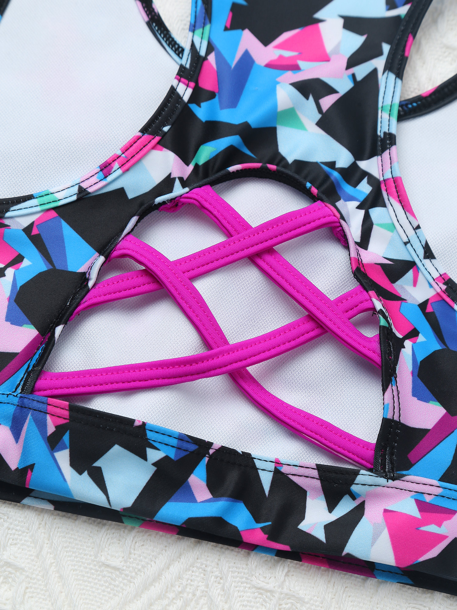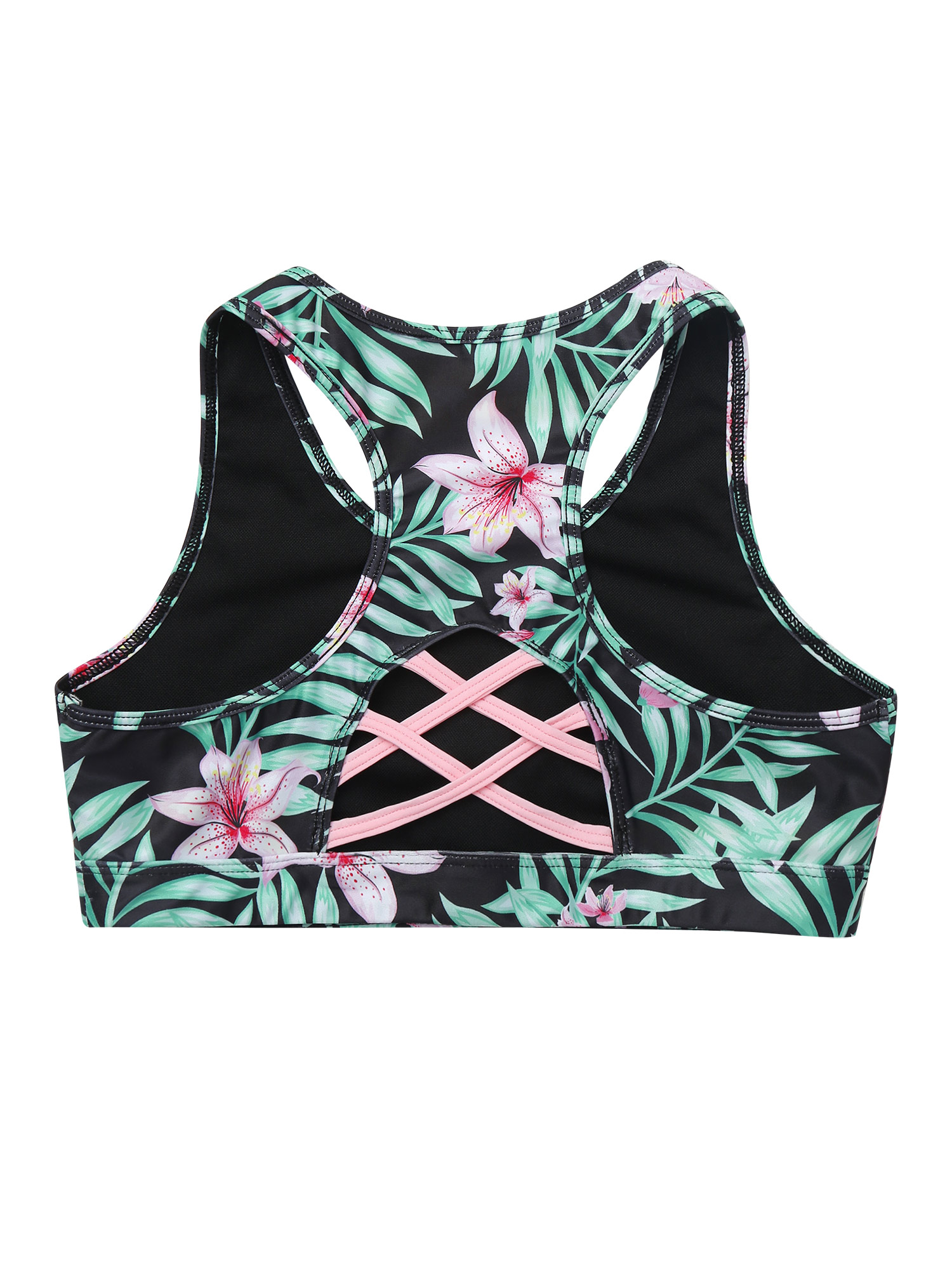 Цельнокроеный топ для девочек без рукавов с принтом; Спортивный топ-майка с перекрещивающимися полосками сзади.