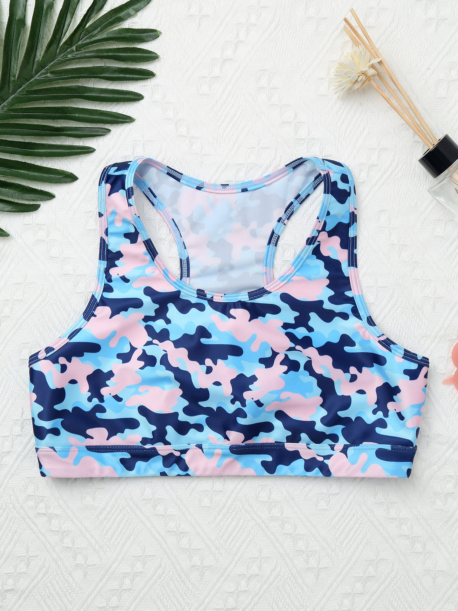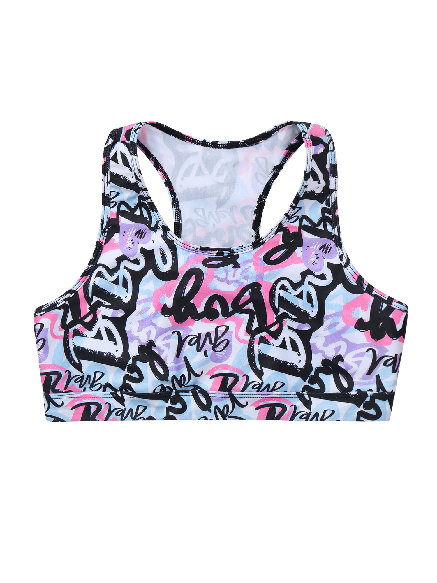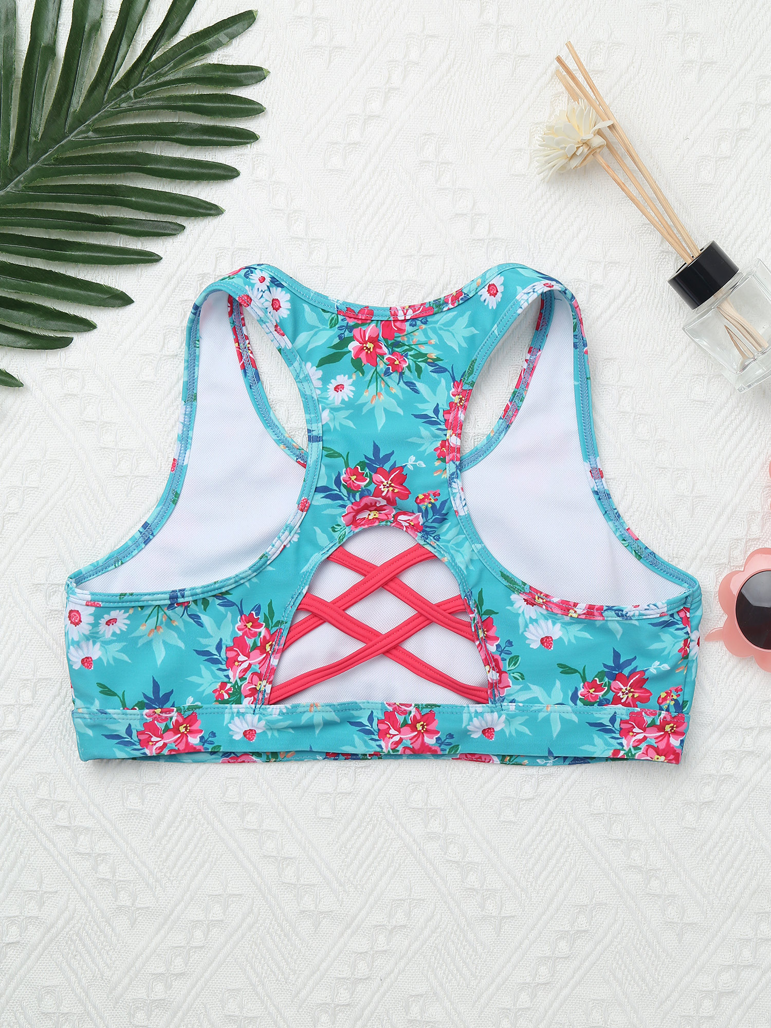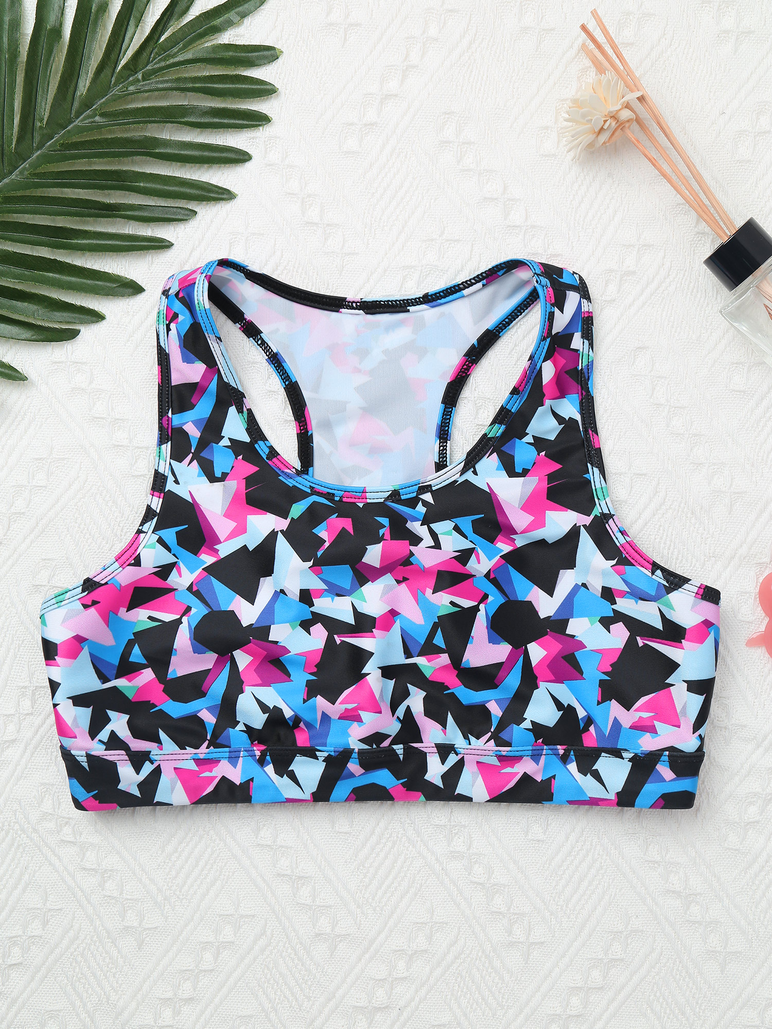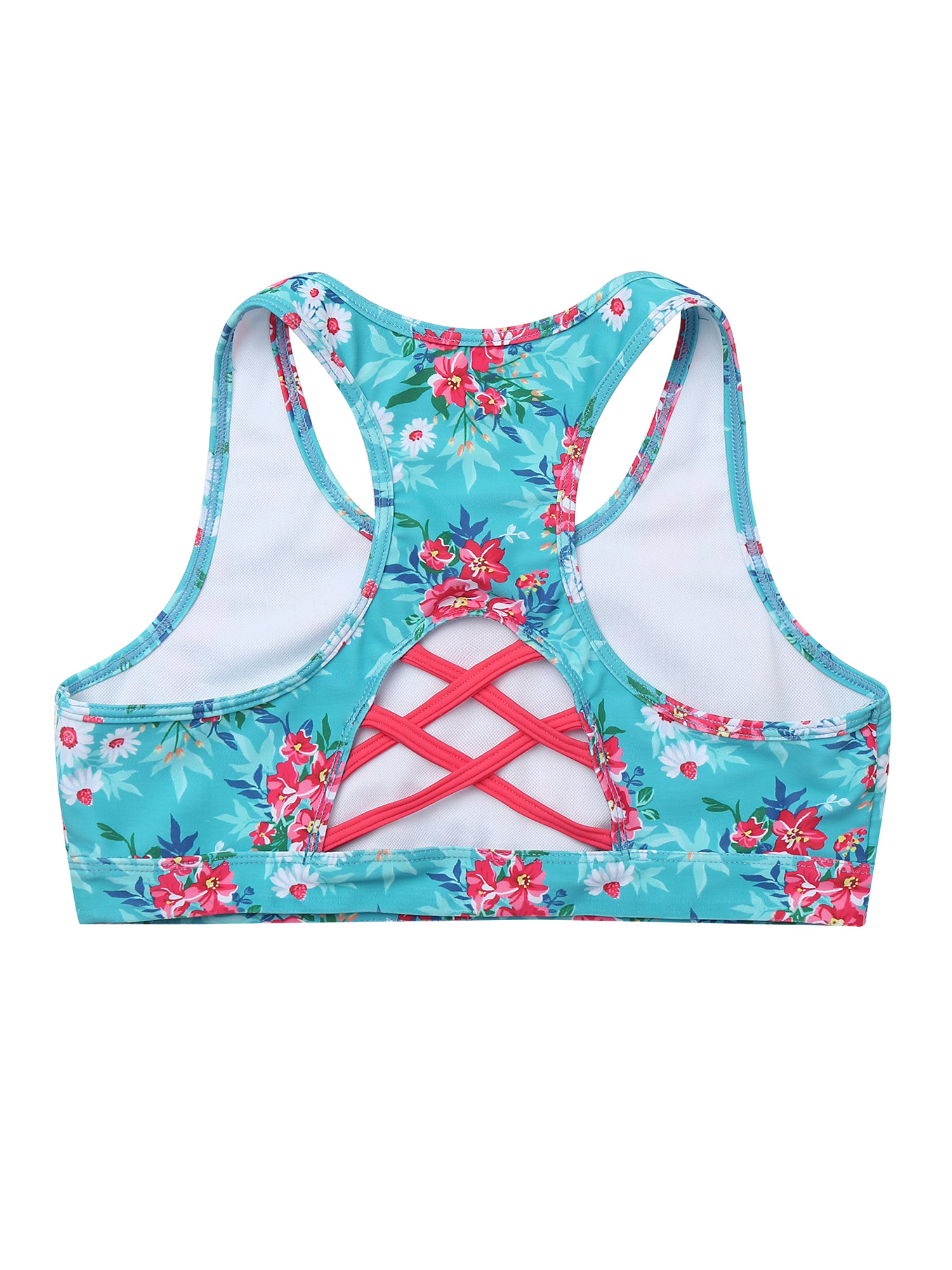 Цельнокроеный топ для девочек без рукавов с принтом; Спортивный топ-майка с перекрещивающимися полосками сзади.