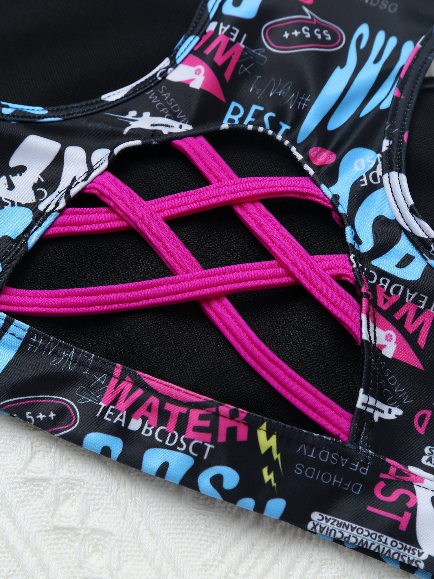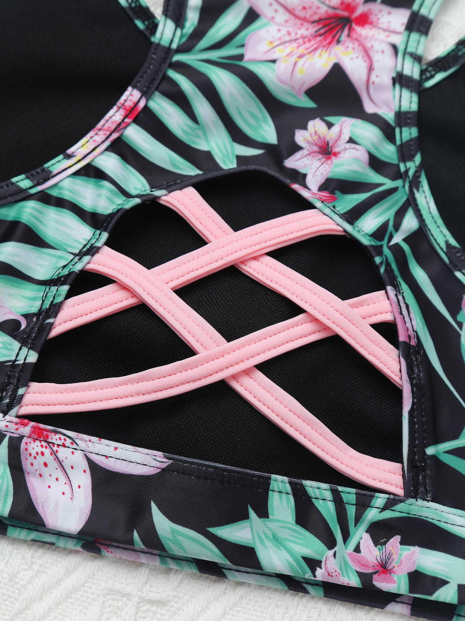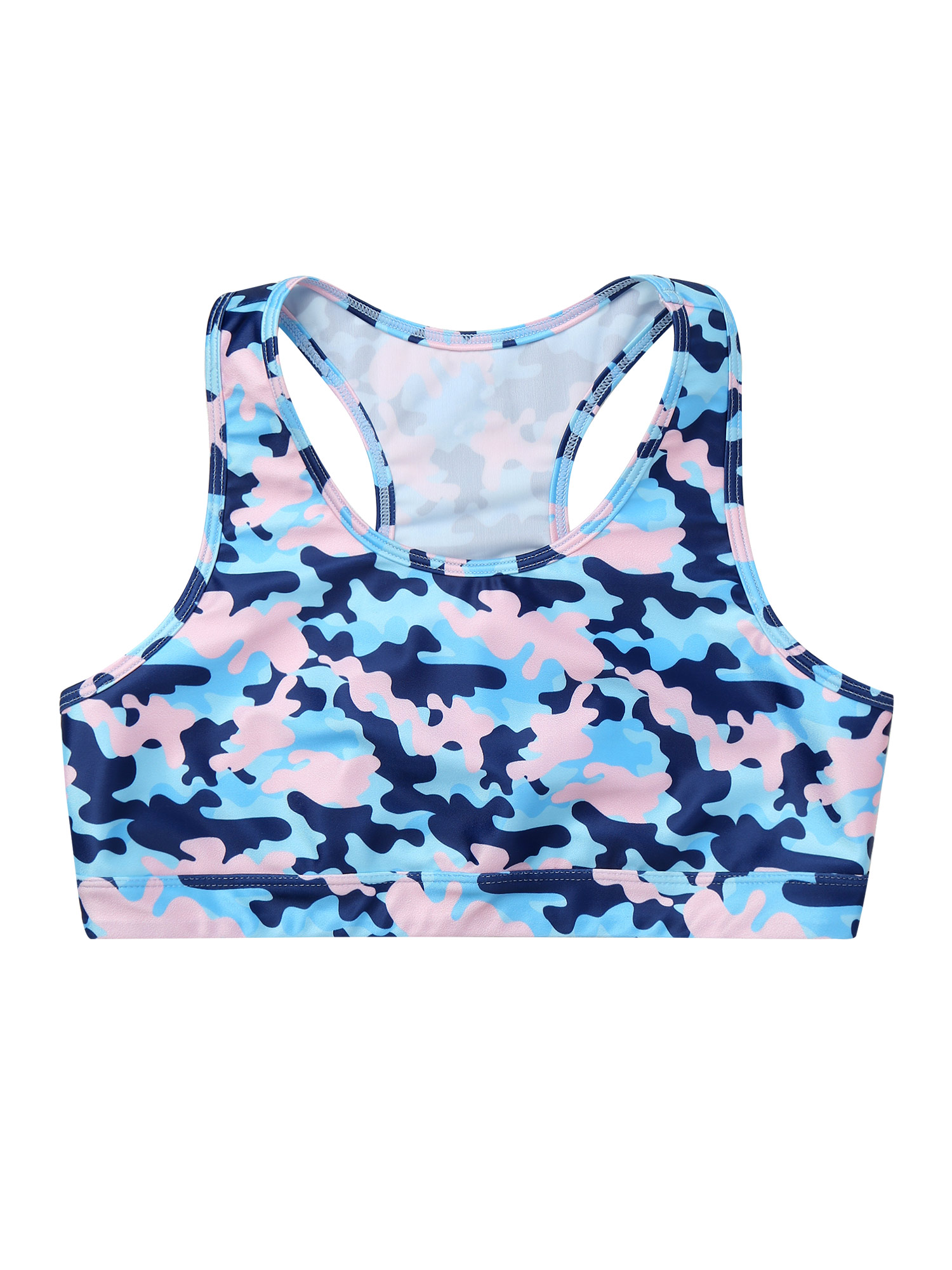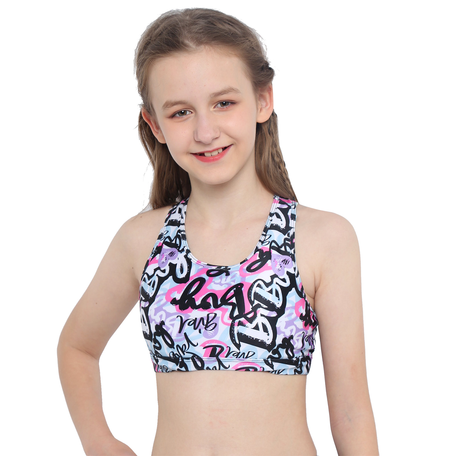 Цельнокроеный топ для девочек без рукавов с принтом; Спортивный топ-майка с перекрещивающимися полосками сзади.