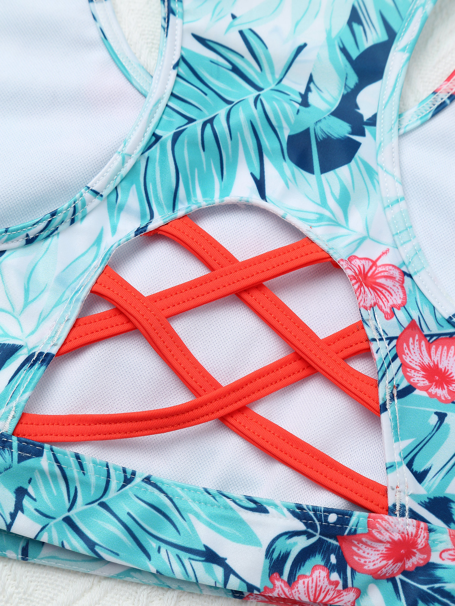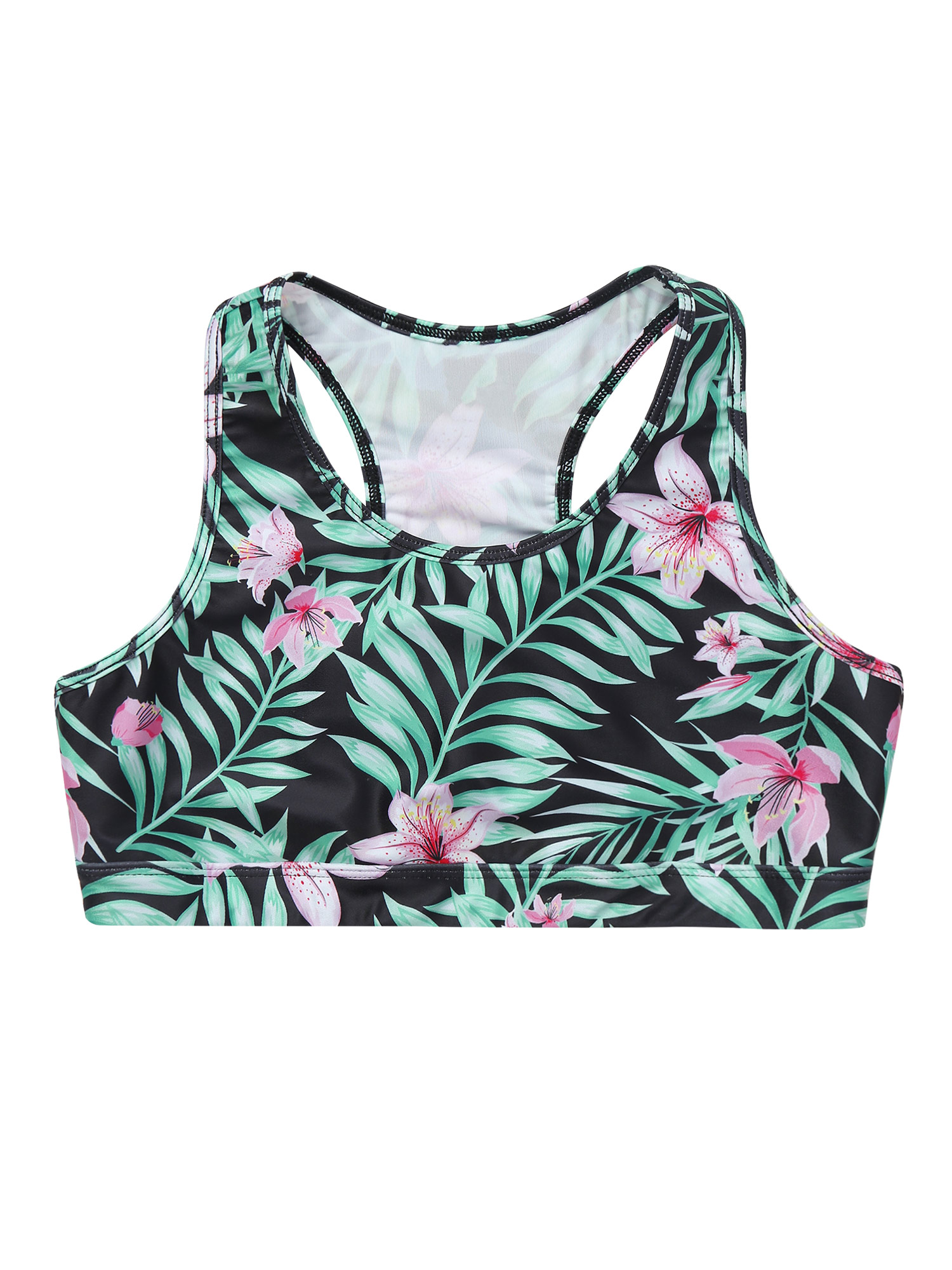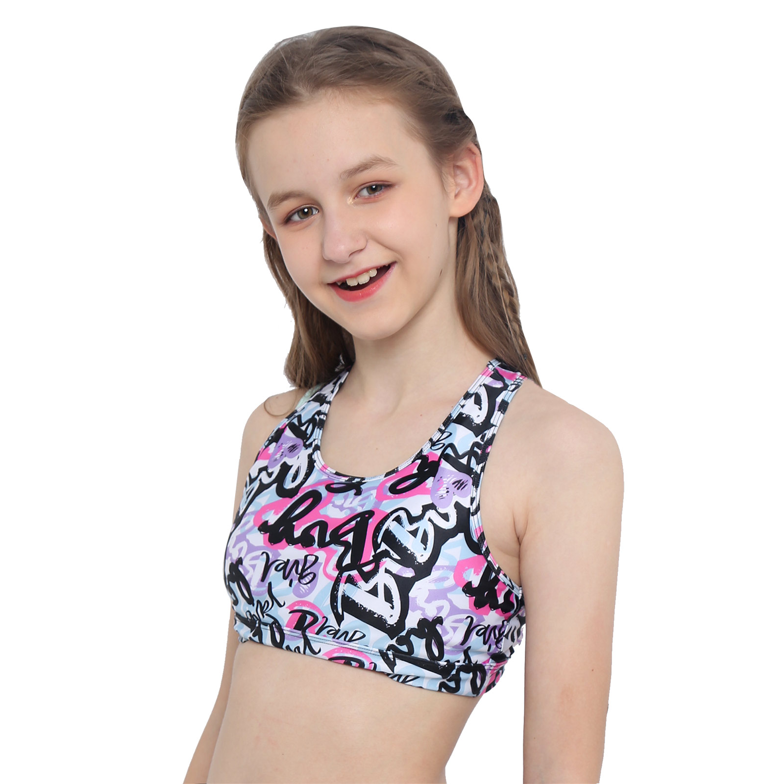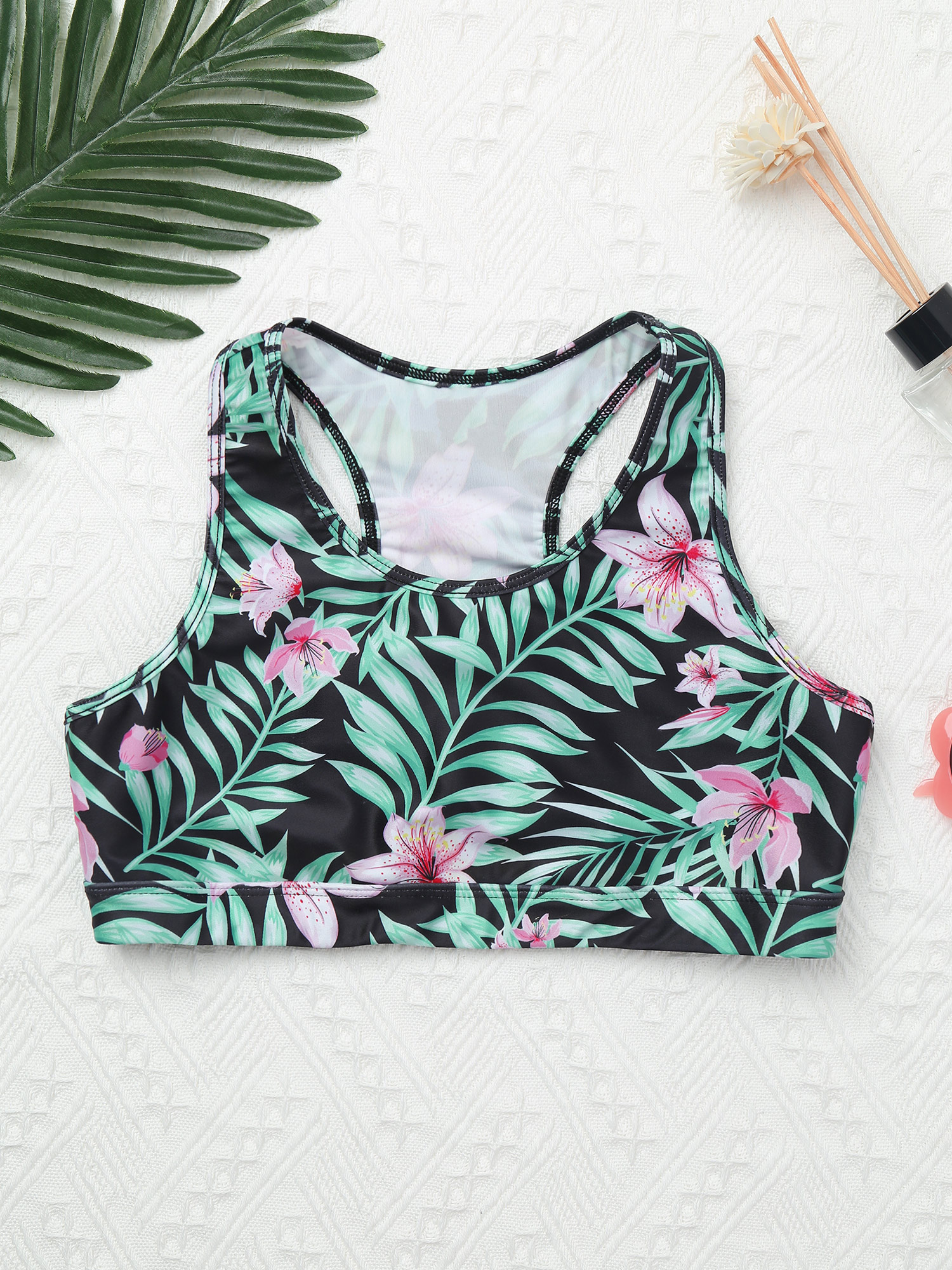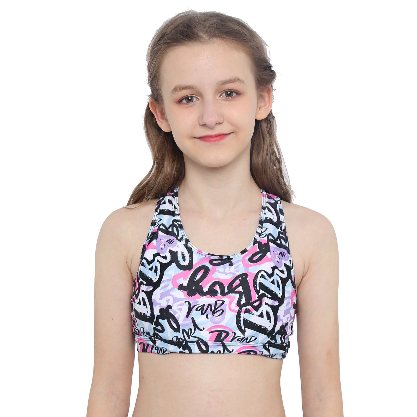 Цельнокроеный топ для девочек без рукавов с принтом; Спортивный топ-майка с перекрещивающимися полосками сзади.