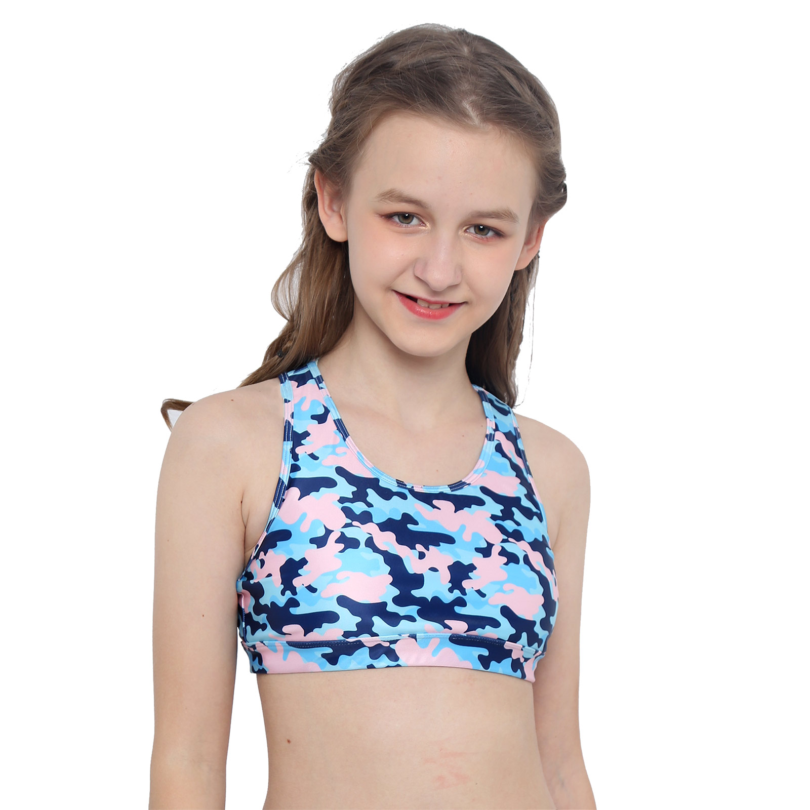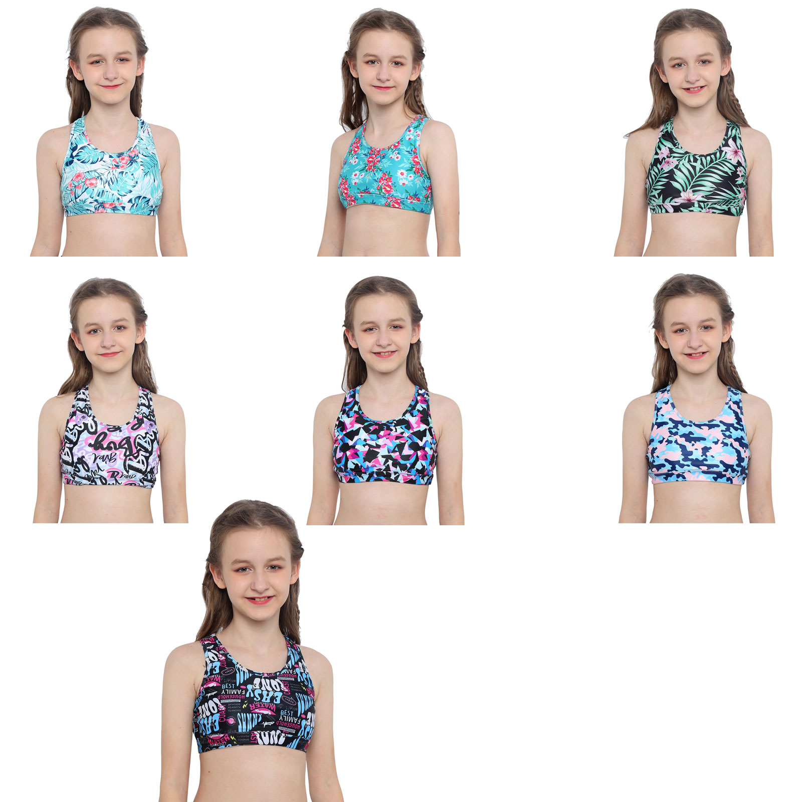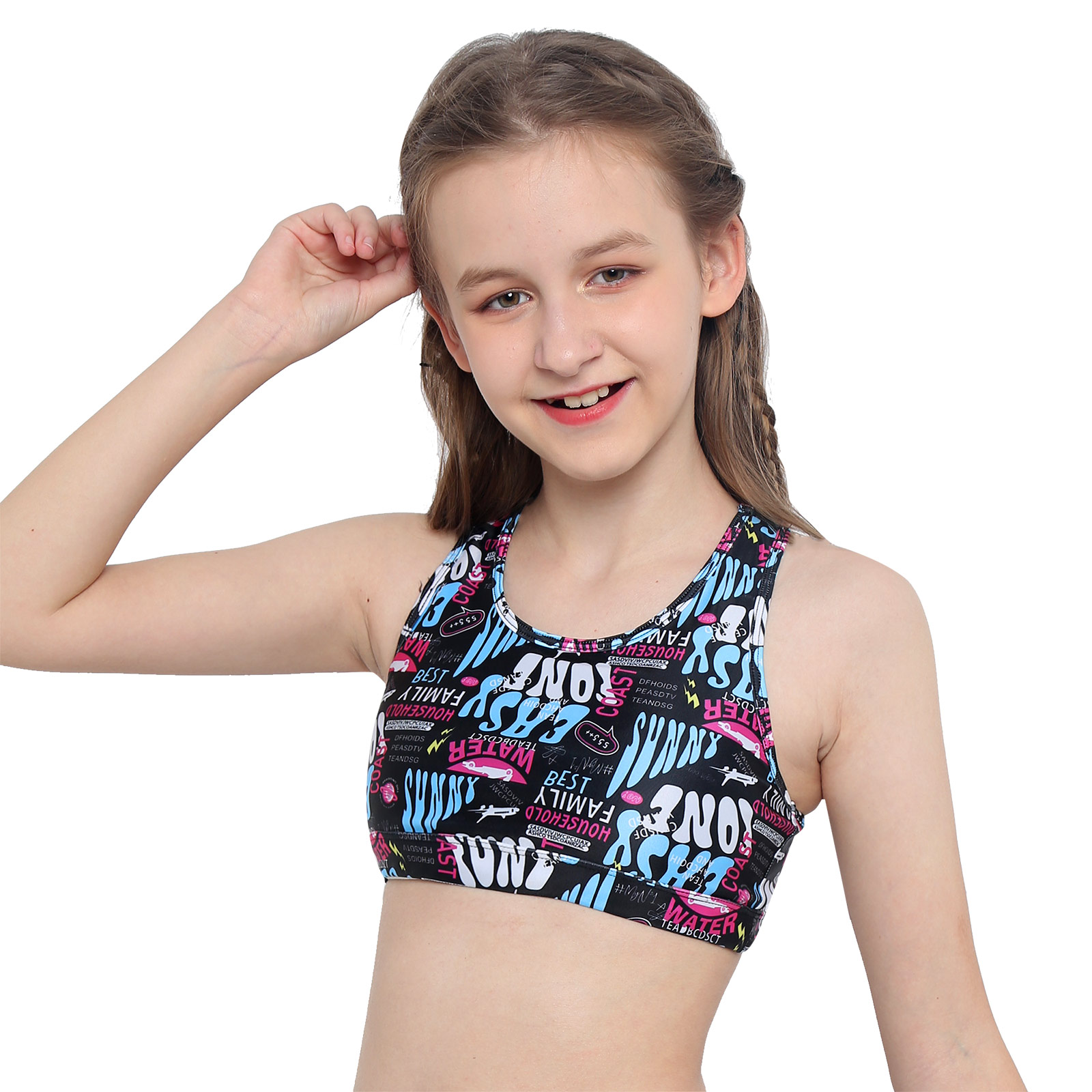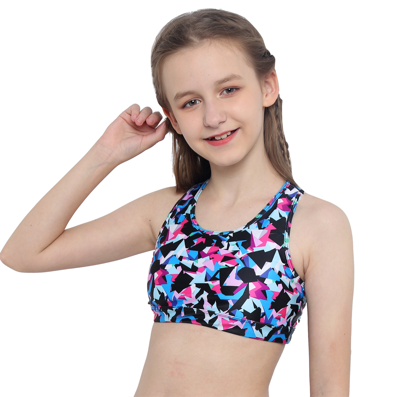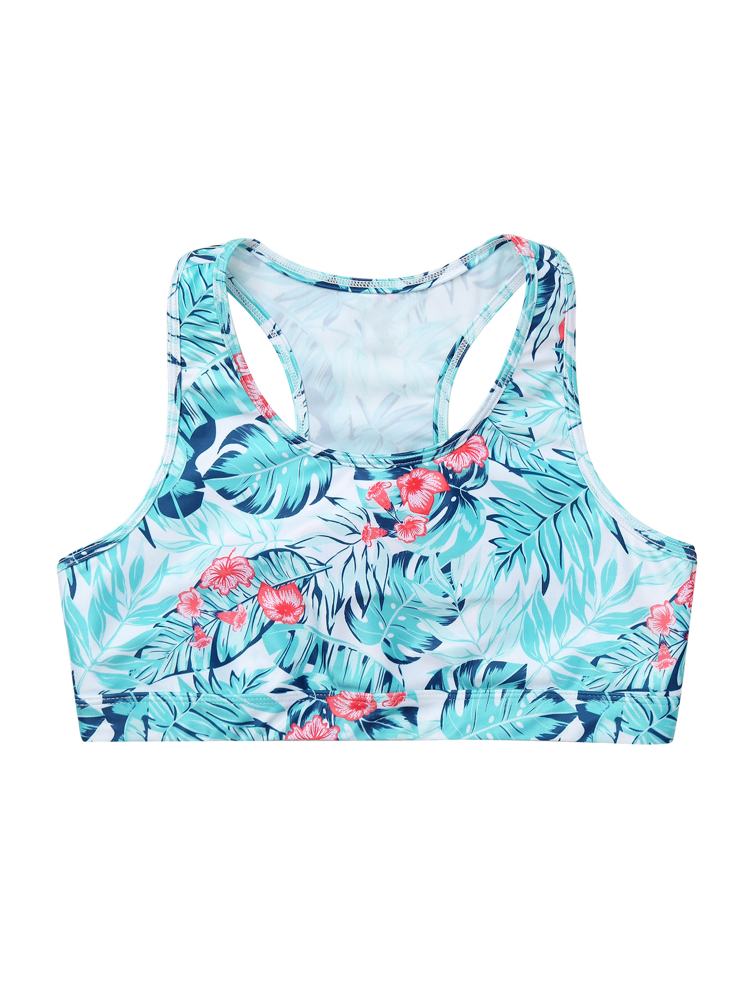 Цельнокроеный топ для девочек без рукавов с принтом; Спортивный топ-майка с перекрещивающимися полосками сзади.