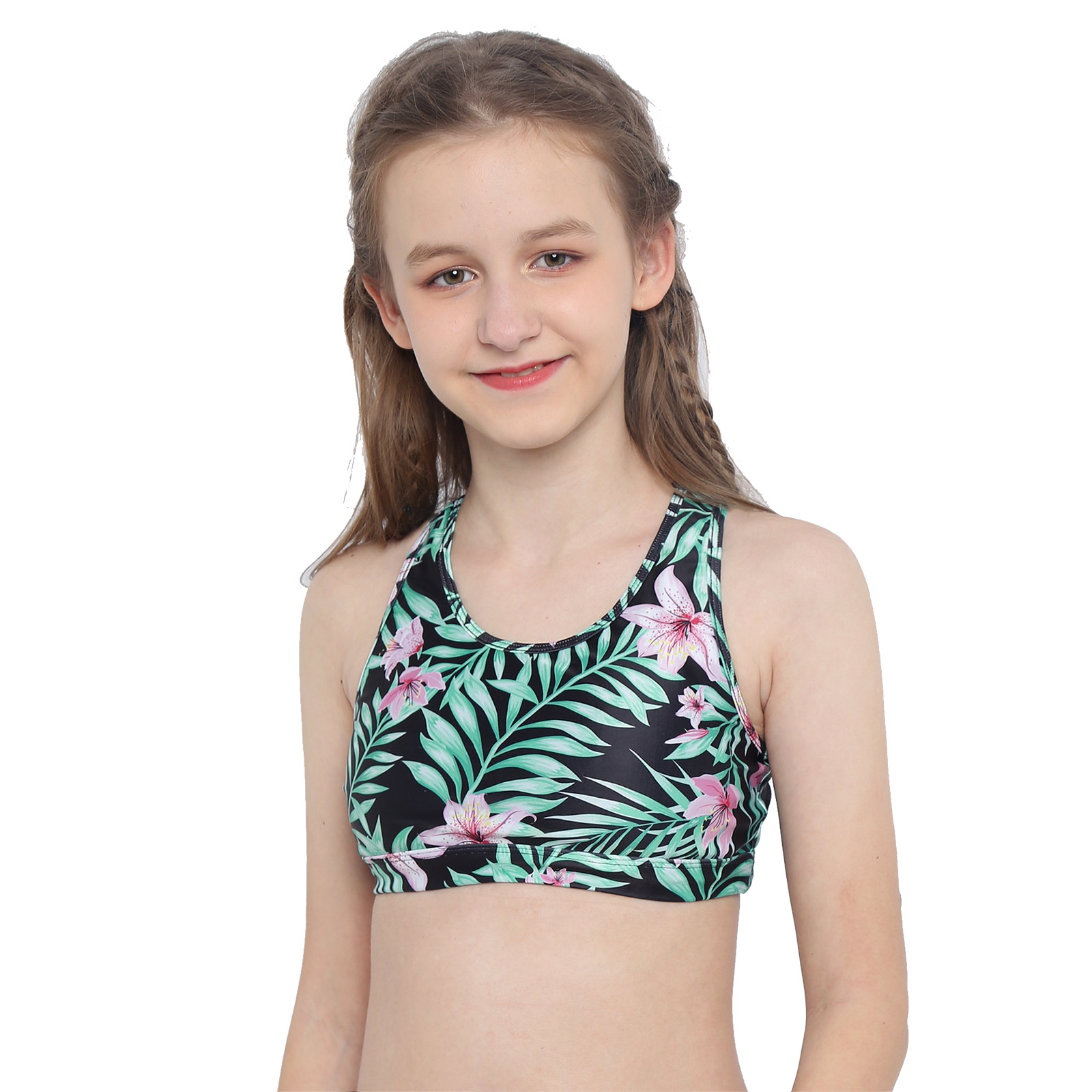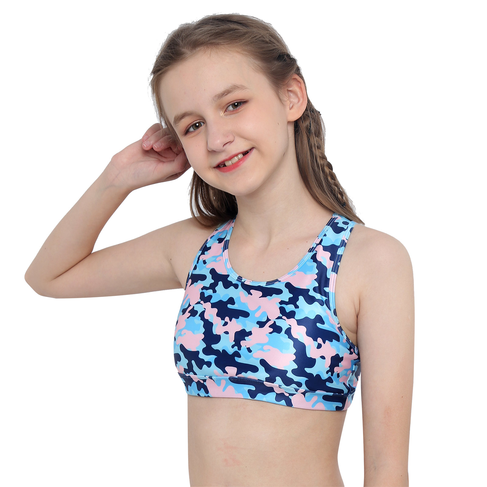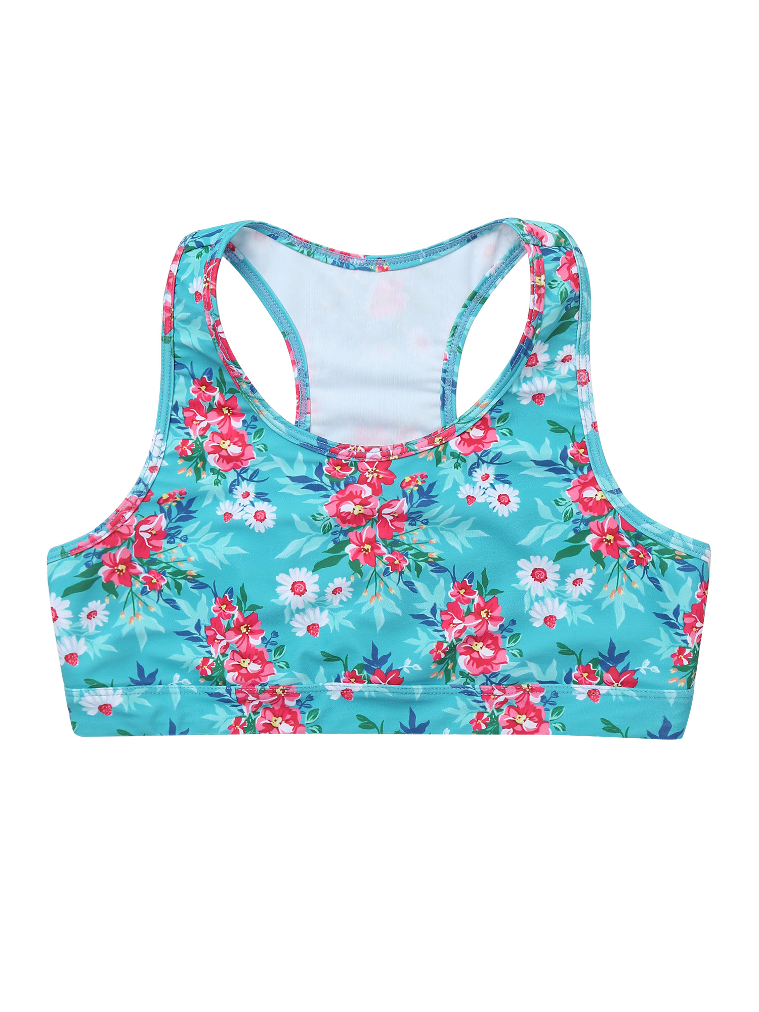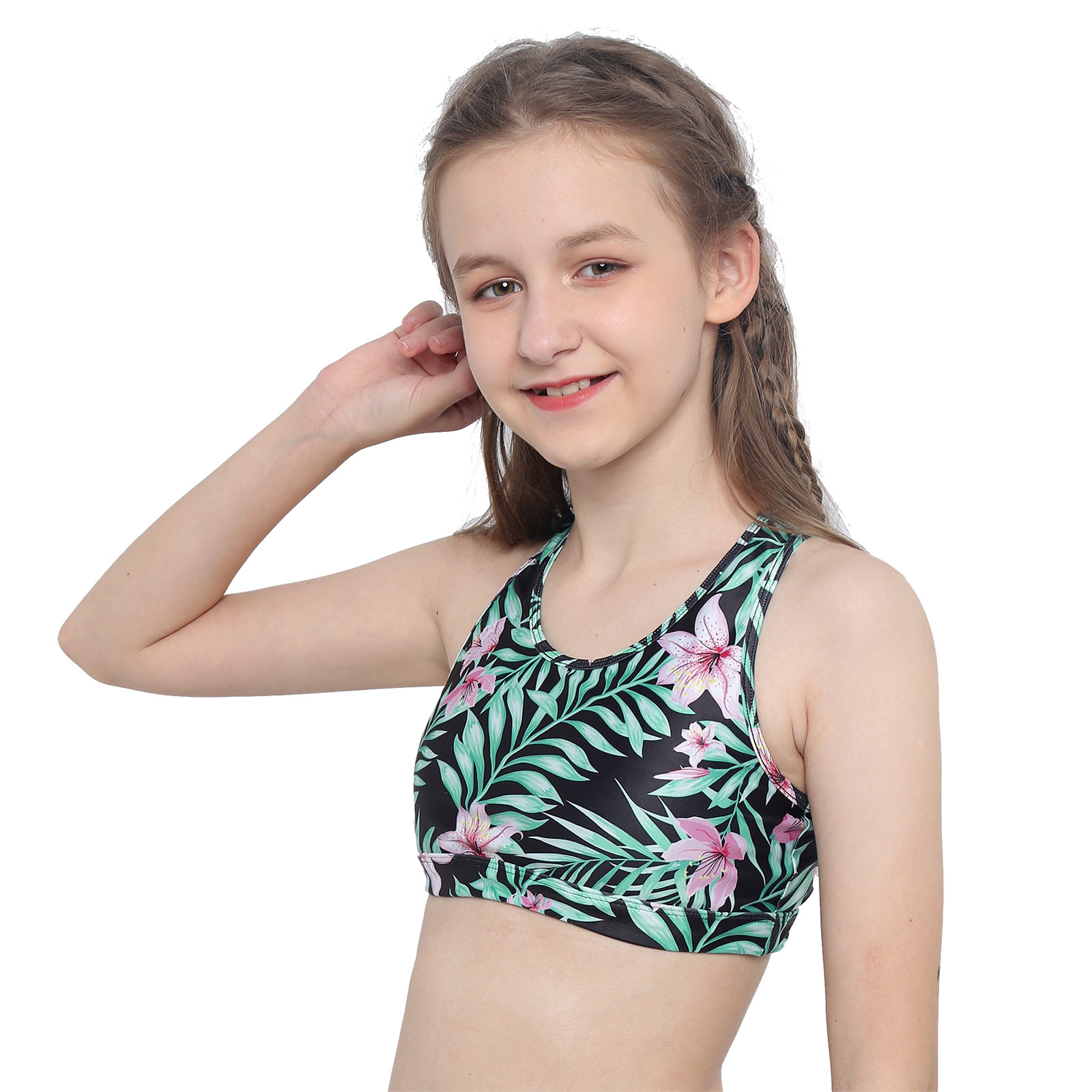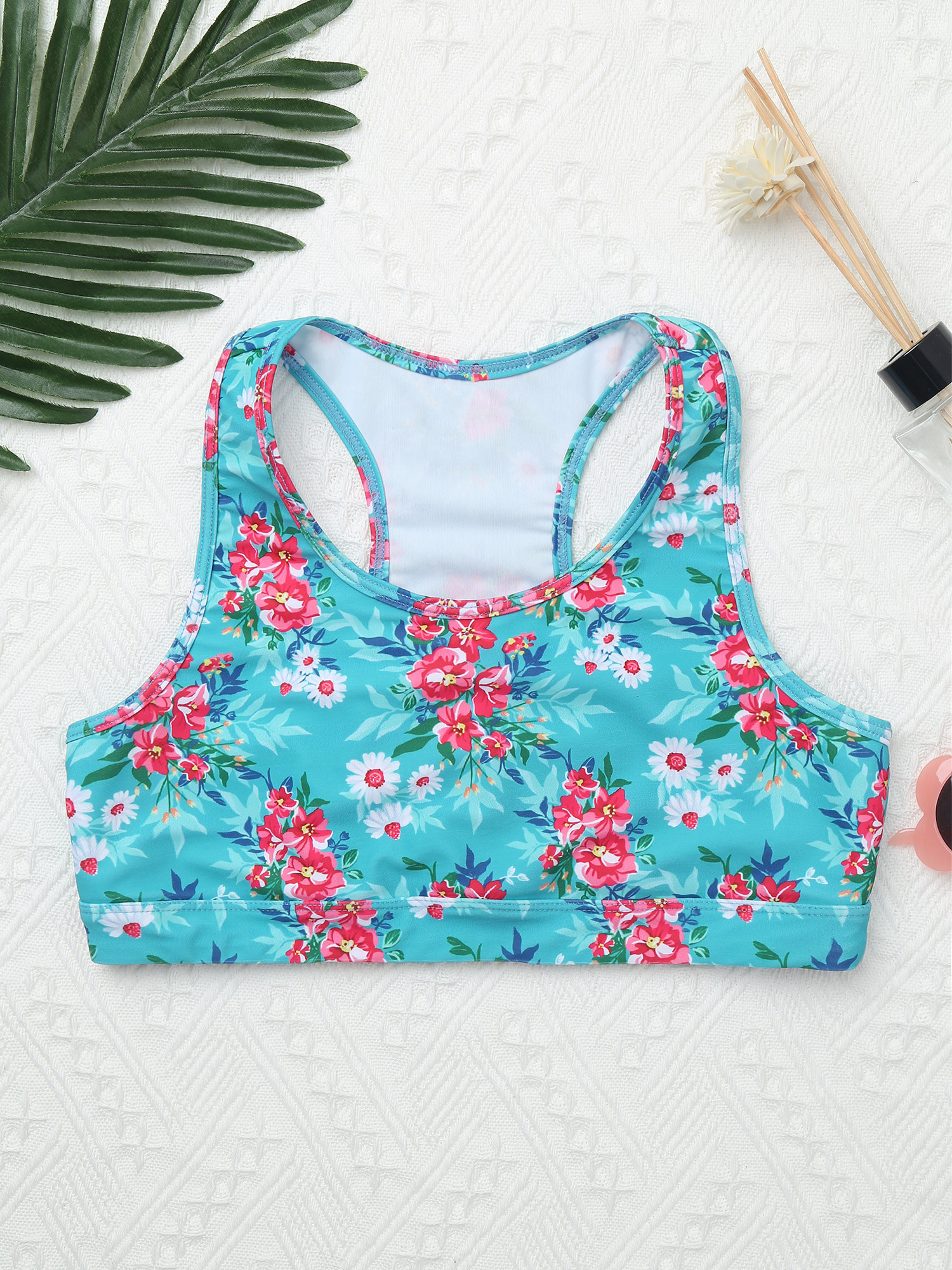 Цельнокроеный топ для девочек без рукавов с принтом; Спортивный топ-майка с перекрещивающимися полосками сзади.
