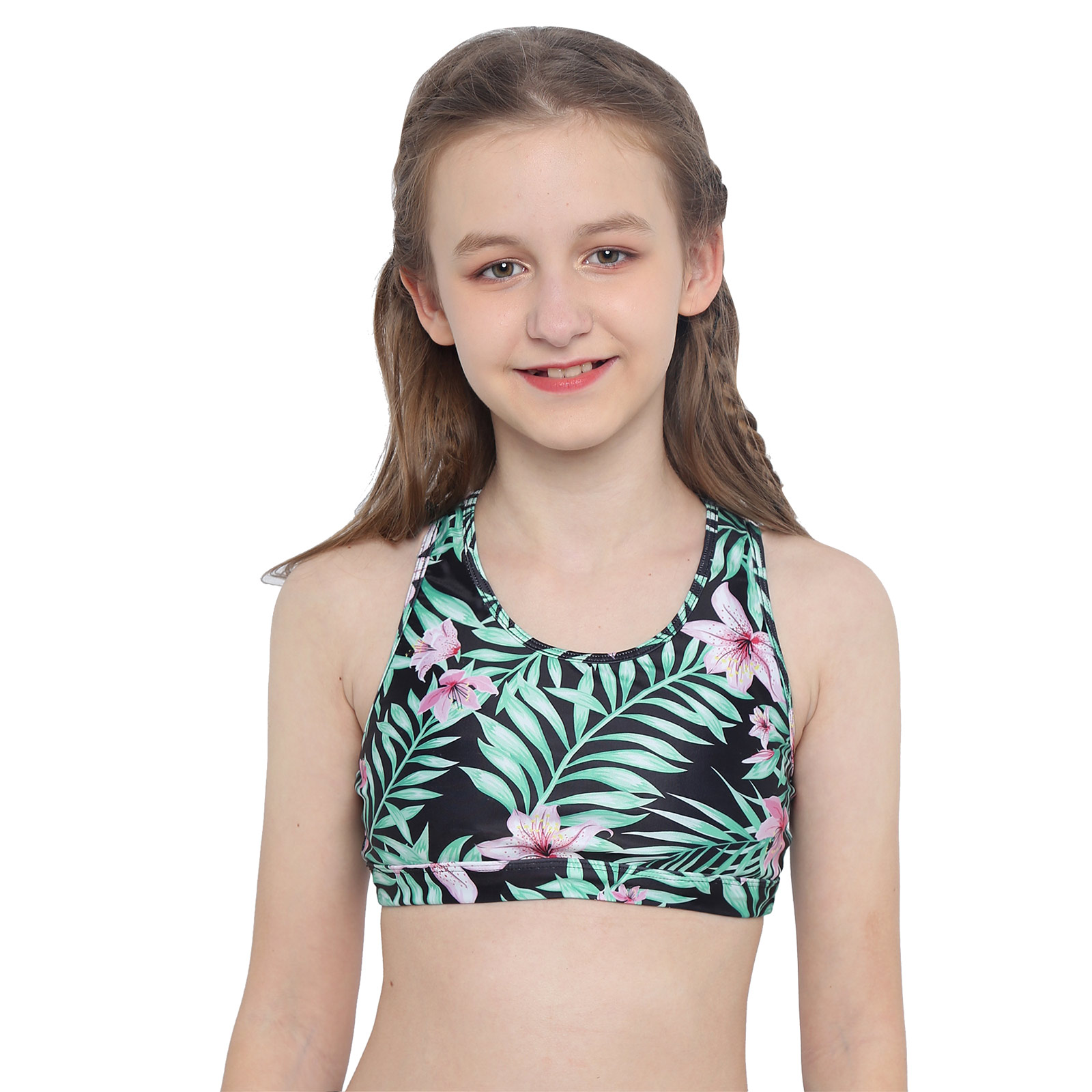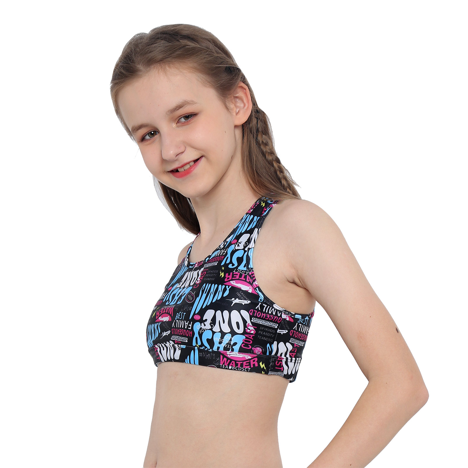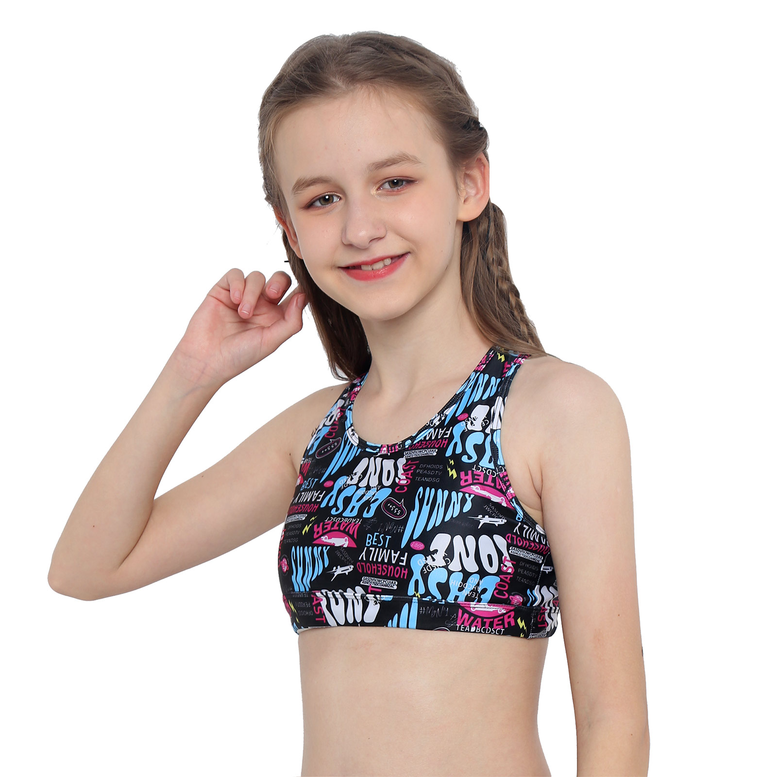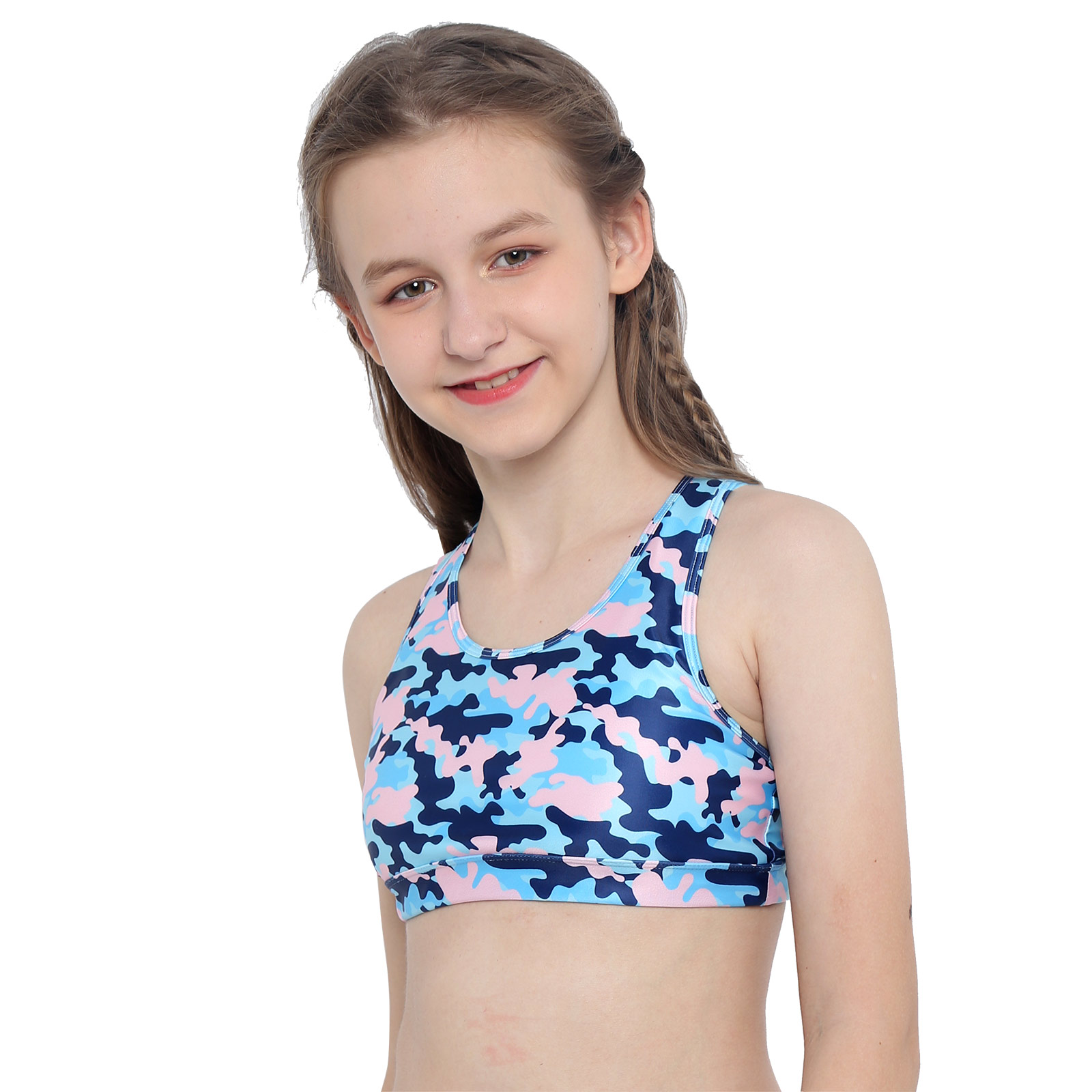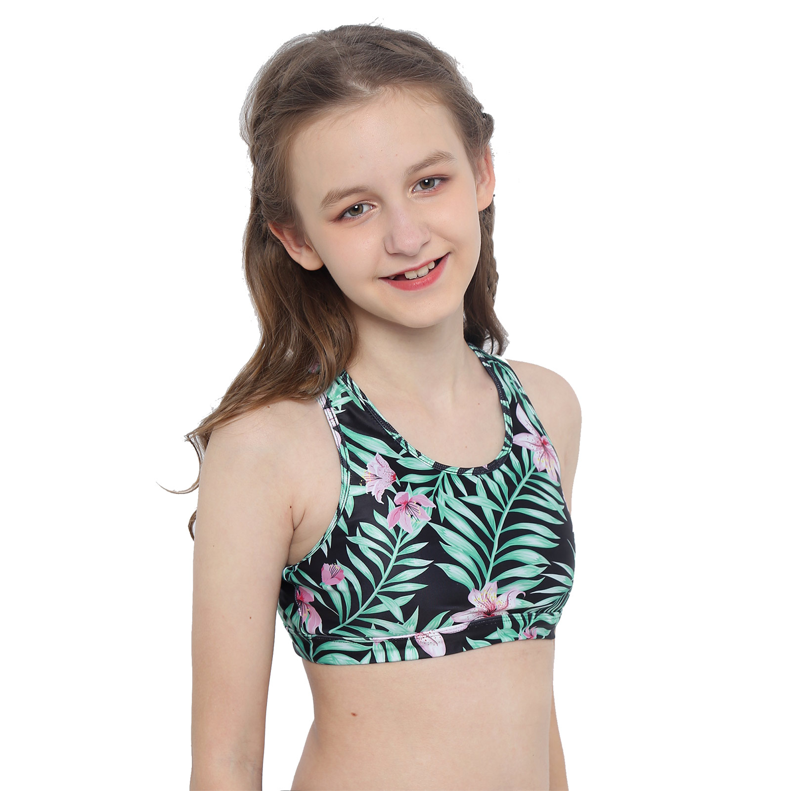 Цельнокроеный топ для девочек без рукавов с принтом; Спортивный топ-майка с перекрещивающимися полосками сзади.