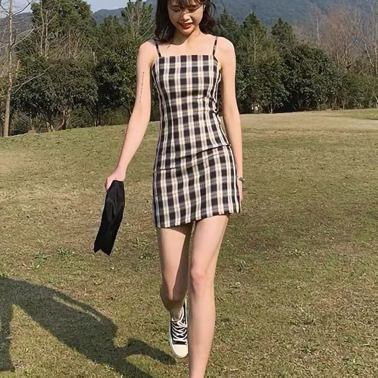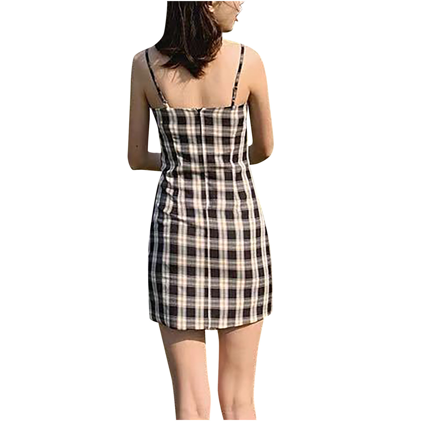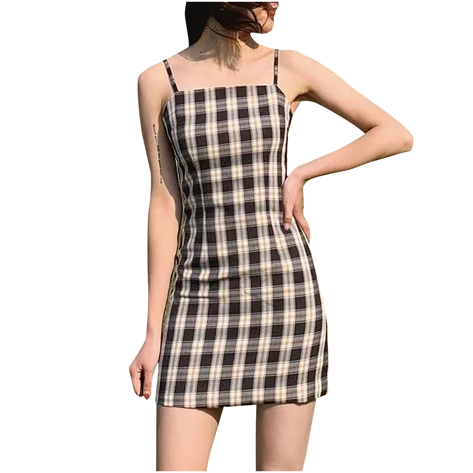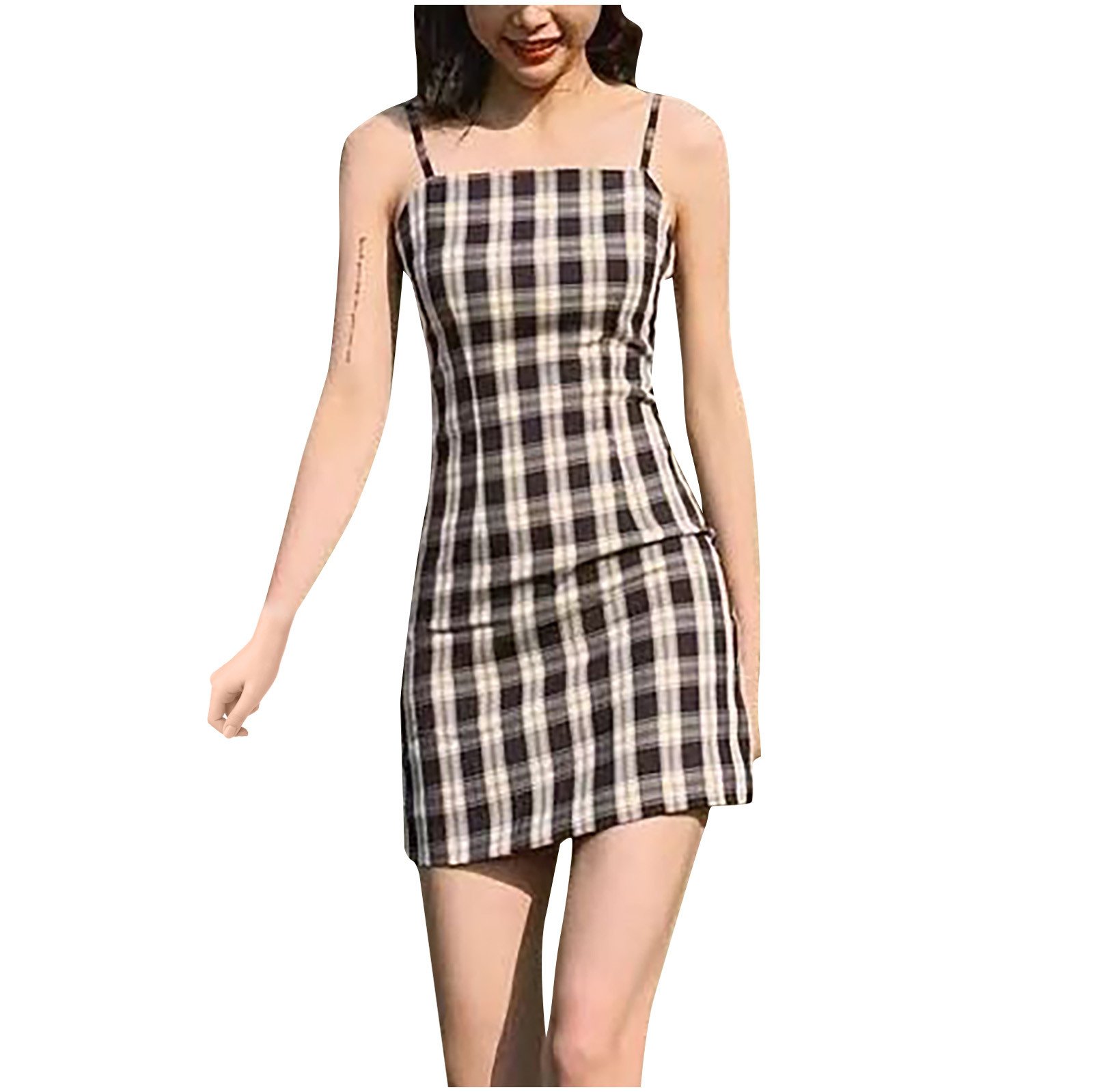 Женское летнее платье, черное клетчатое платье с принтом, без рукавов, лифчик выше колена, женское Короткое облегающее платье, vestido de mujer M *