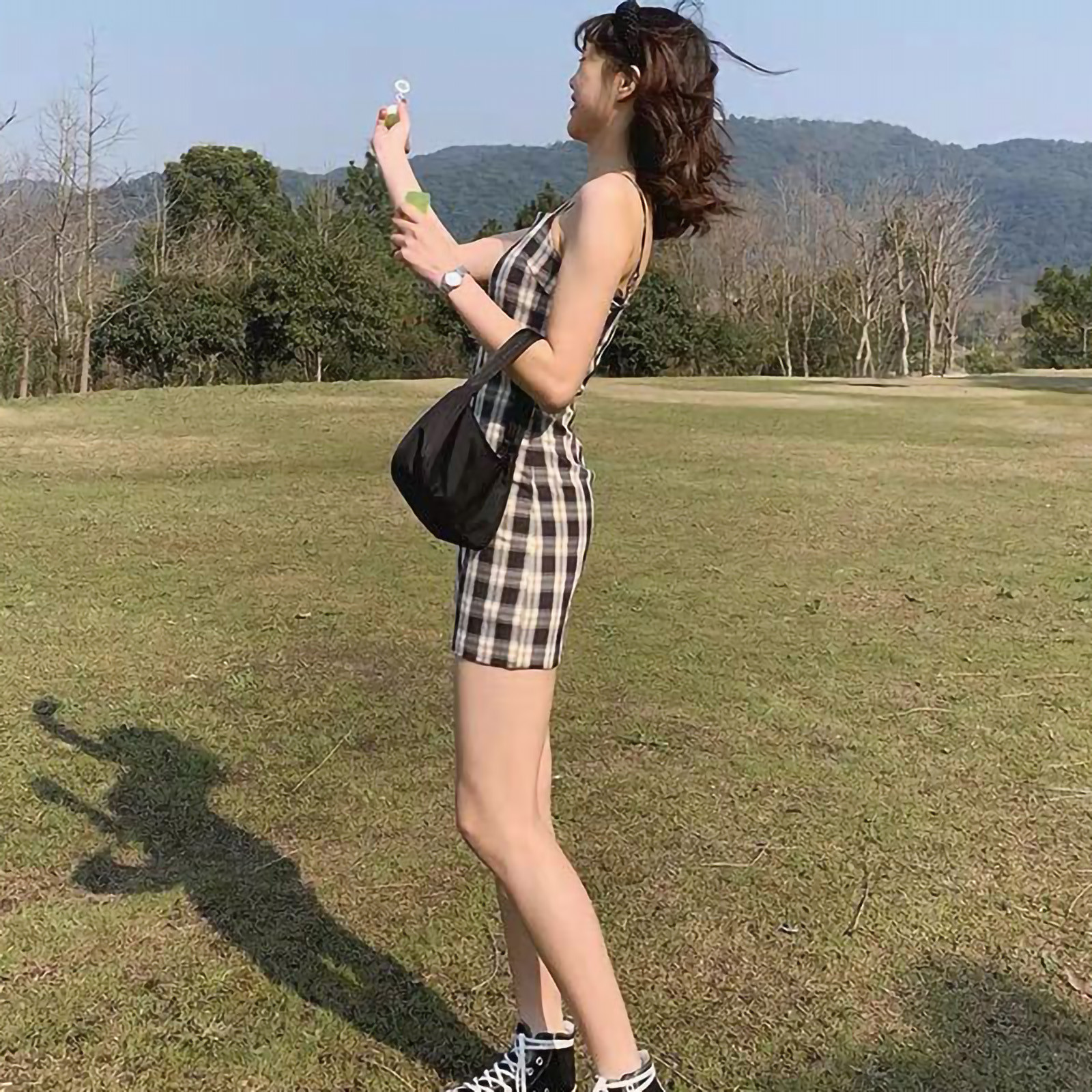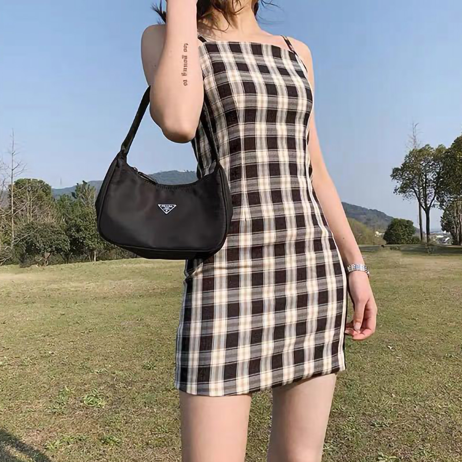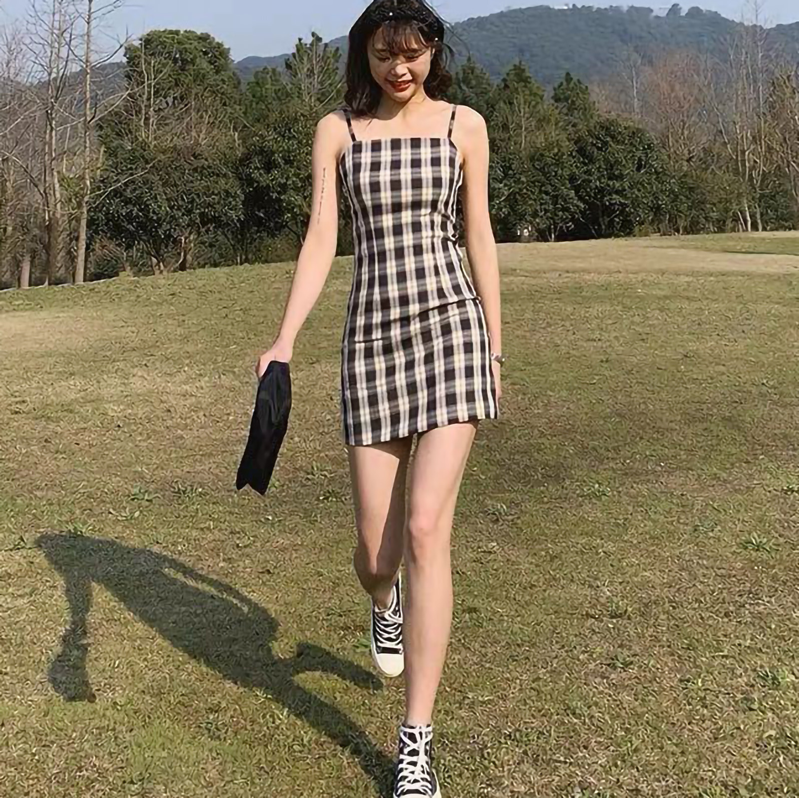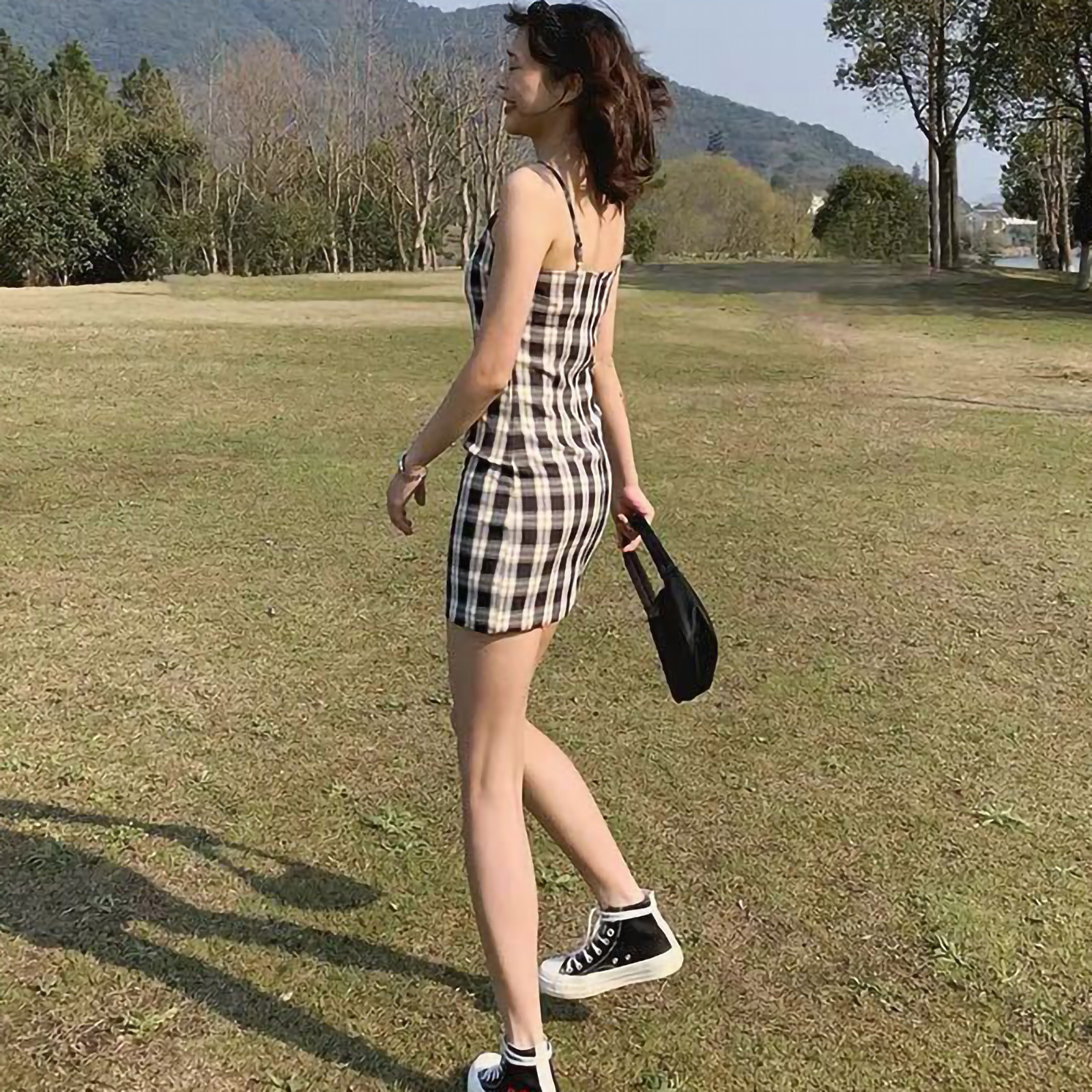 Женское летнее платье, черное клетчатое платье с принтом, без рукавов, лифчик выше колена, женское Короткое облегающее платье, vestido de mujer M *