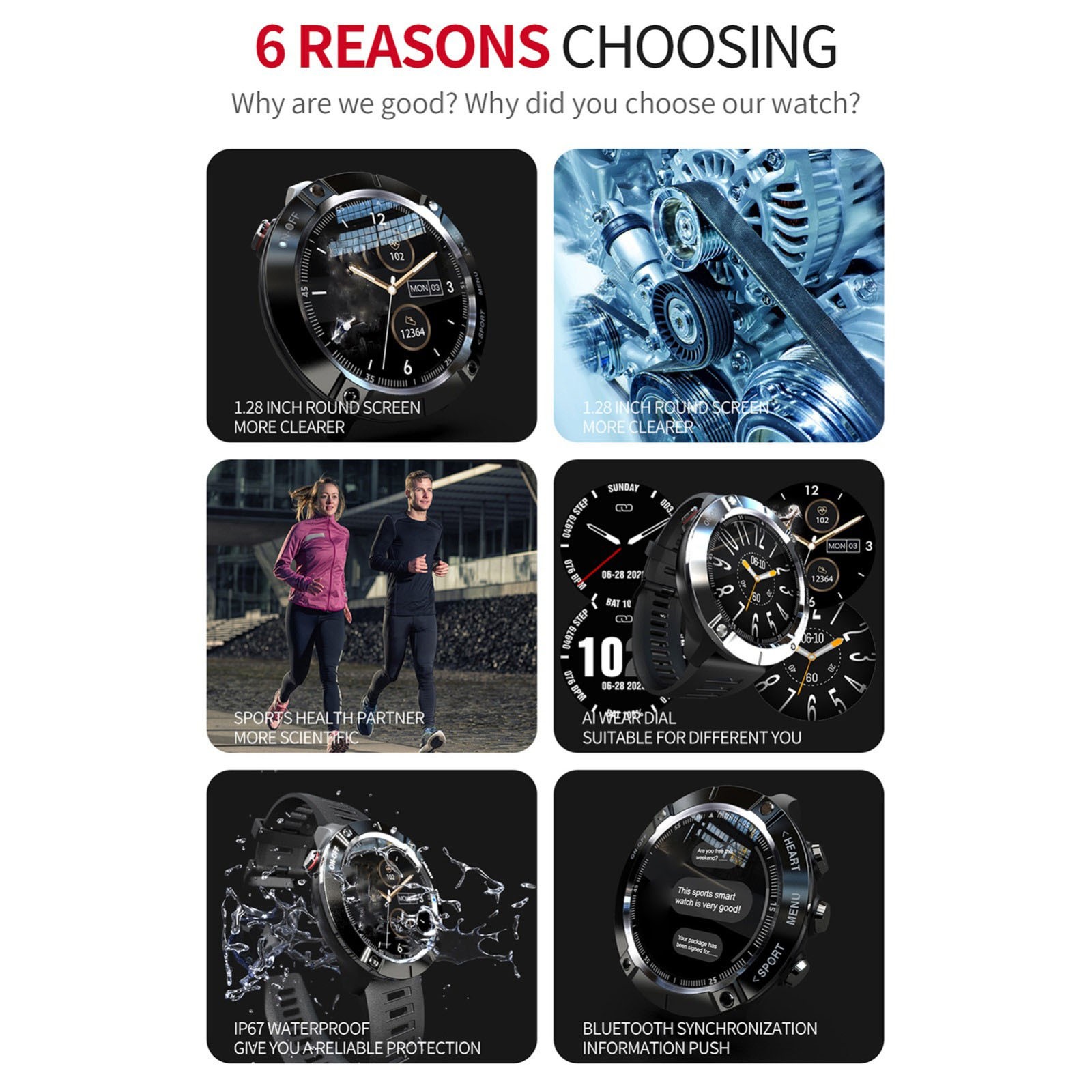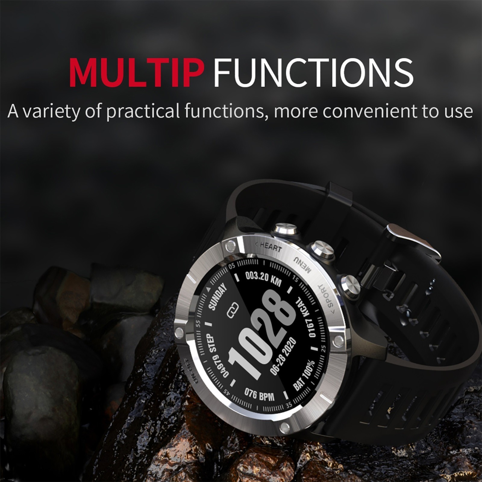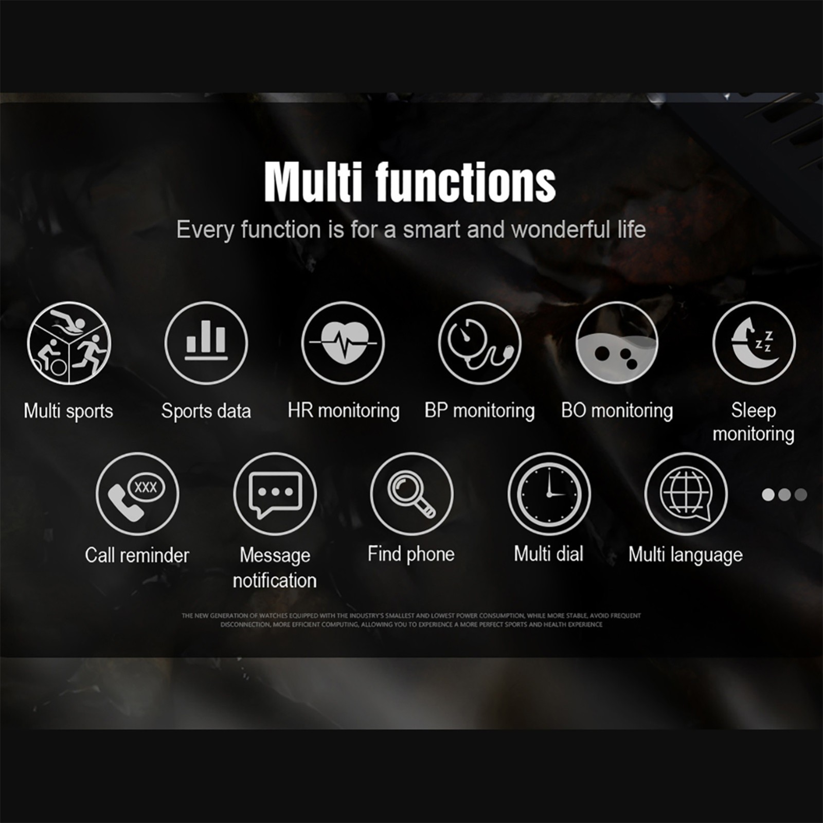 Поддержка выбора языка вручную на часах, шагомера, сна, пульса, кровяного давления, кислорода в крови, напоминания о звонках, мульти-спортивный режим, Поиск телефона, выбор циферблата, секундомер, управление музыкой, напоминание о сидячем положении, напоминание о напитке, будильник, поднимите экран руки, замена циферблата, удаленная камера, Уведомления о телефонных СМС; WeChat, QQ, Twittre, Facebook, Whatsapp, Skype и другие вечерние напоминания об информации;