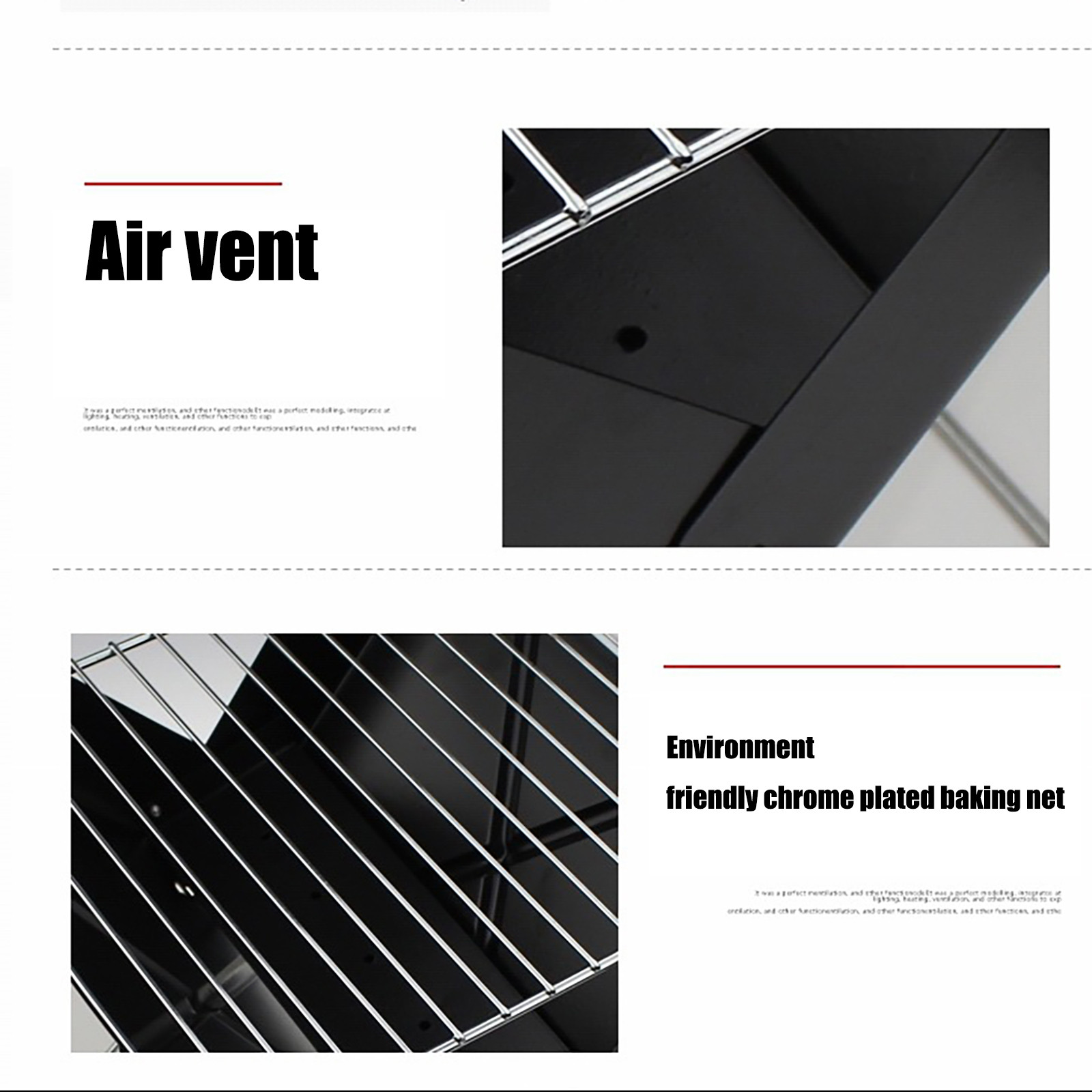 Духовки маломерит на размер, легкий вес, только 1,2 кг, легкий и компактный, легко и удобно носить с собой. Легко разбирать и собирать, это занимает всего одну или две минуты, чтобы открыть, вы можете легко насладиться весельем барбекю. После разворачивания большая зона для барбекю используется для 2-4 человек. Поверхность решетки покрыта никелем, не загрязняет тяжелые металлы и может быть использована с уверенностью; Поверхность тела гриля является электролитической обработкой, которая красива и гладкая.Продукт отвечает потребностям современной жизни для отдыха на открытом воздухе и концепции зеленой и здоровой жизни из-за его хорошей адаптируемости к внешним потребностям.