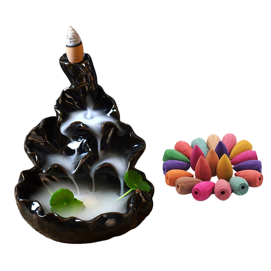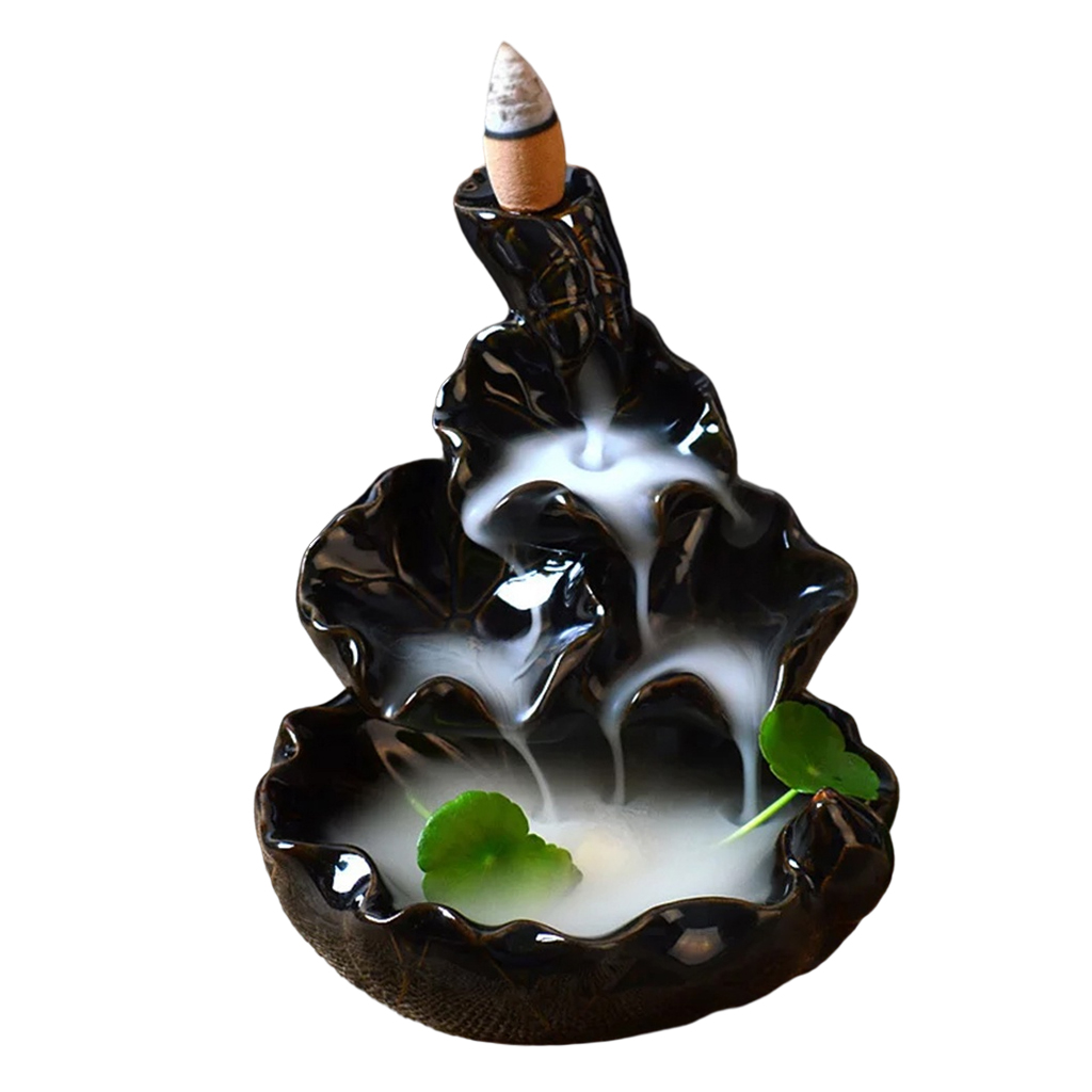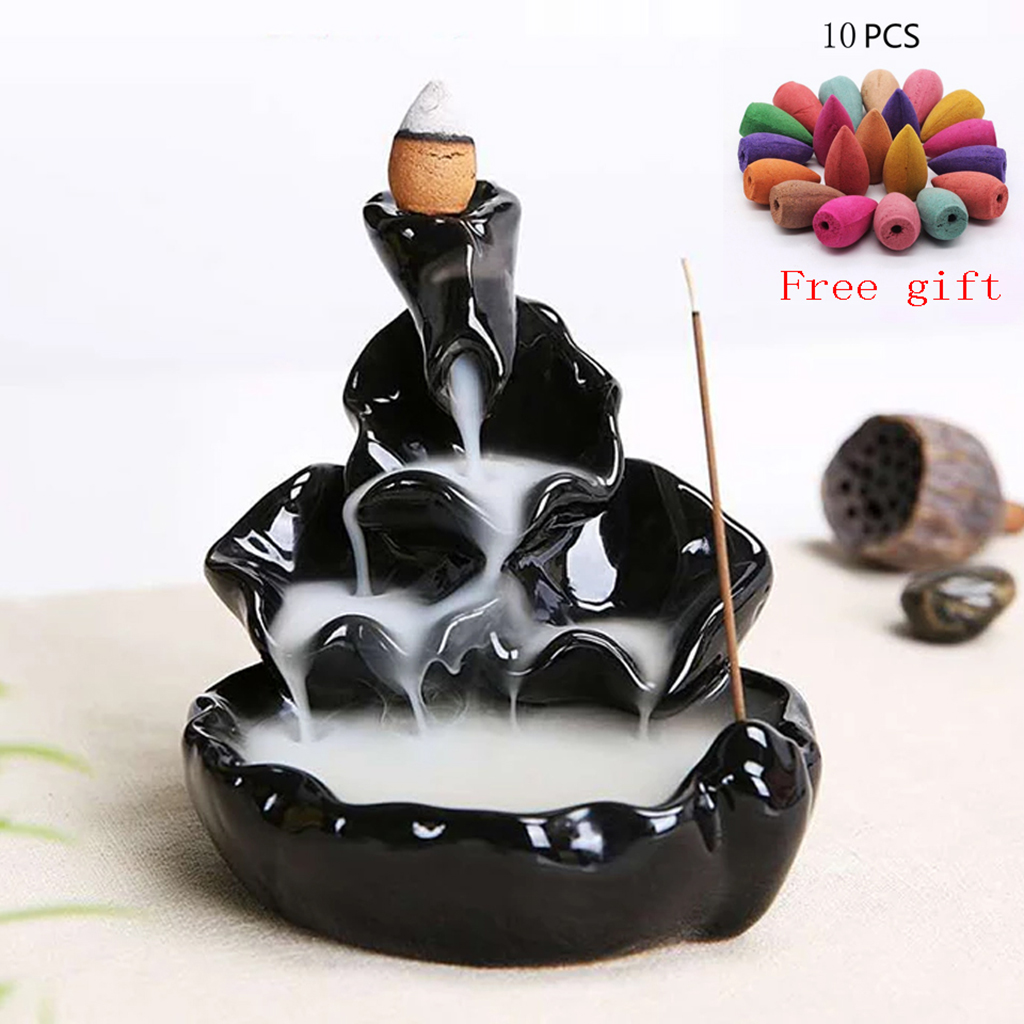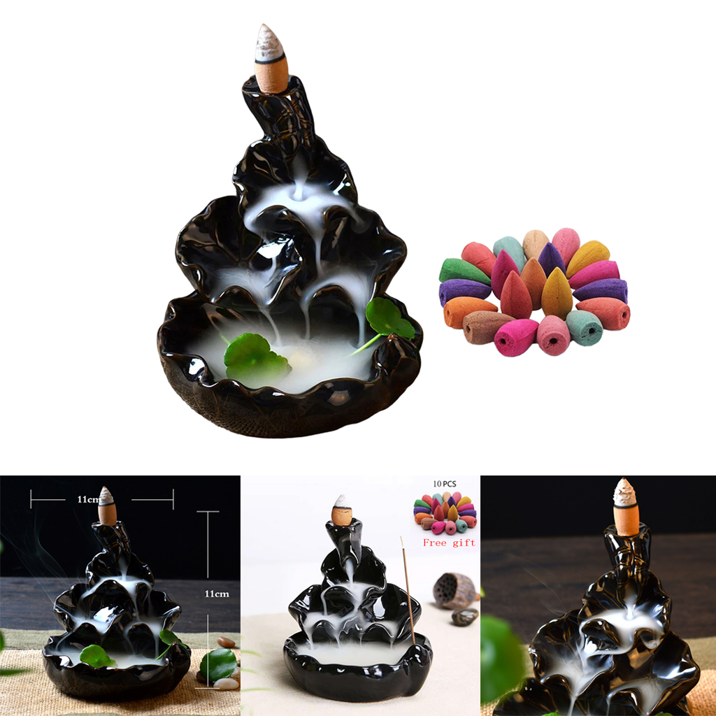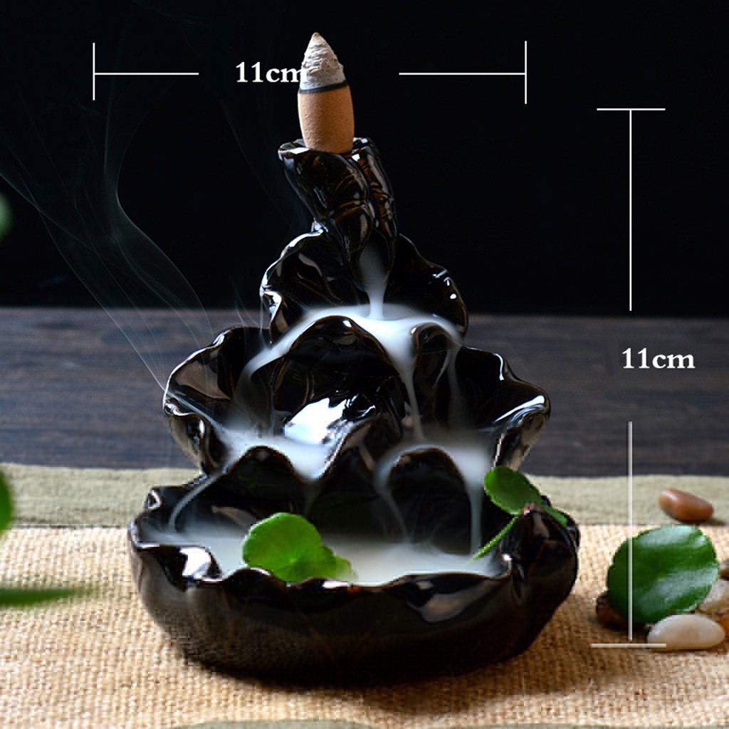 Таинственная атмосфера-дым парит, как водопад, конусная благовония горелка, окруженная дымом, которая выглядит замечательно. Поставляется с 10 конусами для благовоний.