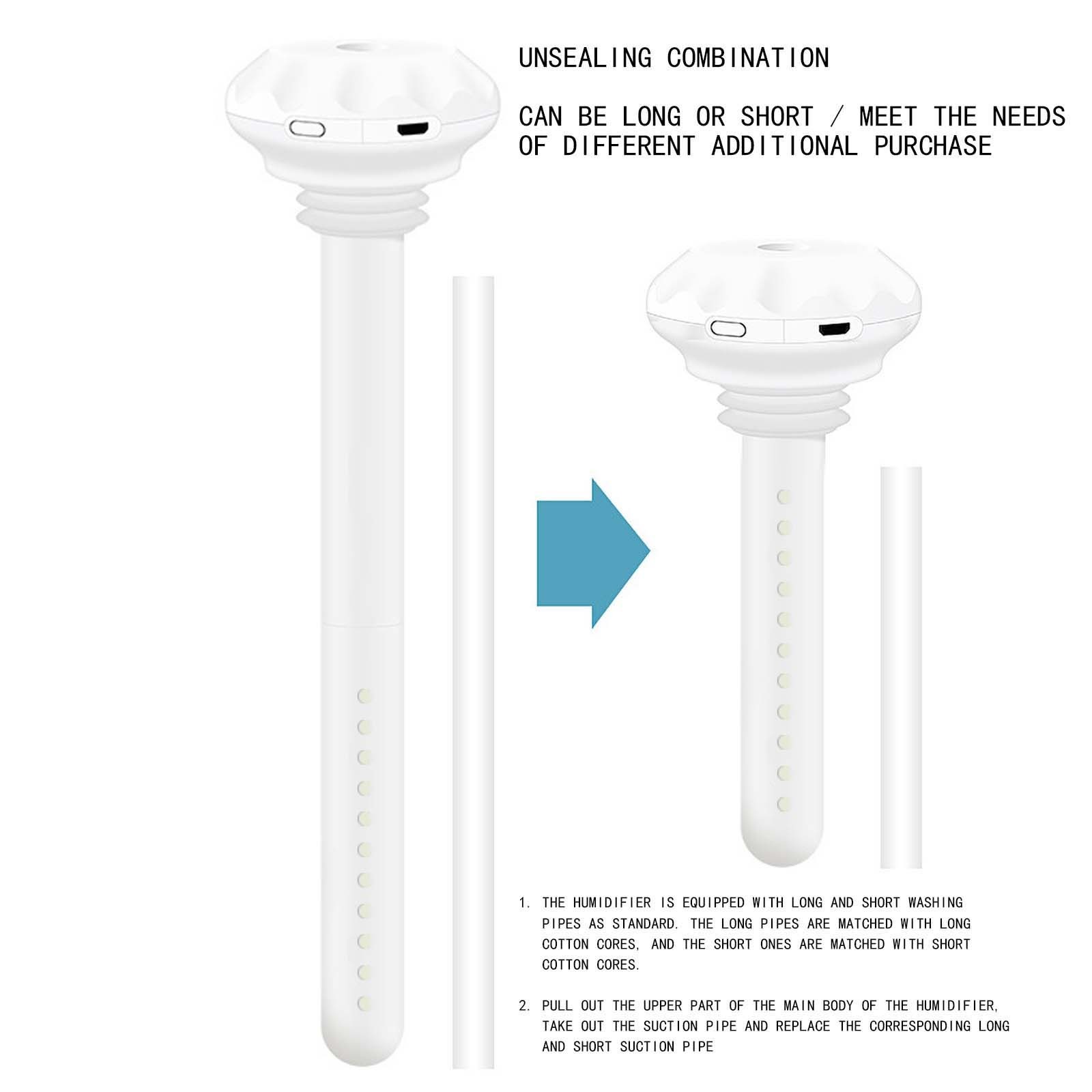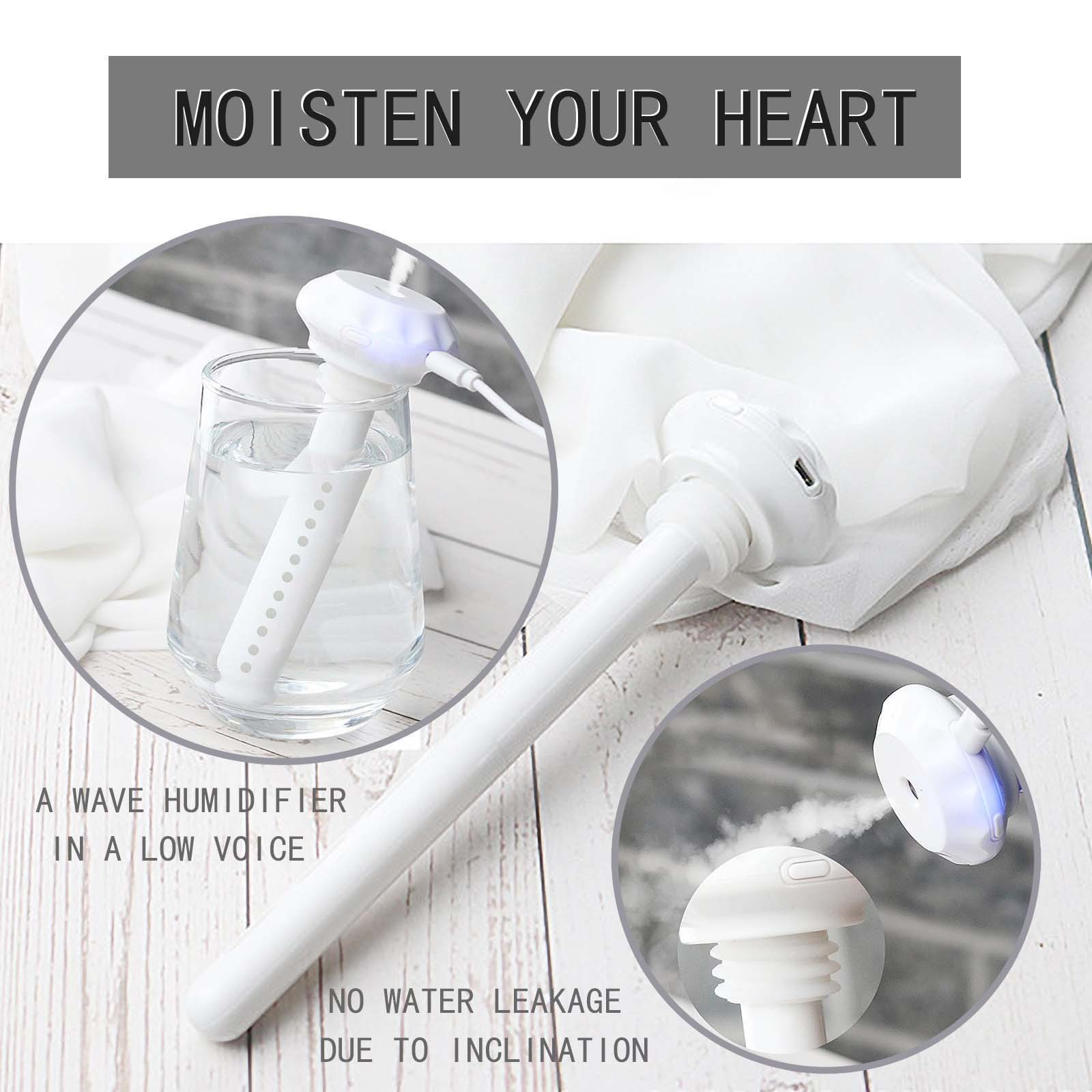 【Особенности продукта 】 1. Увлажнитель воздуха для путешествий-может быть помещен в любой контейнер в соответствии с вашими потребностями, прост в использовании. 2. Регулируемая длина-две комбинации для удовлетворения требований увлажнения различных сред. Вы можете выбрать более длинный увлажнитель и более короткий увлажнитель. 3. Путешествия без ограничений-портативный увлажнитель воздуха подходит для дома, офиса, автомобиля, ресторана, общежития, кемпинга и улицы. 4. Ультразвуковое распыление и увлажнение-Использование ультразвукового распыления, равномерная тонкая поверхность, очень большой объем распыления, до 35 мл/ч, может быстро удовлетворить требования относительной влажности. 4. Тихий увлажнитель-бас-туман, наслаждайтесь бесшумным увлажнением, массируйте кожу туманом в офисе. -Название продукта: портативный увлажнитель -Мощность: около 1,5 w -Рабочее напряжение: 2,5-5v -Объем распыления: 35 мл/ч -Применяются к: стеклянным бутылкам, бутылкам с минеральной водой, кружкам и т. д. -Характеристики: регулируемая высота -Примечание: Перед использованием намочите ватный тампон и не теряйте весну. Способ использования: 1: Положите ватный тампон в воду, Замочите оба конца. 2: Положите влажный ватный тампон в трубку. 3: Положите его в стаканчик для воды и подключите питание. 4: Включите переключатель и наслаждайтесь влагой
