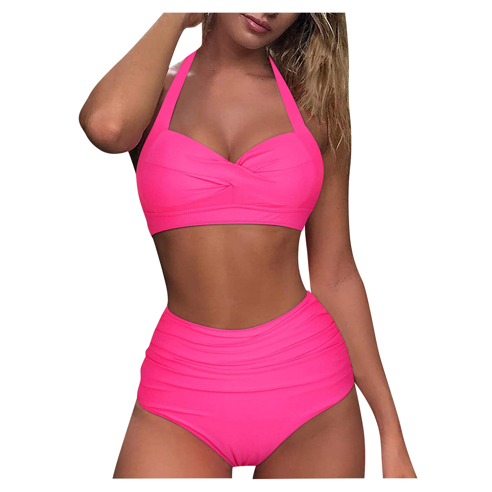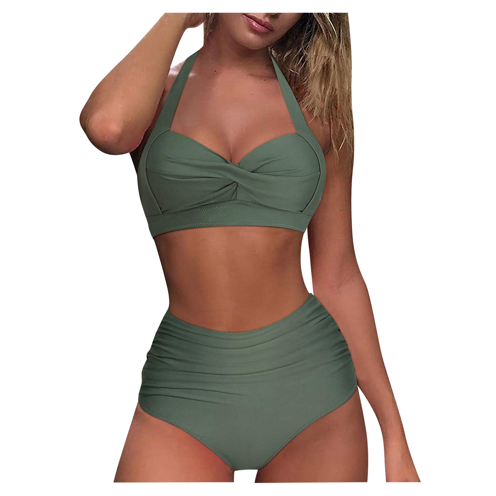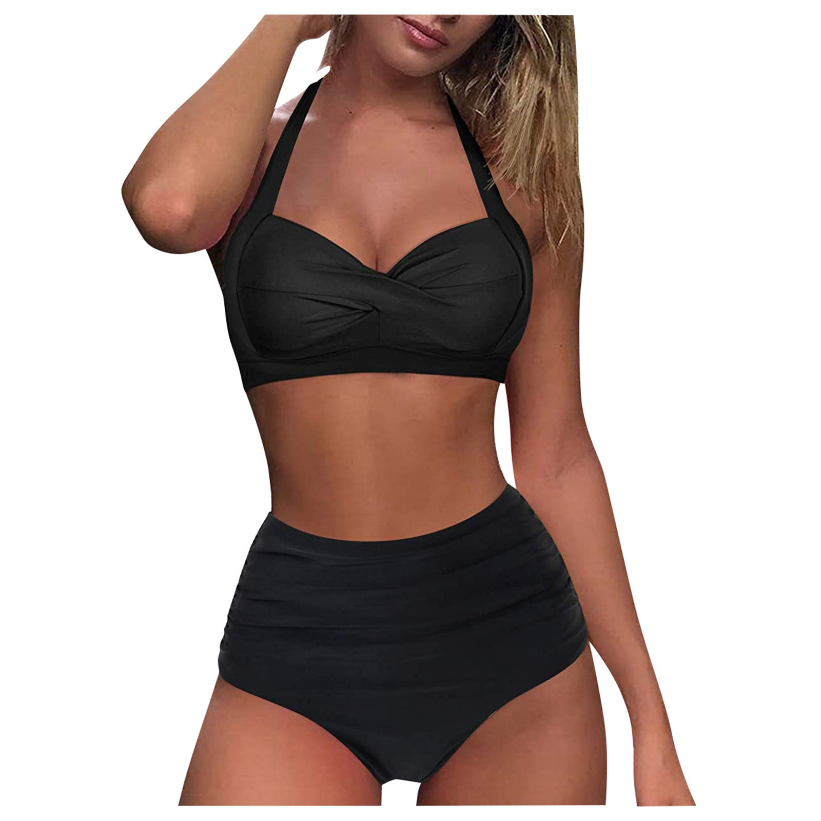 Комплект из двух предметов, женский купальник, винтажный купальник, Ретро стиль, Холтер, с рюшами, высокая талия, с принтом, комплект бикини, купалник, женский
