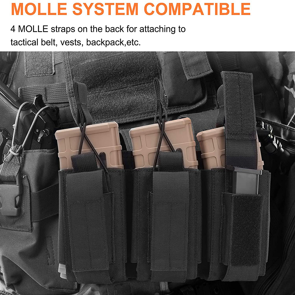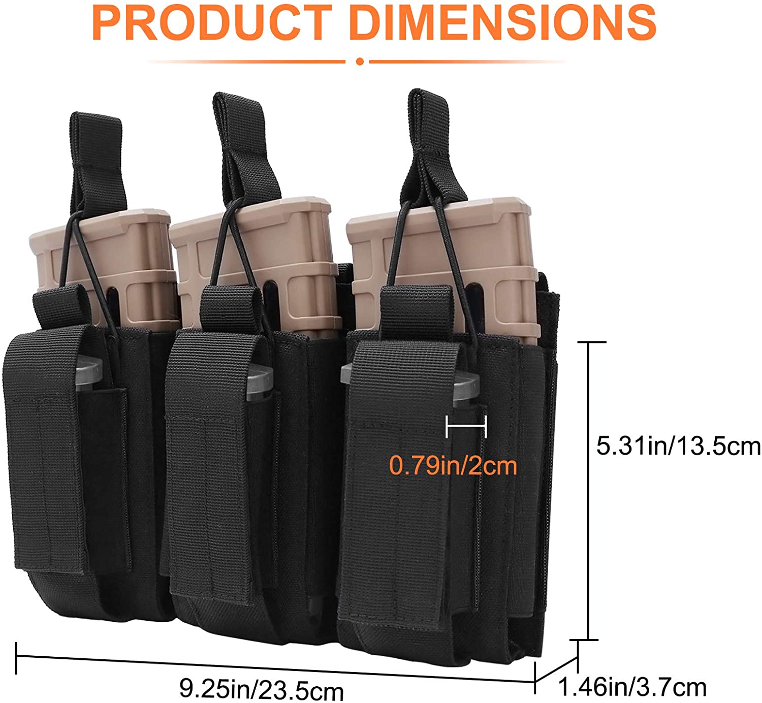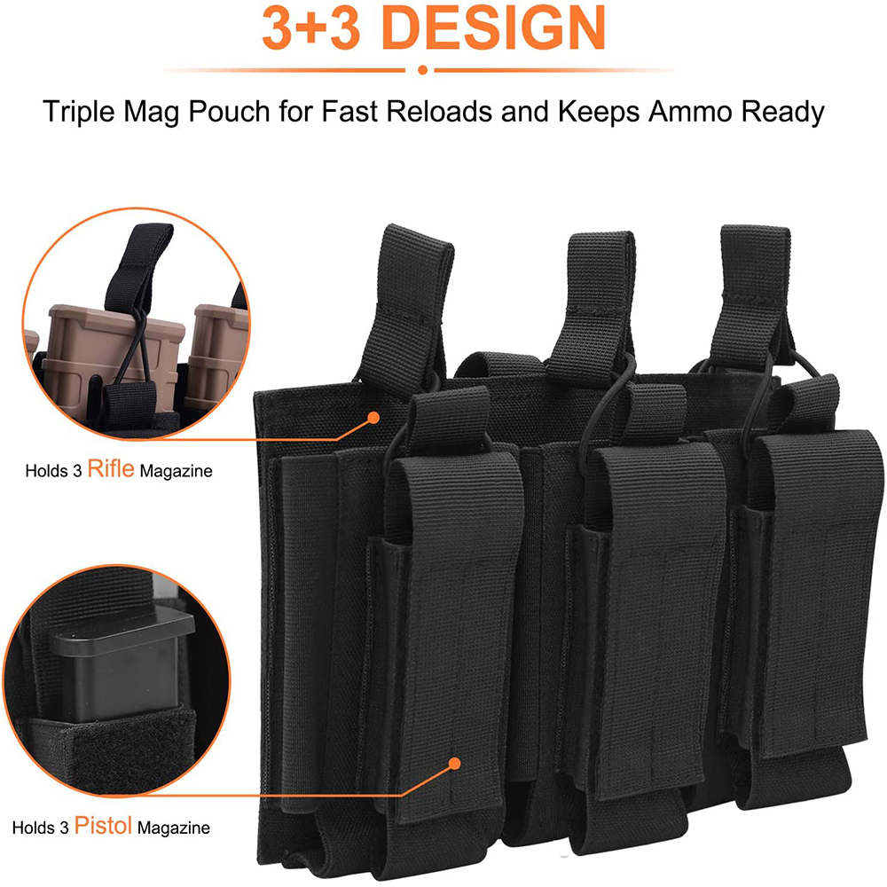 【Triple Mag Pouch Size】 -- 3 fit for rifle mag и 3 fit for pistol mag. Чехол Rifle mag для хранения большинства 556 журналов для винтовок, таких как AK, M4, M16 и AR-тип. Пистолет mag мешочки для хранения Глок, M1911 и 92F журналы, и т. Д.