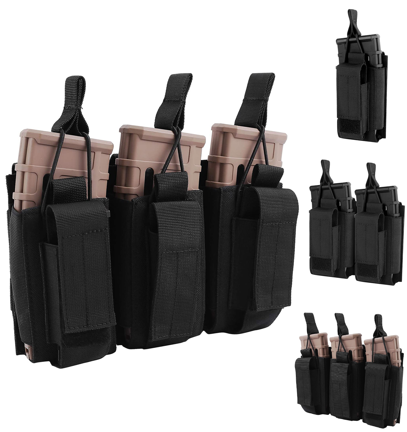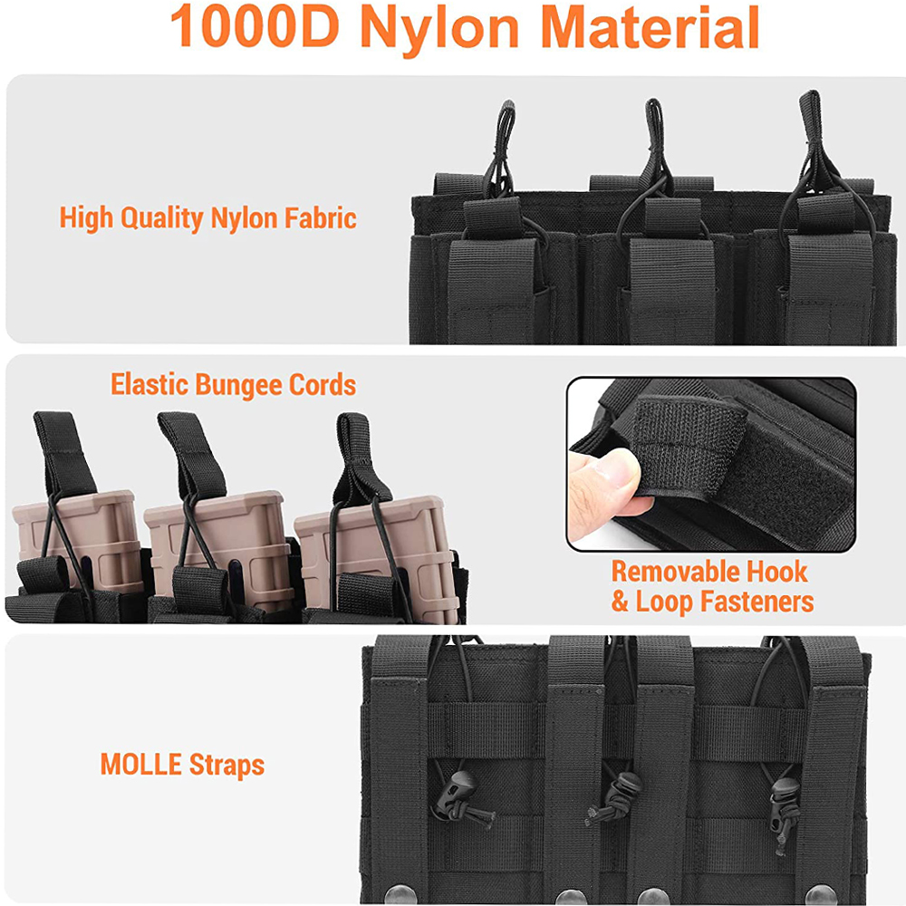 【 4 практичный дизайн-открытый дизайн для легкого доступа к вашим журналам. Эластичные шнуры для банджи для винтовки, этот тройной мешочек для винтовки регулируется, чтобы соответствовать разному размеру mag и закрепить mags на месте; С регулируемыми крючками и петлями для пистолета это позволит избежать выпадения пистолета mags во время бега.