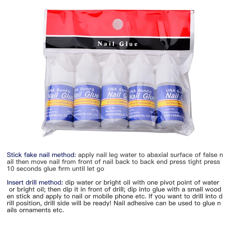 1. False Nails: To apply the glue on the back of the false nails through a brush, then push the false nails from the nail top to the nail bottom; after being pressed, the false nails would be glued.