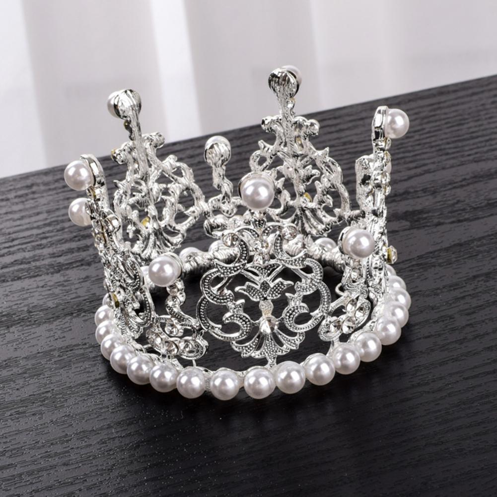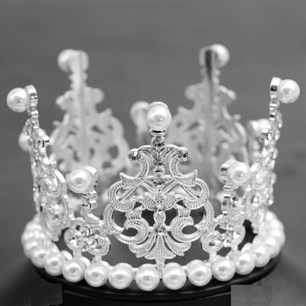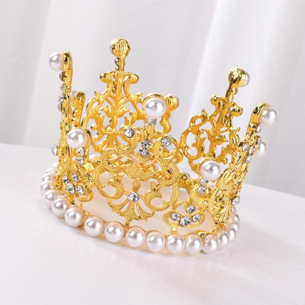 Украшение для торта с искусственным жемчугом и кристаллами, украшение в виде короны, украшение принцессы на свадьбу, день рождения, вечеринку, украшение для выпечки