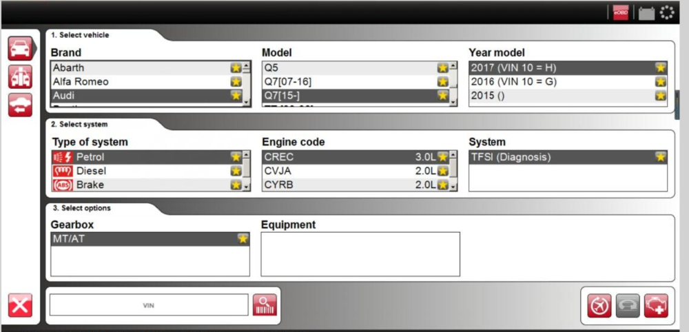 В нашем программном обеспечении для автомобилей у нас есть умная функция, которая позволяет считывать номер шасси с транспортного средства, который вы хотели бы диагностировать. Это гарантирует, что правильная модель и год будут выбраны автоматически. Кроме того, код двигателя для транспортных средств, которые широко доступны на рынках, также выбирается автоматически.