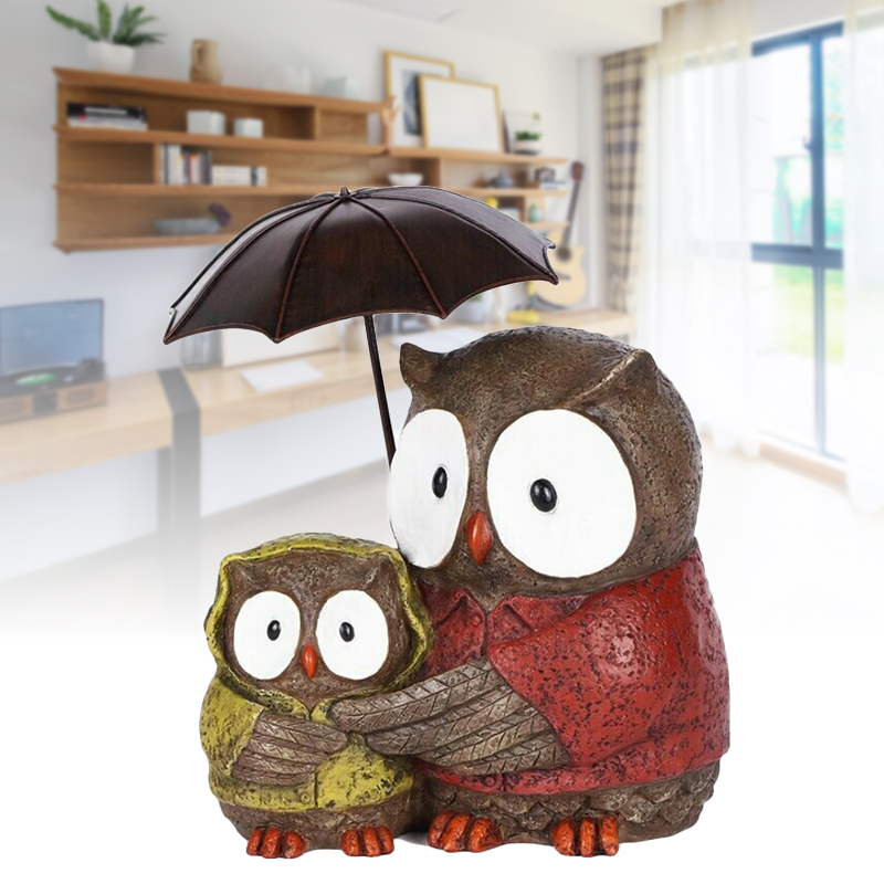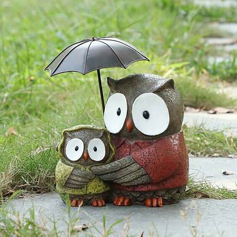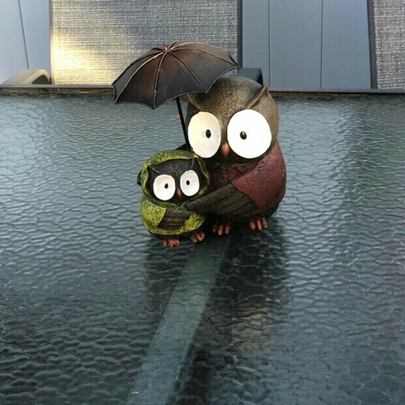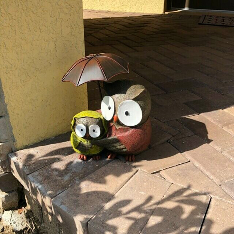 4. Эта статуя матери и ребенка Совы под зонтиком будетМилое дополнение к вашему садовому украшению.