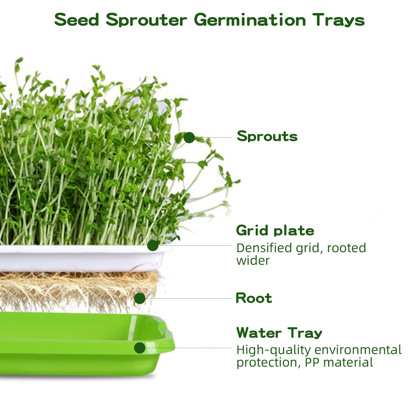 Широкое применение:Этот поднос для рассады может проращивать несколько типов небольших семян, таких как бобы, горох, Манг, семена пшеницы, Люцерна, ваниль, редис, перила, китайская капуста и т. д.