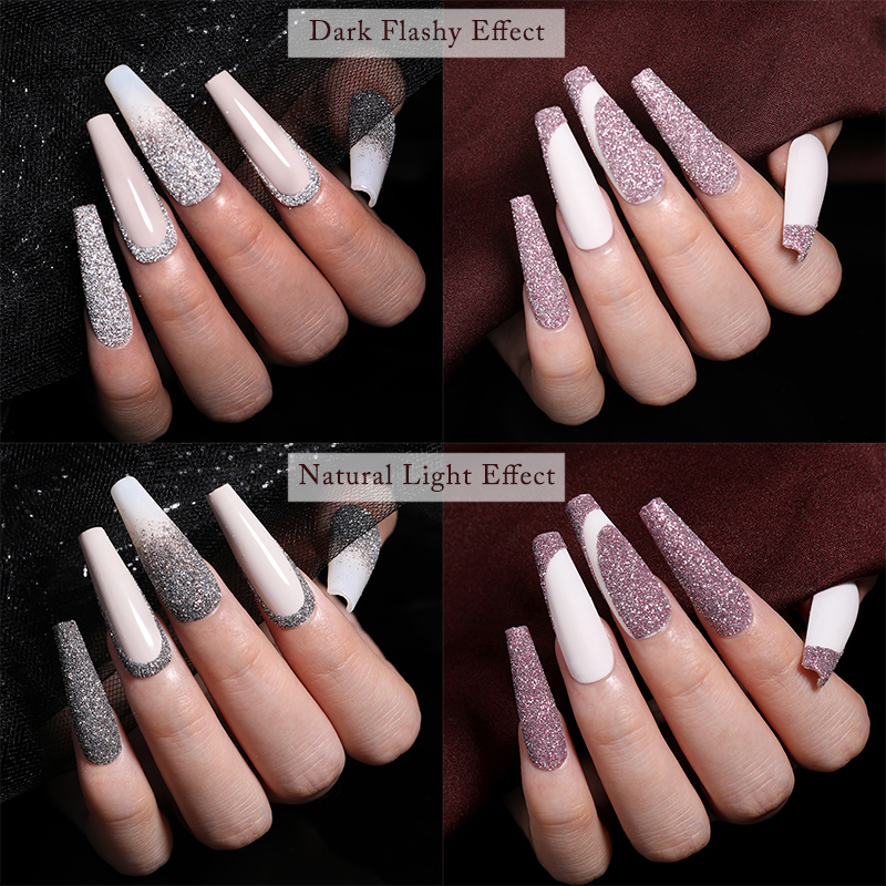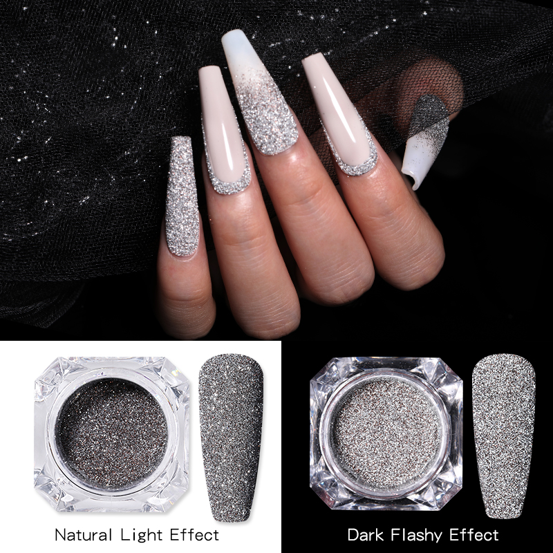 Ночью порошок ногтя будет отражать Сияющий светильник через светильник.