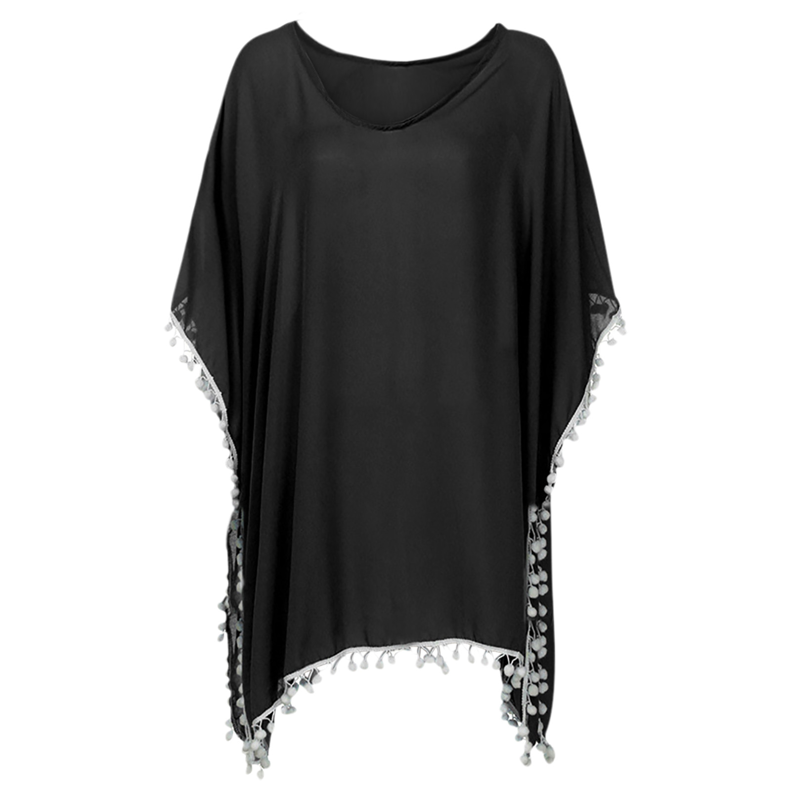 Женский обрезанный кафтан, шифоновый купальник с кисточками, пляжный свободный бикини, накидка, топы