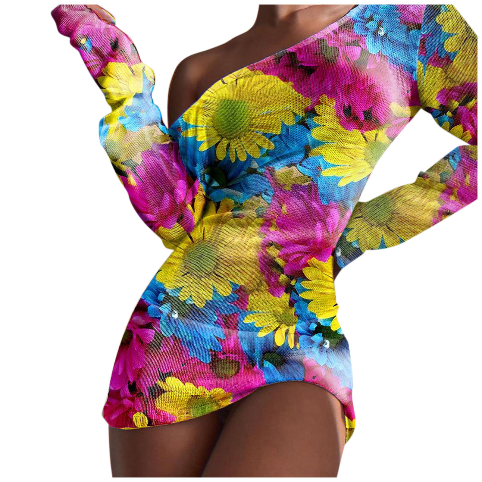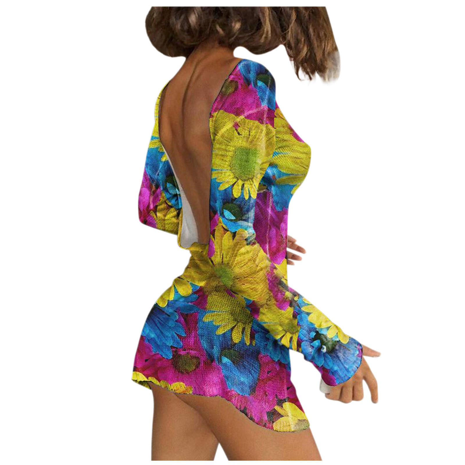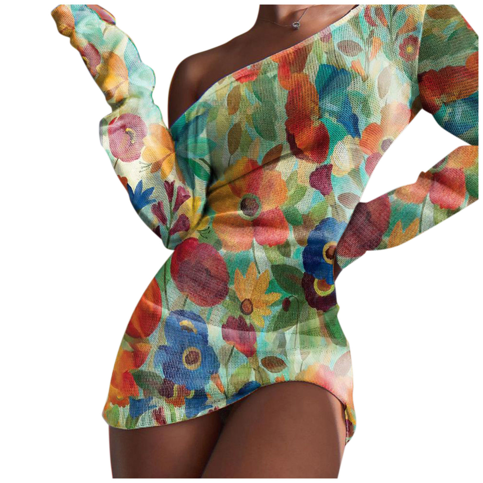 Женское привлекательное облегающее платье с круглым вырезом и длинным рукавом