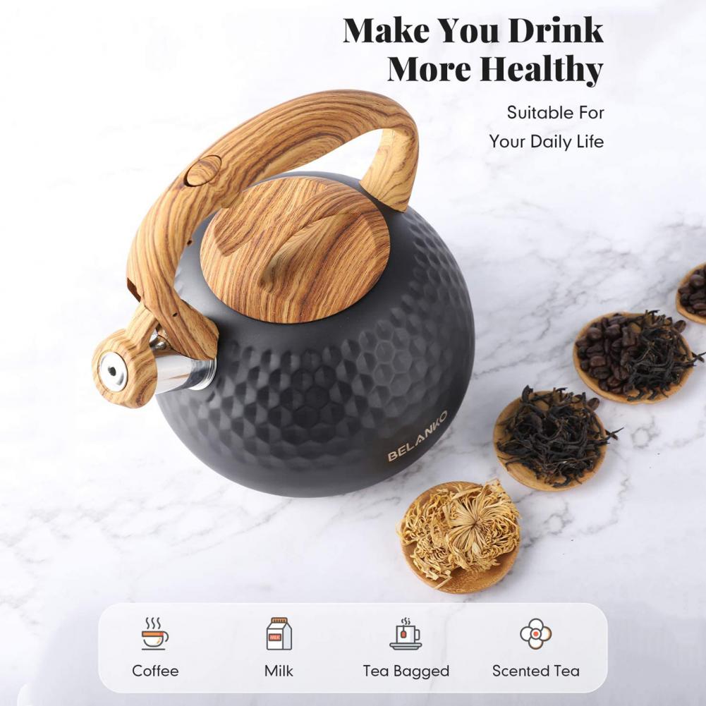 Изготовлен из пищевого материала из нержавеющей стали, чайник отличается высокой термостойкостью, антикоррозийным покрытием, экологически чистым и прочным.