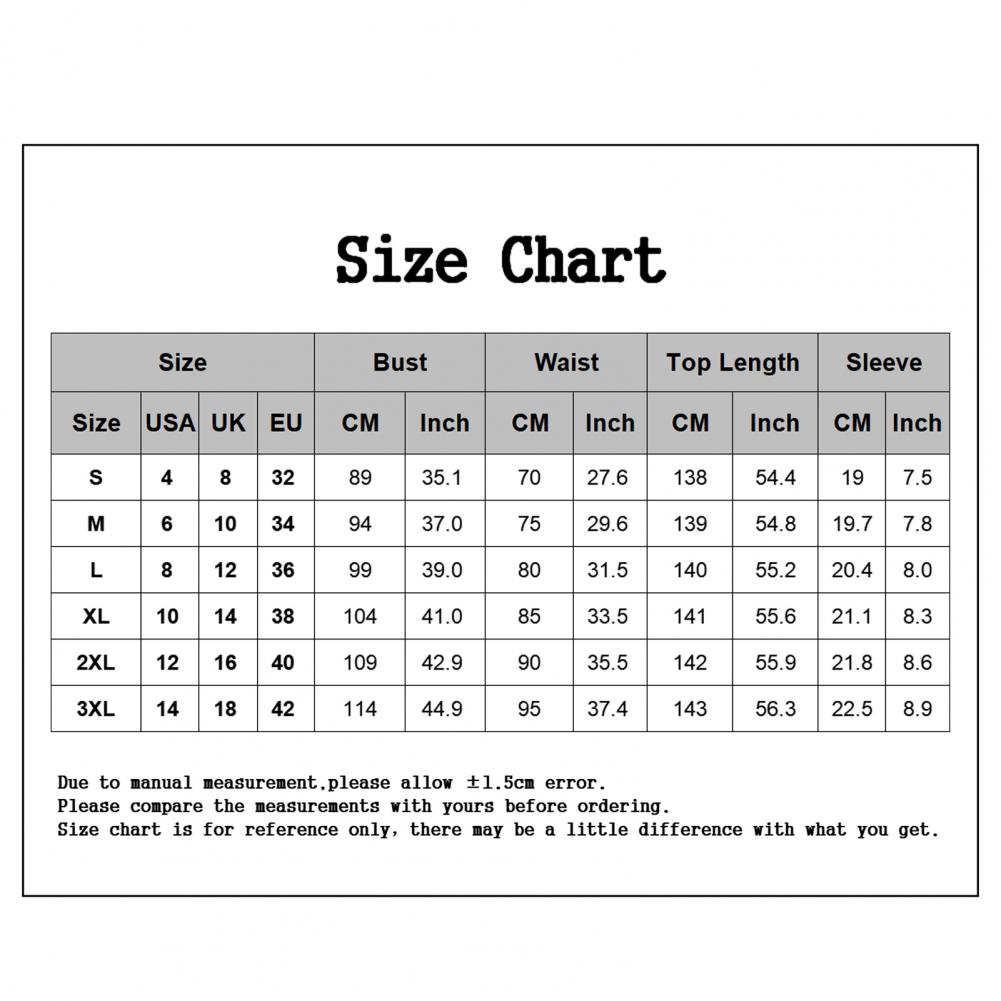 [Наши Размеры 3XL] Бюст: 114 см/44,9 ", обхват талии: 95 см/37,4", рукава: 22,5 см/8,9 ", Длина: 143 см/56,3" (прибл.)