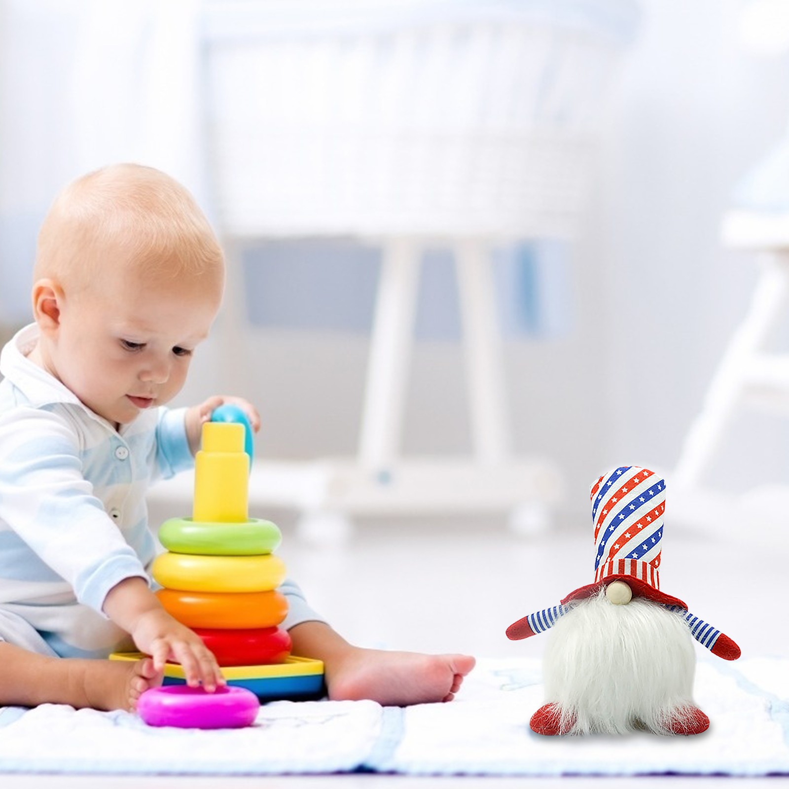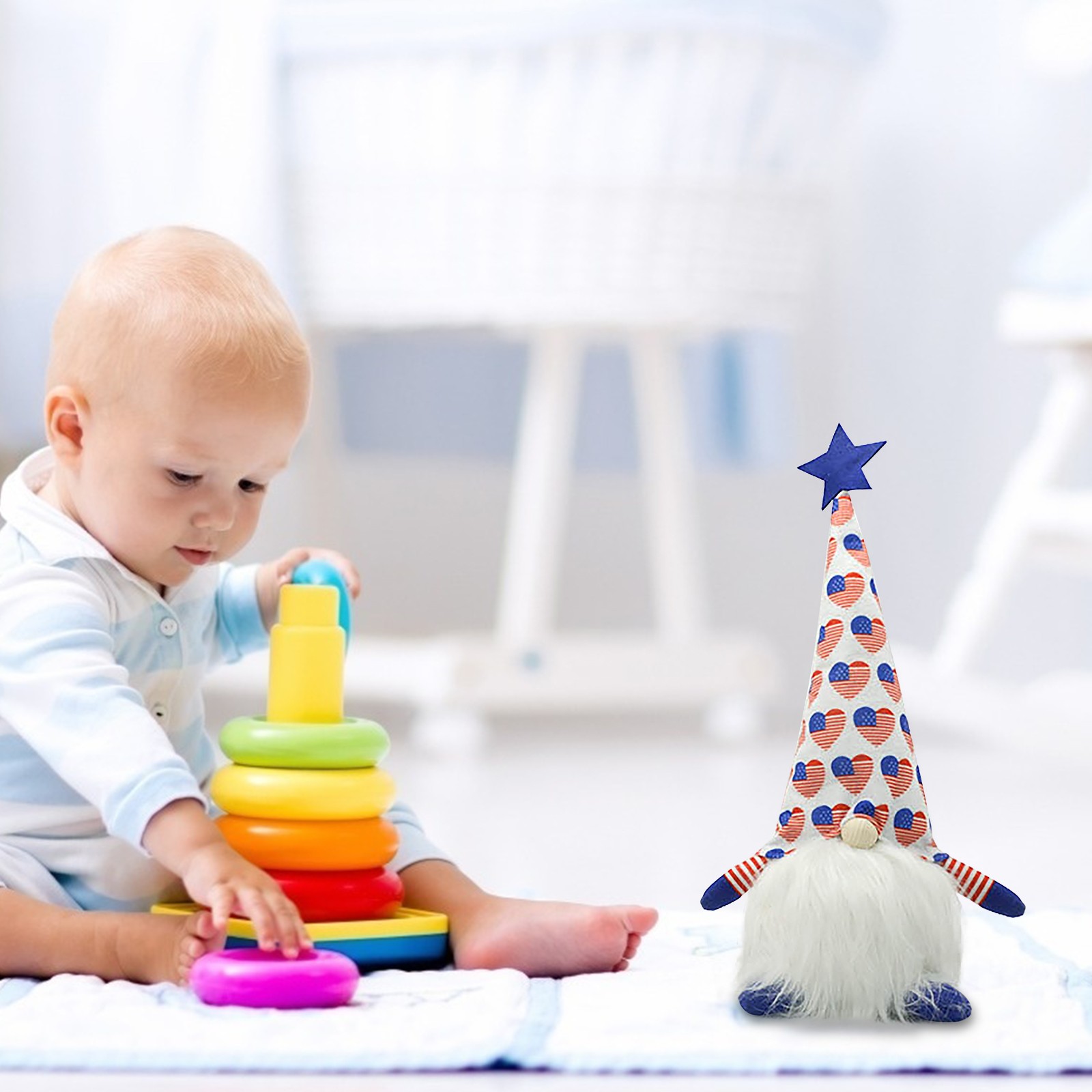 Lovely patriotic decoration, soft texture, plush nose, white beard and long hat. Both adults and children can play at home, windows or office areas, and can also be placed as decorations to reduce fatigue. The stars and stripes pattern and bright colors will definitely add luster to your house. Feel comfortable. Less hair loss is normal. Children should play with adults to avoid aspiration. Dwarves are considered good luck and perfect home decoration. Good luck to family and friends. The cute appearance is deeply loved by children and is also the best choice for children to give gifts. Suitable for all kinds of patriotic and other important days. Material:These swedish santa gnome plush are made of plush, 100% safe for children .Product information: